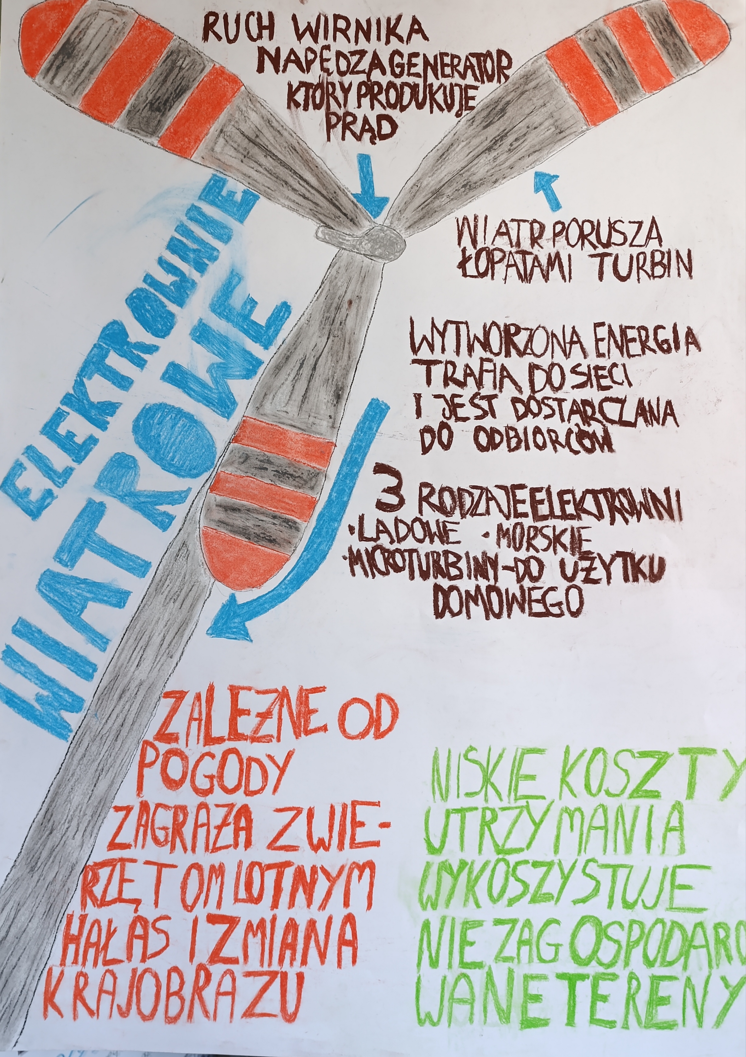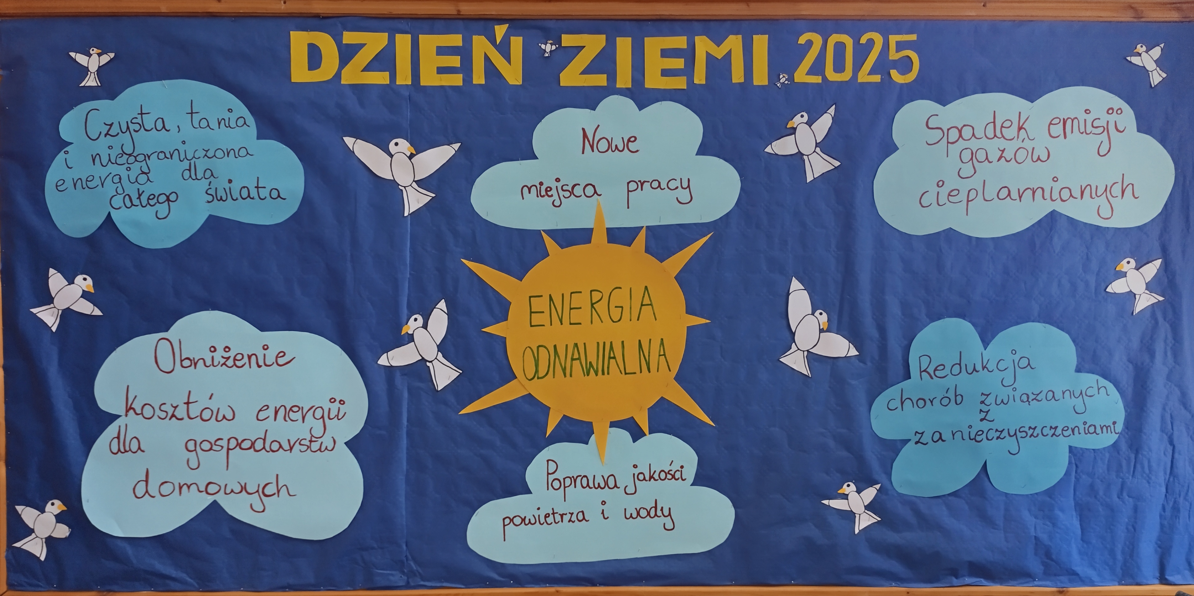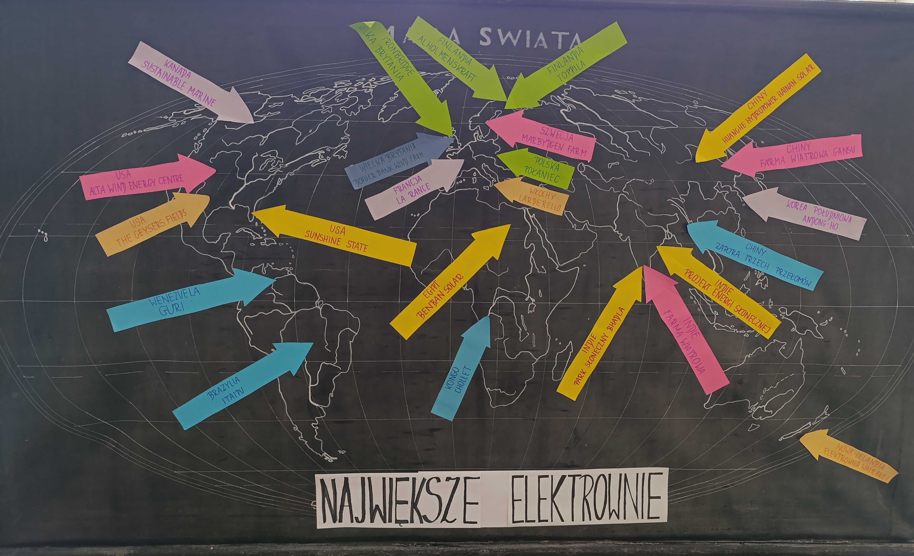 Młodzież klasy 3d zrealizowała projekt nawiązujący do hasła tegorocznego Dnia Ziemi, w ramach którego – w formie plakatów – przedstawiła charakterystykę odnawialnych źródeł energii oraz korzyści płynące z przejścia na energię odnawialną. Uczniowie przygotowali również mapy przedstawiające rozmieszczenie największych elektrowni odnawialnych – zarówno w Polsce, jak i na świecie – z podziałem według źródeł energii. Dzięki temu społeczność szkolna mogła poszerzyć swoją wiedzę na temat odnawialnych źródeł energii.