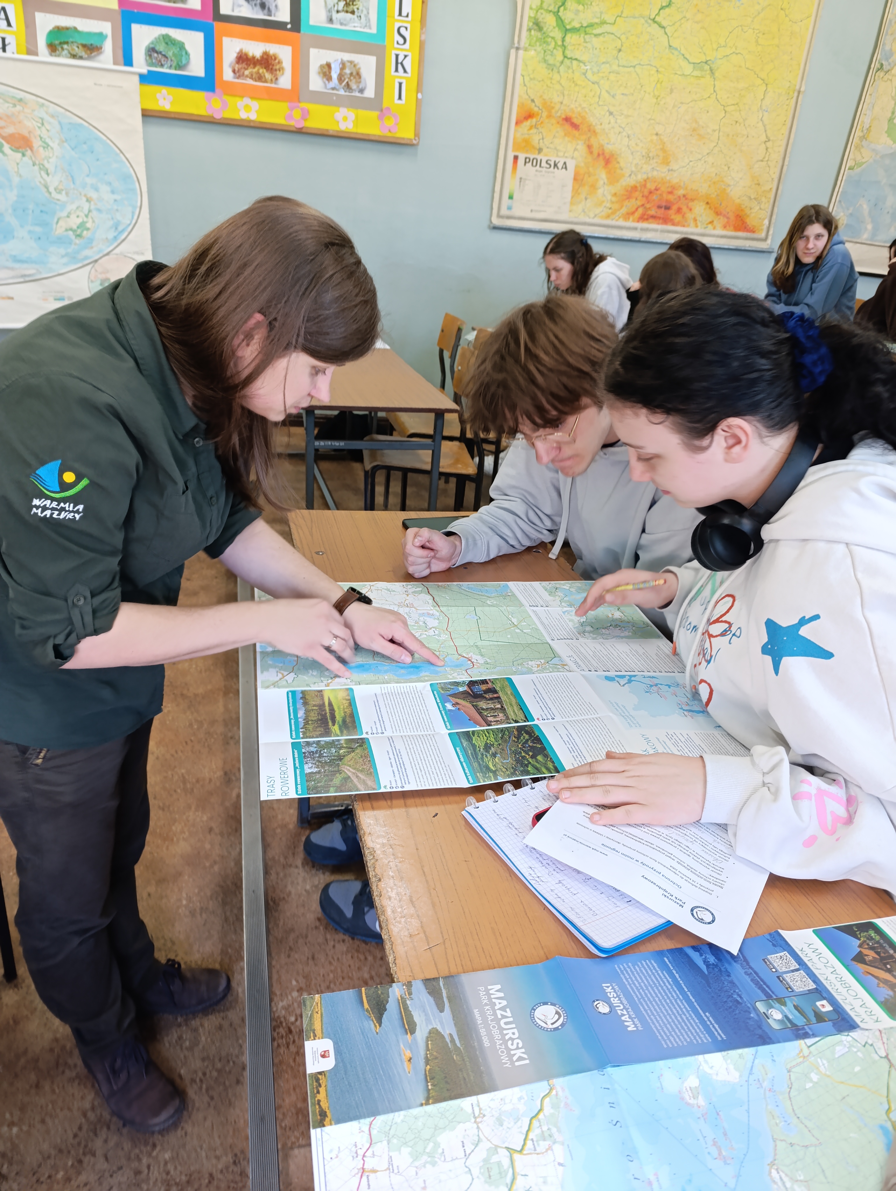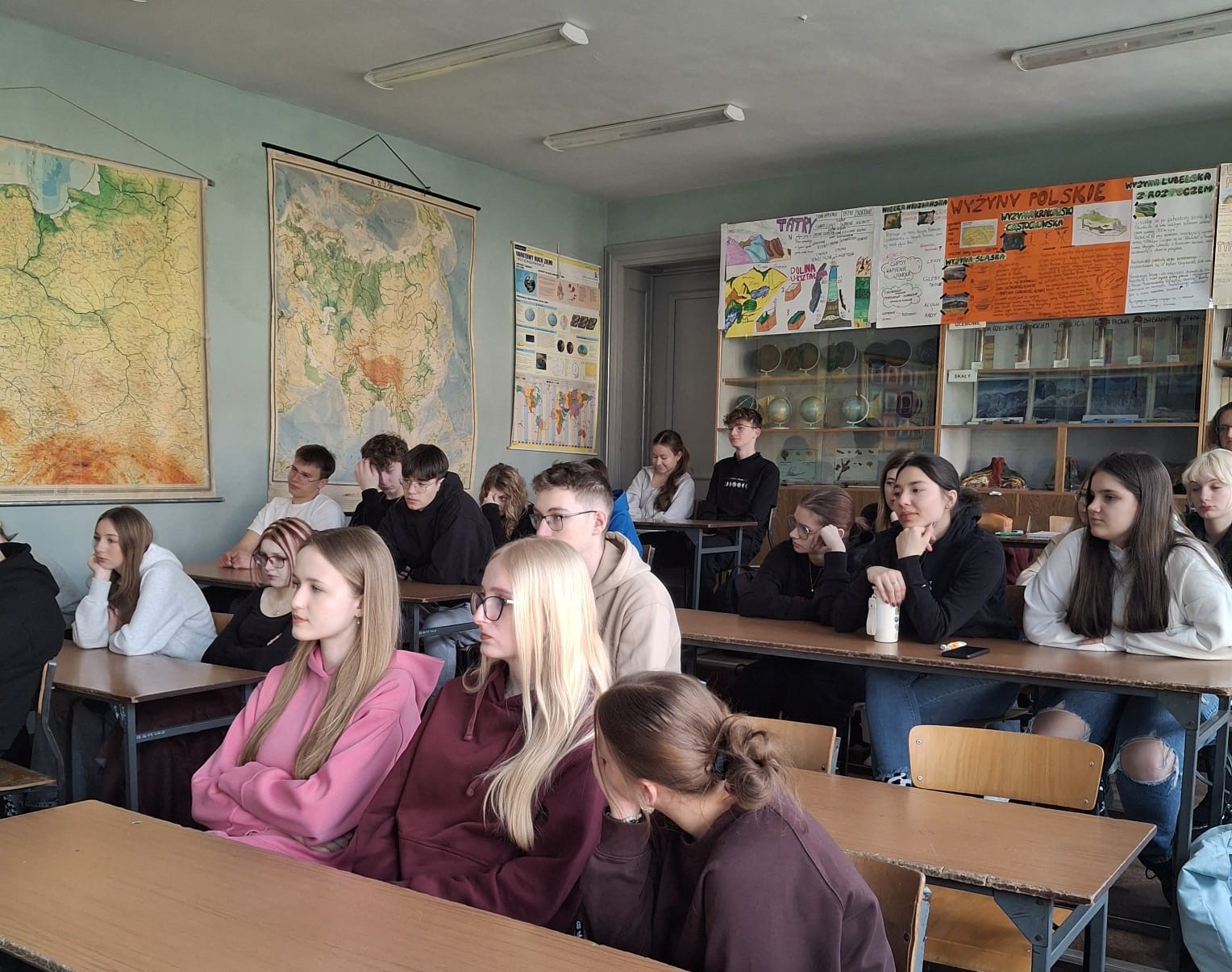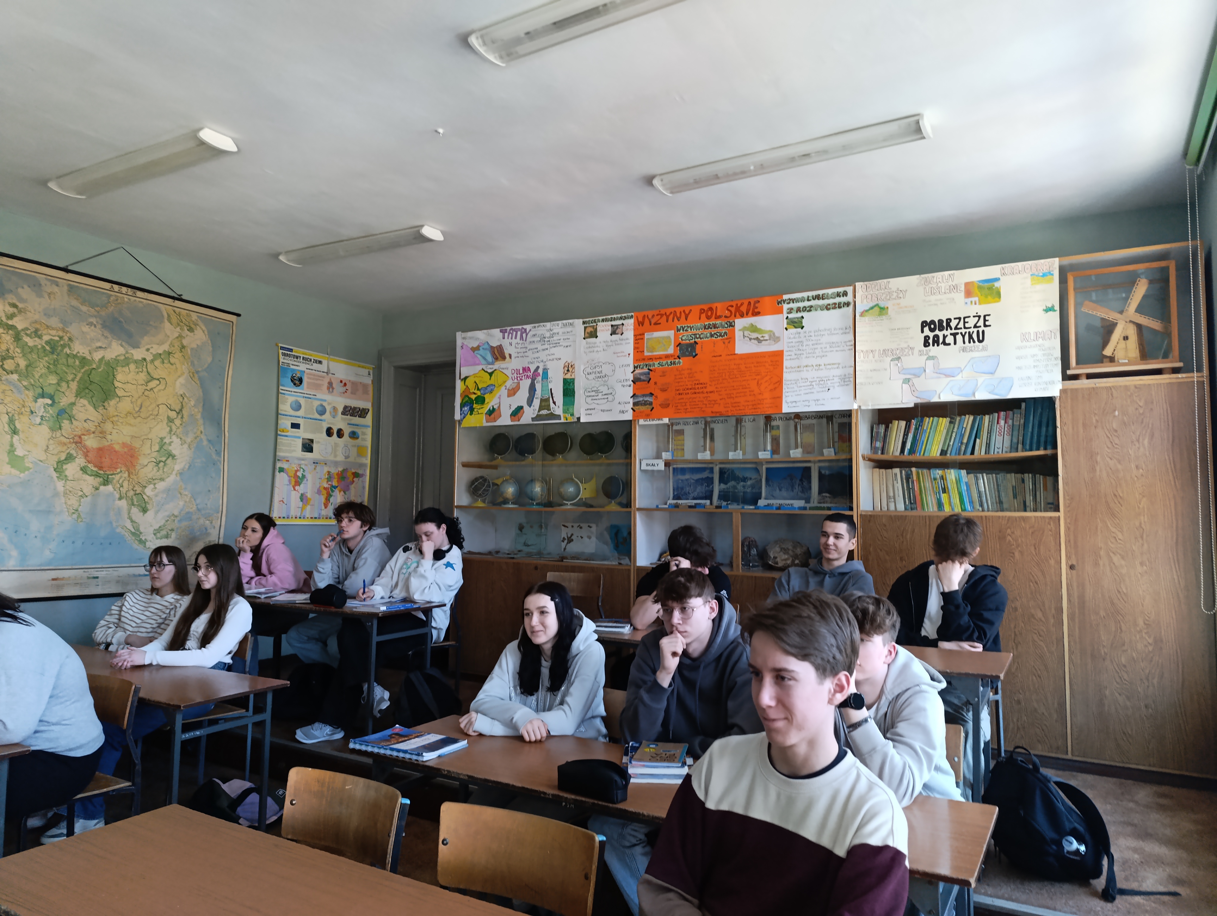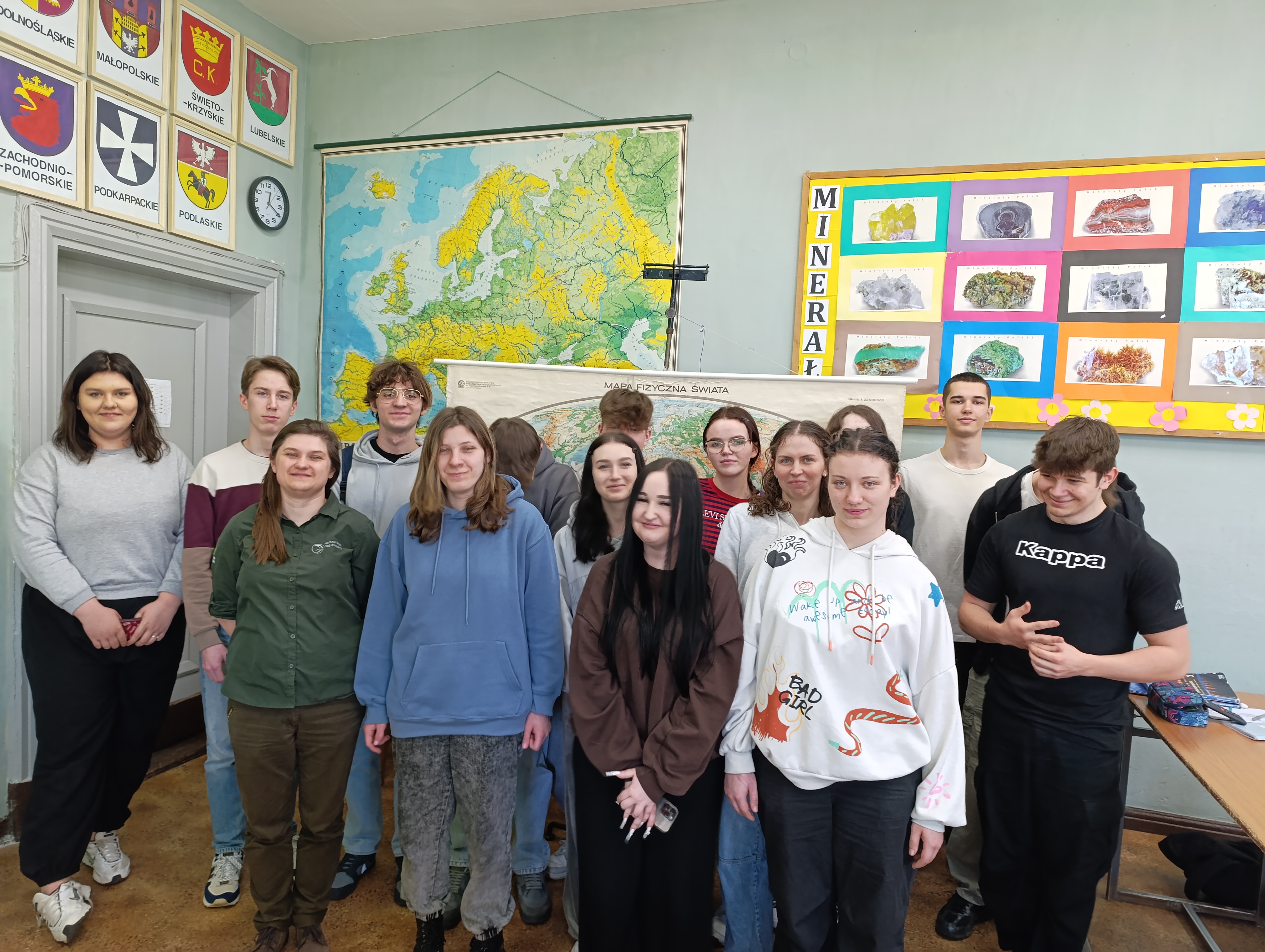 W środę, 2 kwietnia, uczniowie klasy 3d, realizujący geografię w zakresie rozszerzonym, uczestniczyli w warsztatach prowadzonych przez panią Judytę Masiarz – starszą specjalistkę ds. dydaktyki i promocji Mazurskiego Parku Krajobrazowego. Tematem spotkania były formy ochrony przyrody w Polsce, przedstawione na przykładzie obiektów występujących w MPK, Mrągowie i jego okolicach. Uczniowie analizowali materiały źródłowe, lokalizowali obszary chronione oraz formułowali wnioski dotyczące tematyki zajęć. Spotkanie uświadomiło młodzieży, jak bezcenne walory przyrodnicze znajdują się na terenie Mazur i pozwoliło usystematyzować wiedzę na temat form ich ochrony.