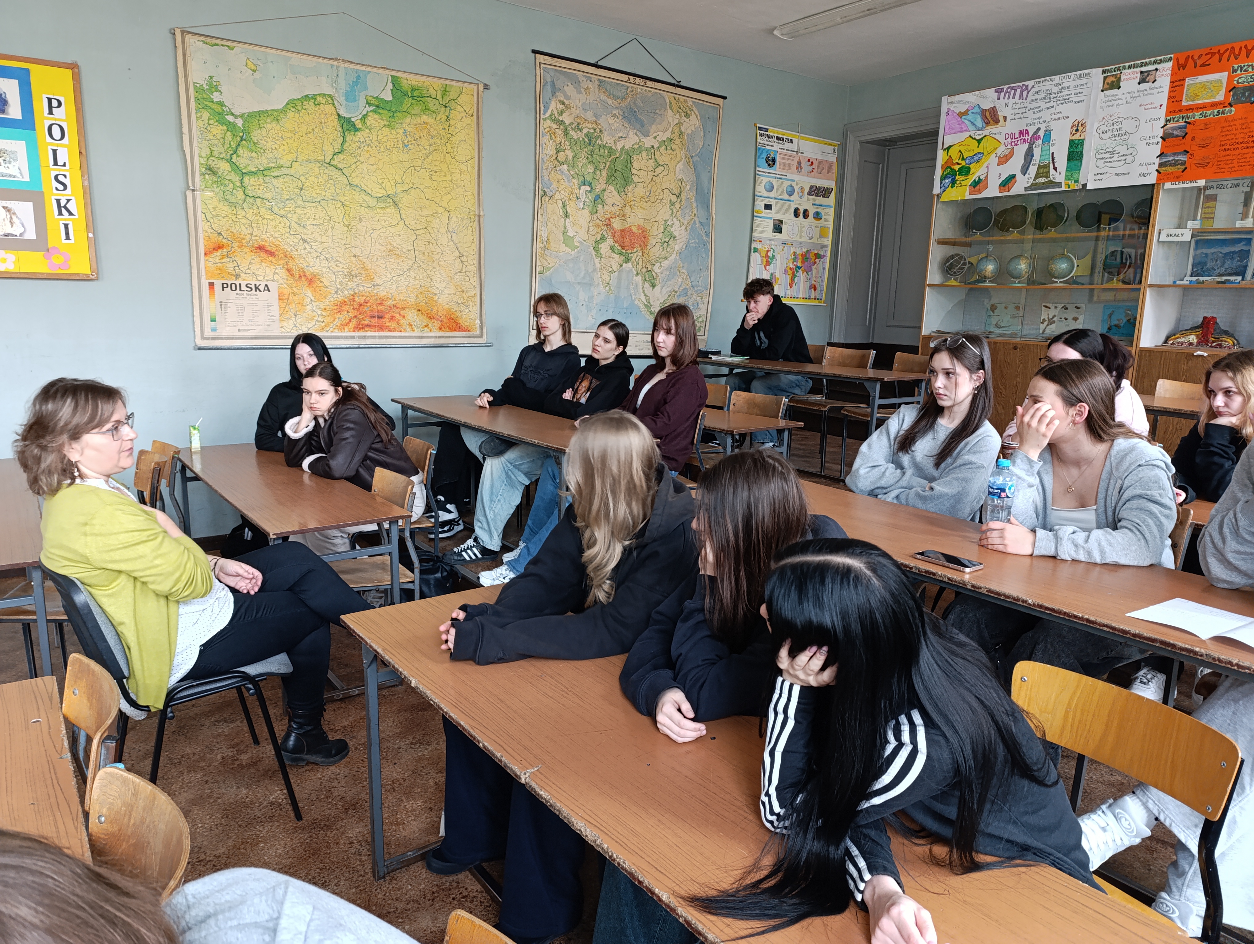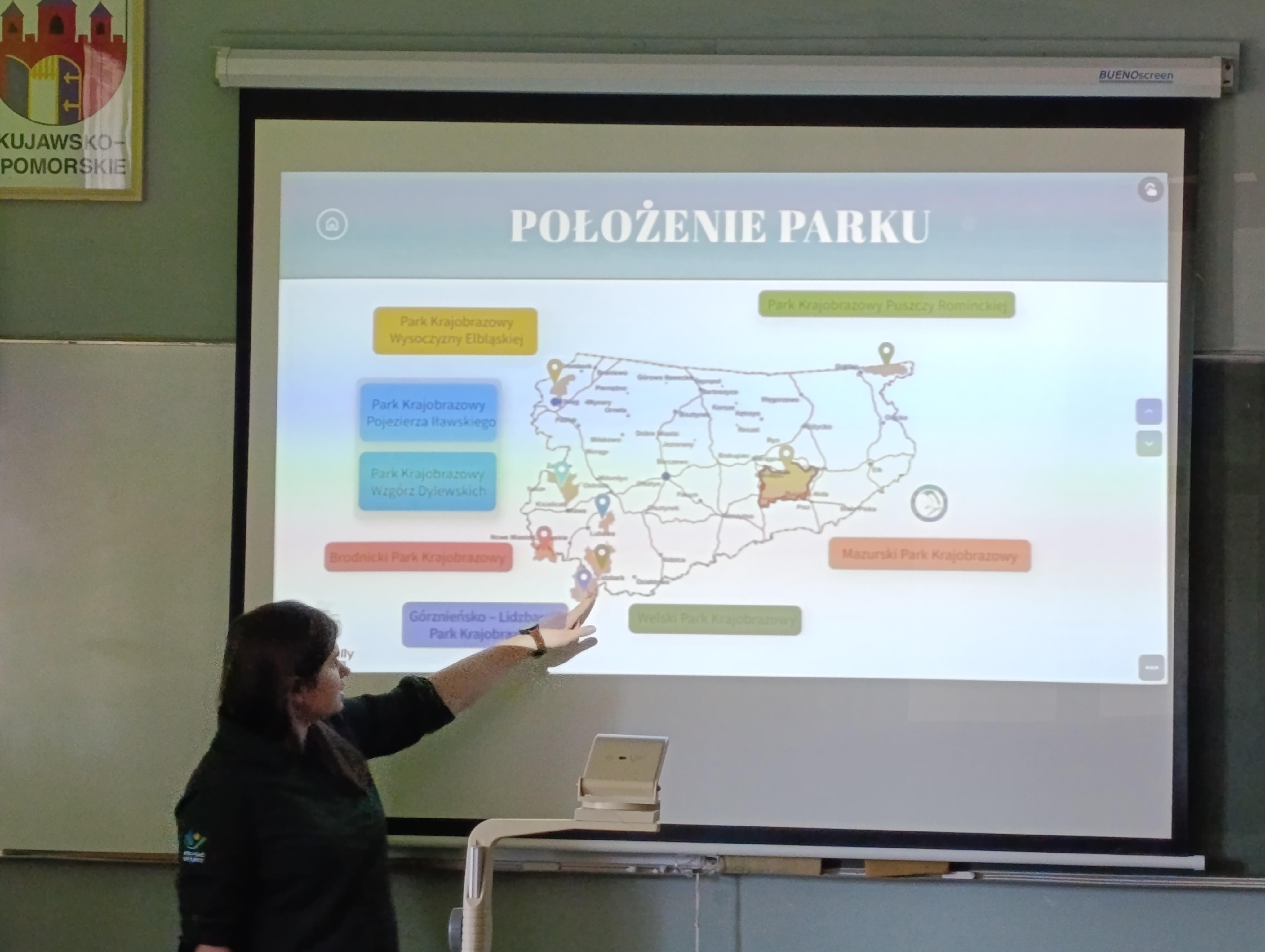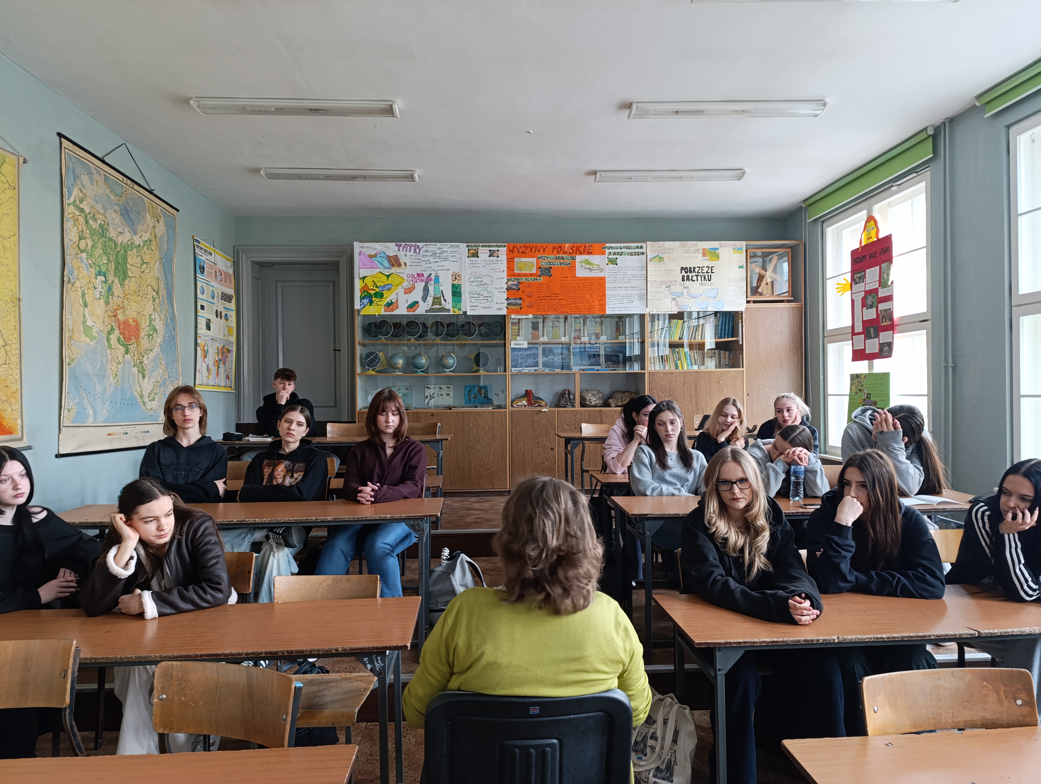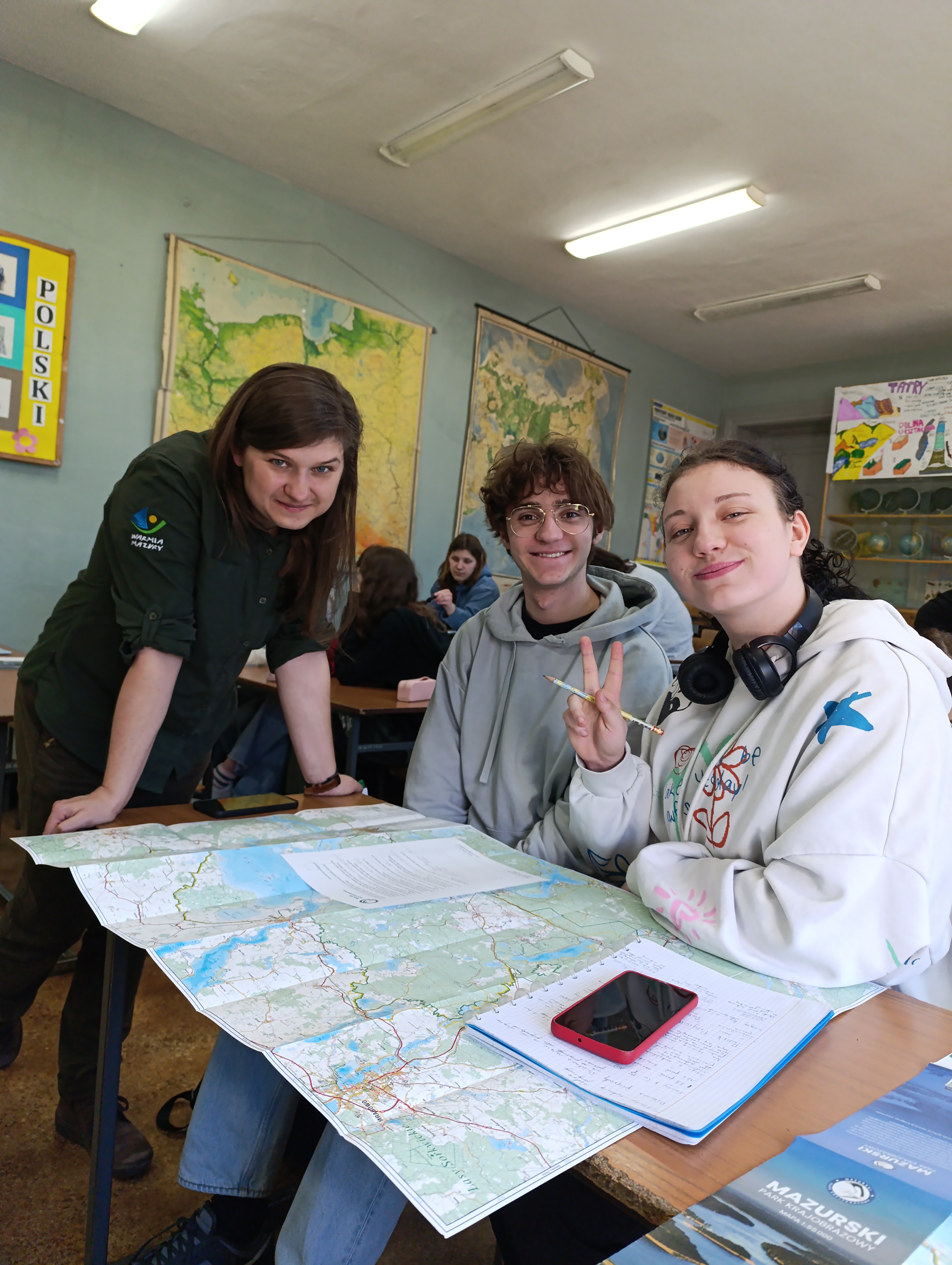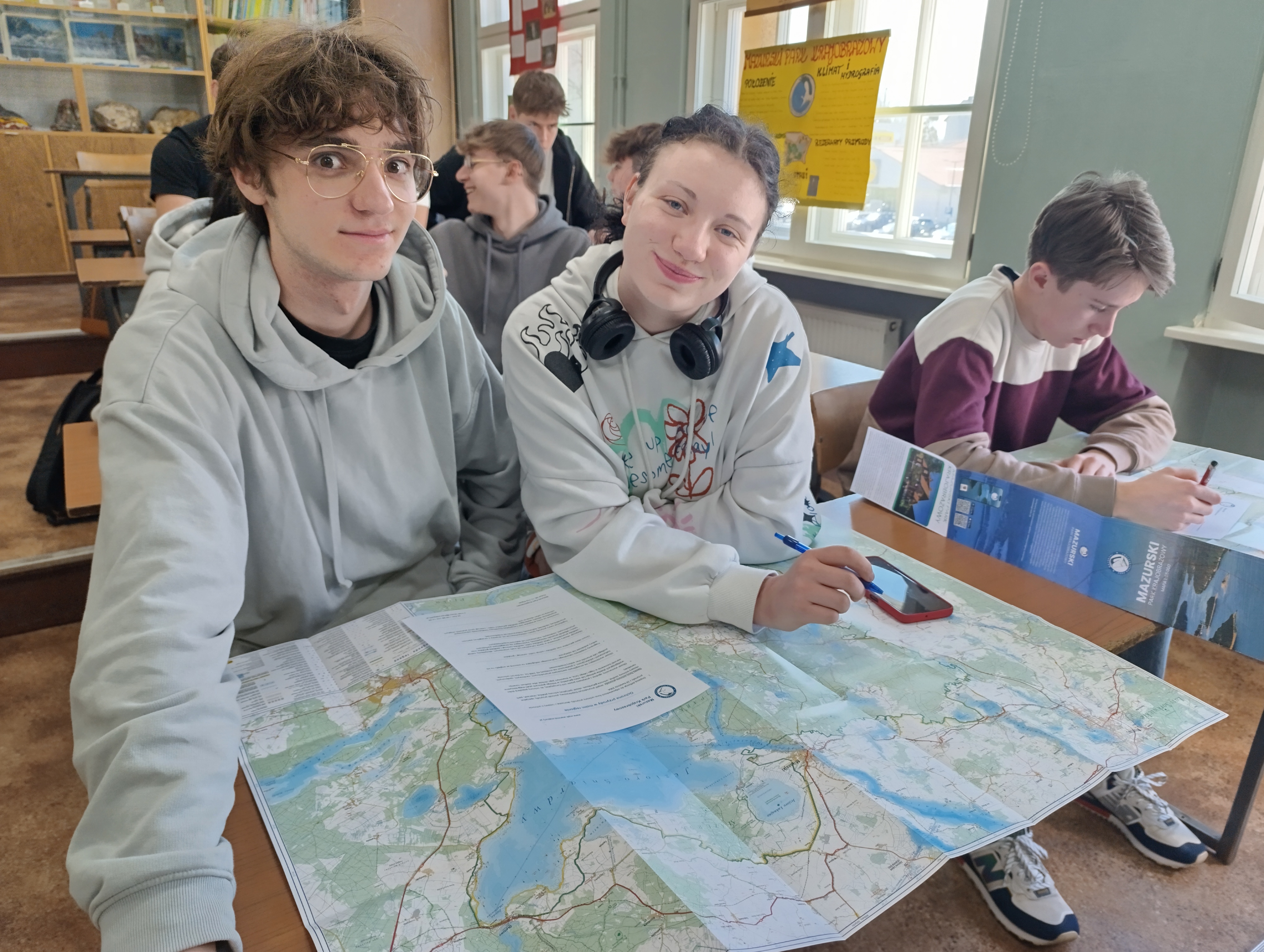 W środę, 2 kwietnia, uczniowie klasy 3d, realizujący geografię w zakresie rozszerzonym, uczestniczyli w warsztatach prowadzonych przez panią Judytę Masiarz – starszą specjalistkę ds. dydaktyki i promocji Mazurskiego Parku Krajobrazowego. Tematem spotkania były formy ochrony przyrody w Polsce, przedstawione na przykładzie obiektów występujących w MPK, Mrągowie i jego okolicach. Uczniowie analizowali materiały źródłowe, lokalizowali obszary chronione oraz formułowali wnioski dotyczące tematyki zajęć. Spotkanie uświadomiło młodzieży, jak bezcenne walory przyrodnicze znajdują się na terenie Mazur i pozwoliło usystematyzować wiedzę na temat form ich ochrony.