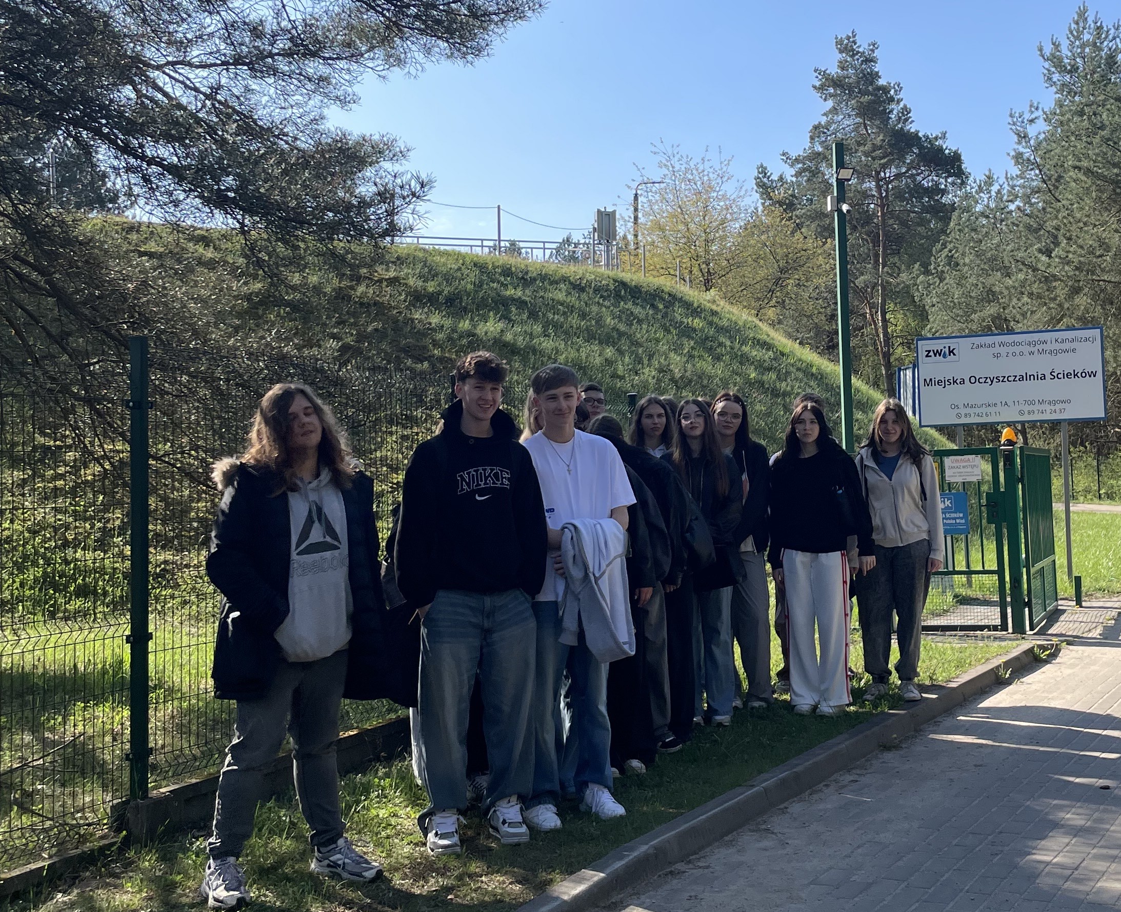 W środę, 23 kwietnia, uczniowie klas 3d i 3e odwiedzili Miejską Oczyszczalnię Ścieków w Polskiej Wsi. Przewodnikiem po obiekcie był pan Andrzej Strus – kierownik oczyszczalni, który w bardzo interesujący sposób opowiadał o poszczególnych etapach oczyszczania ścieków. Mrągowska oczyszczalnia to nowoczesny obiekt, wykorzystujący technologię tlenowo-beztlenową z możliwością chemicznego strącania fosforu. Posiada również nowoczesną elektrownię fotowoltaiczną, która przyczyniła się do zmniejszenia emisji zanieczyszczeń w porównaniu do tradycyjnych źródeł energii opartych na spalaniu węgla. Wyjście do oczyszczalni było dla młodzieży nowym i cennym doświadczeniem – uświadomiło im, jak ogromna jest skala produkcji ścieków oraz jak ważne jest ich oczyszczanie, by możliwe było bezpieczne odprowadzenie oczyszczonej wody do środowiska.