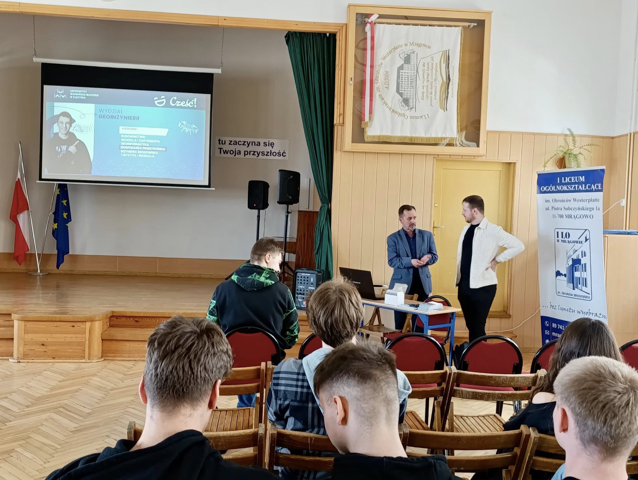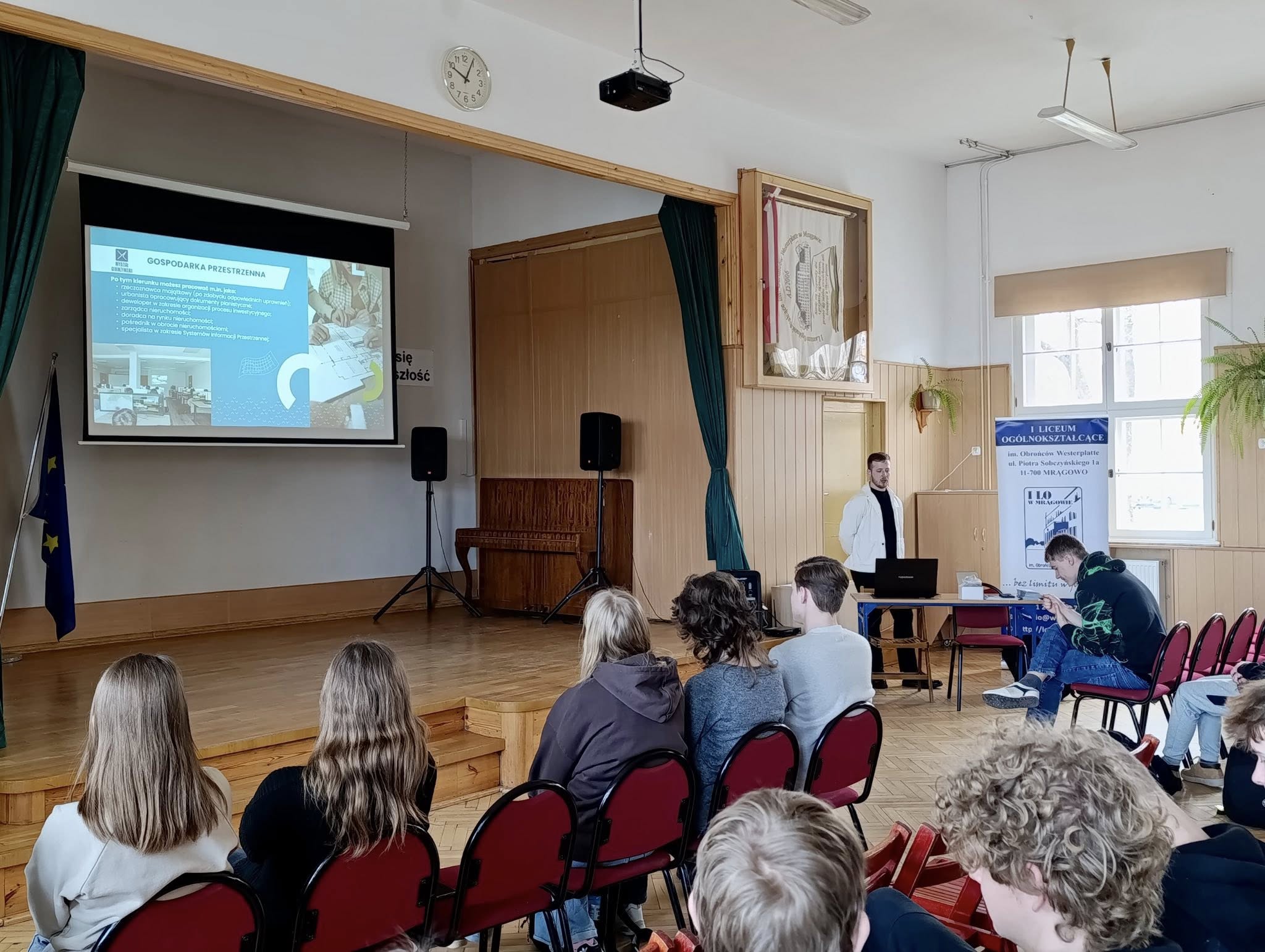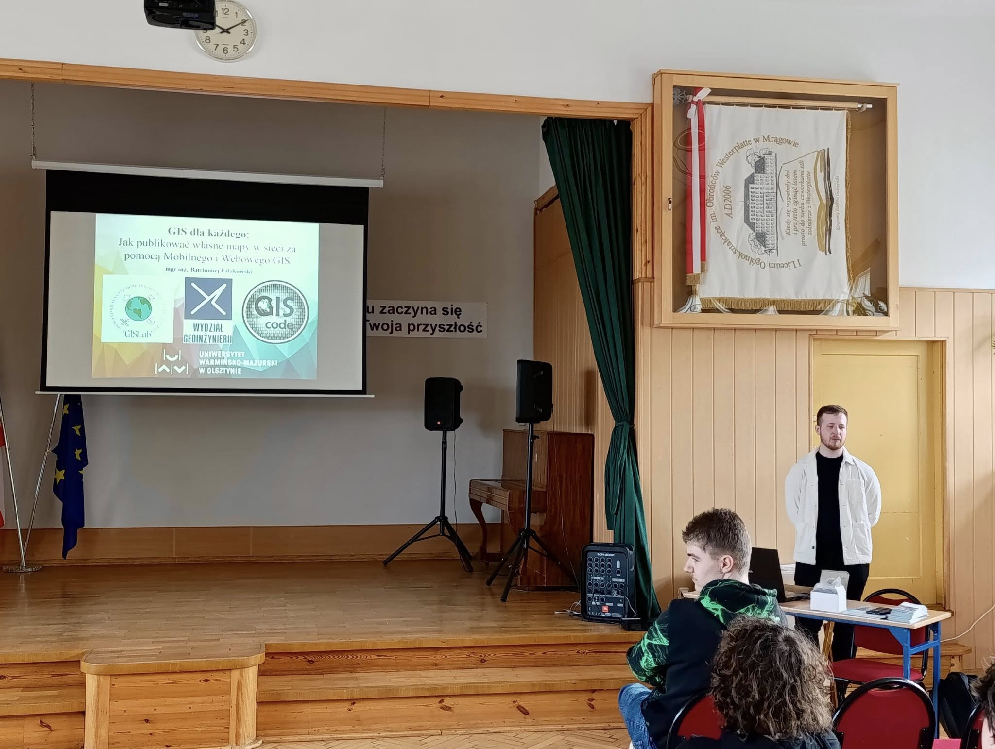 Dnia 10 kwietnia odwiedził nas absolwent naszej szkoły pan Bartłomiej Eźlakowski. Ukończył gospodarkę przestrzenną i jest doktorantem na Uniwersytecie Warmińsko -Mazurskim w Olsztynie. Podczas spotkania z klasami: 3b, 4a, 4c i 4d przedstawił możliwości studiowania na wydziale Geoinżynierii. Przeprowadził również warsztaty pt.”GIS dla każdego: Jak publikować własne mapy w sieci za pomocą Mobilnego i Webowego GIS”.