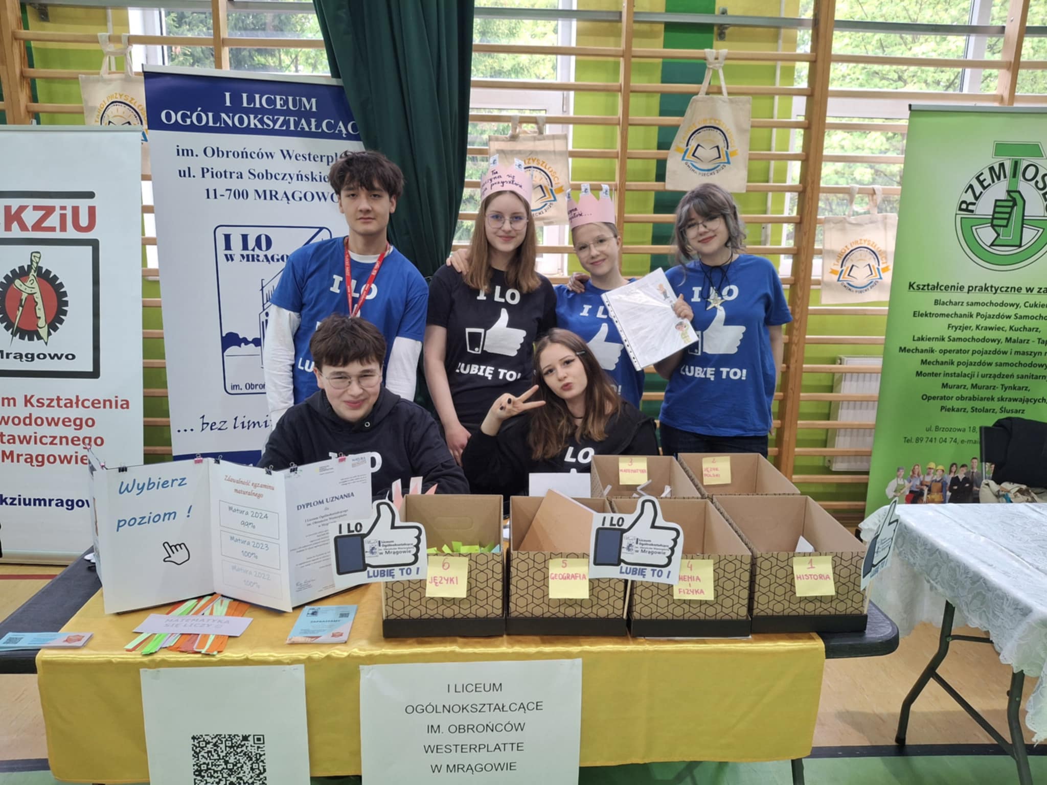 16 maja 2025 r. ośmioosobowa reprezentacja naszych uczniów pod opieką p. Karoliny Kodź- Wichowskiej i p. Łukasza Gawlińskiego wzięła udział w II edycji akcji promocyjnej pod tytułem "Targi Przyszłości". To kolejne wydarzenie wpisujące się w kalendarz pracy zespołu, którego zadaniem jest zaprezentowanie oferty naszej szkoły szerokiemu gronu potencjalnych uczniów I LO. "Było miło i było zainteresowanie przygotowanymi przez nas aktywnościami. Atmosfera spotkania sprzyjała wzajemnemu poznaniu się obecnych i przyszłych uczniów szkoły." - zgodnie stwierdzili członkowie naszej grupy.