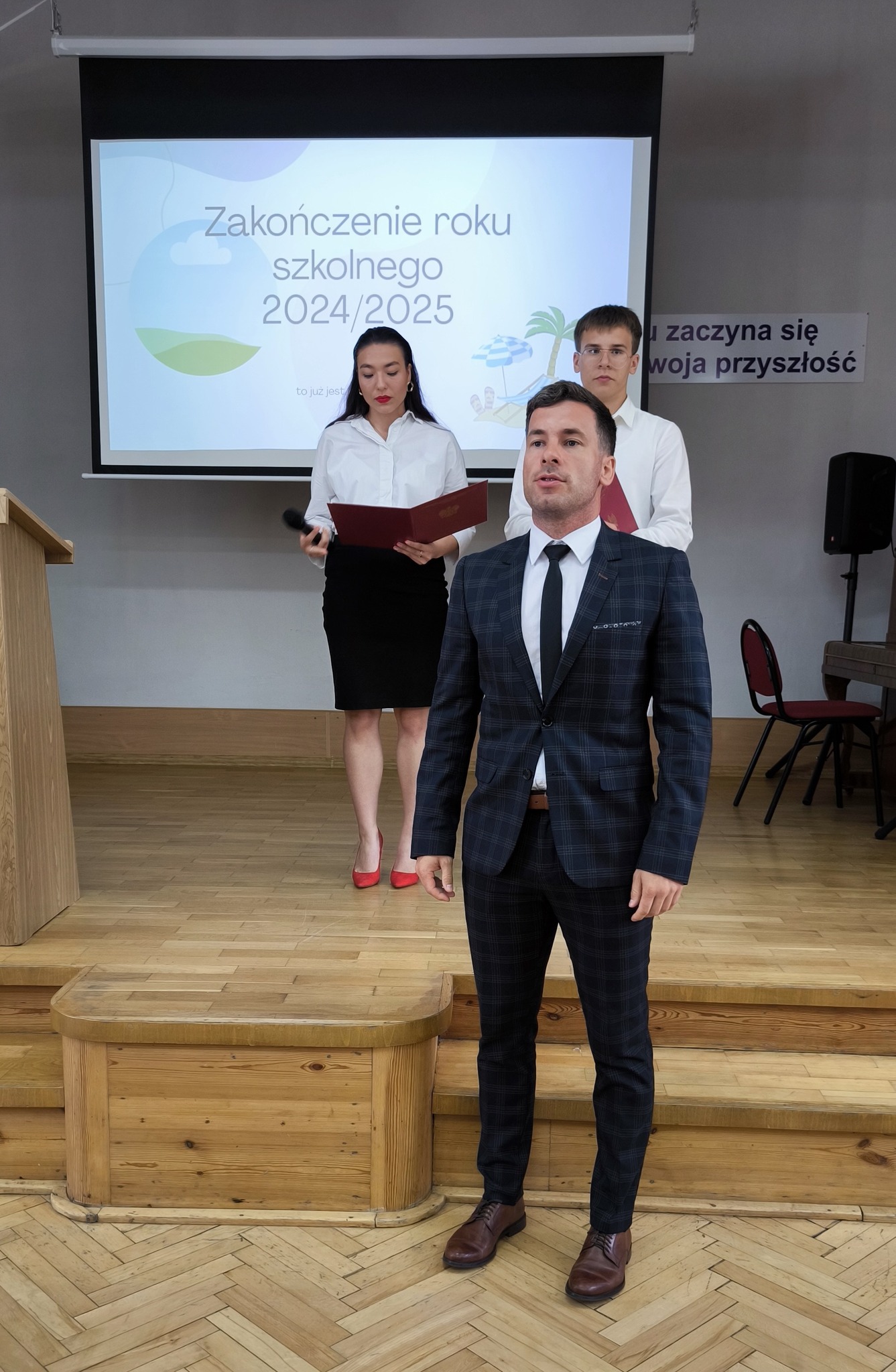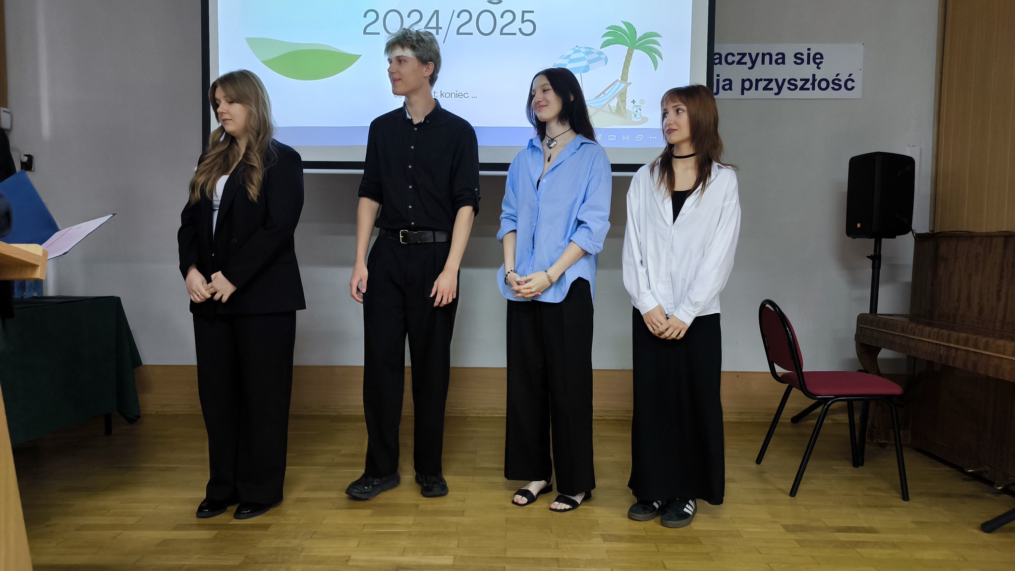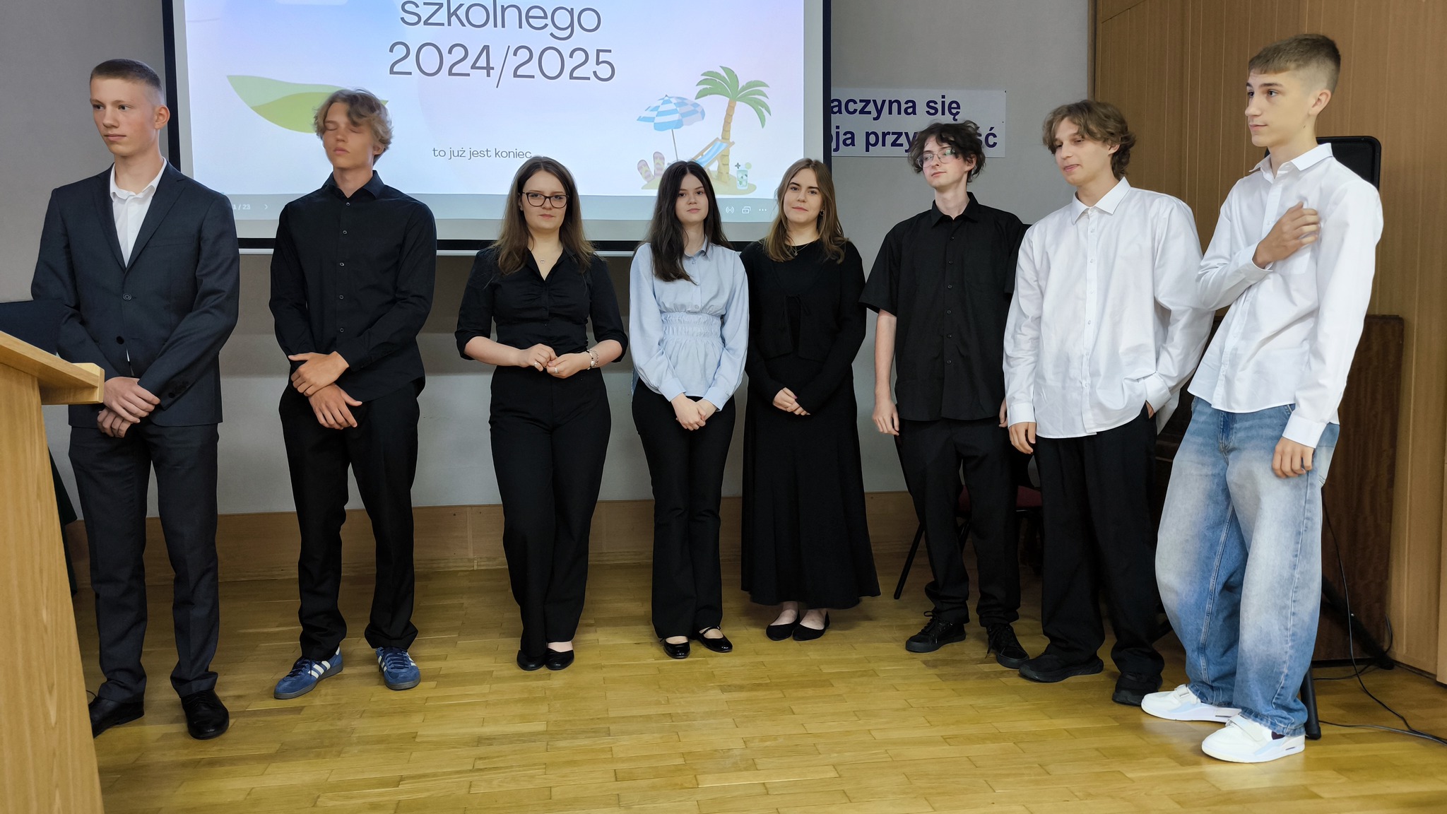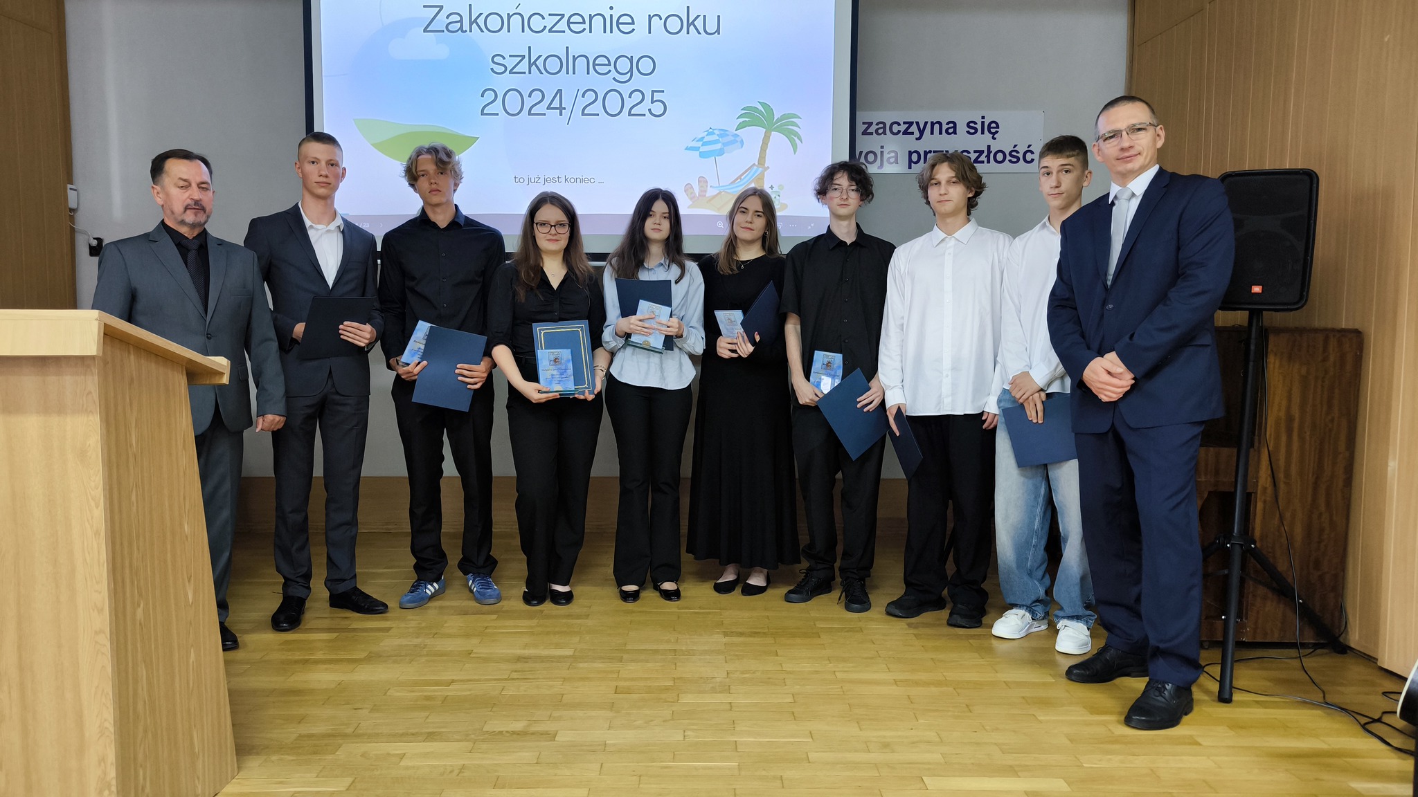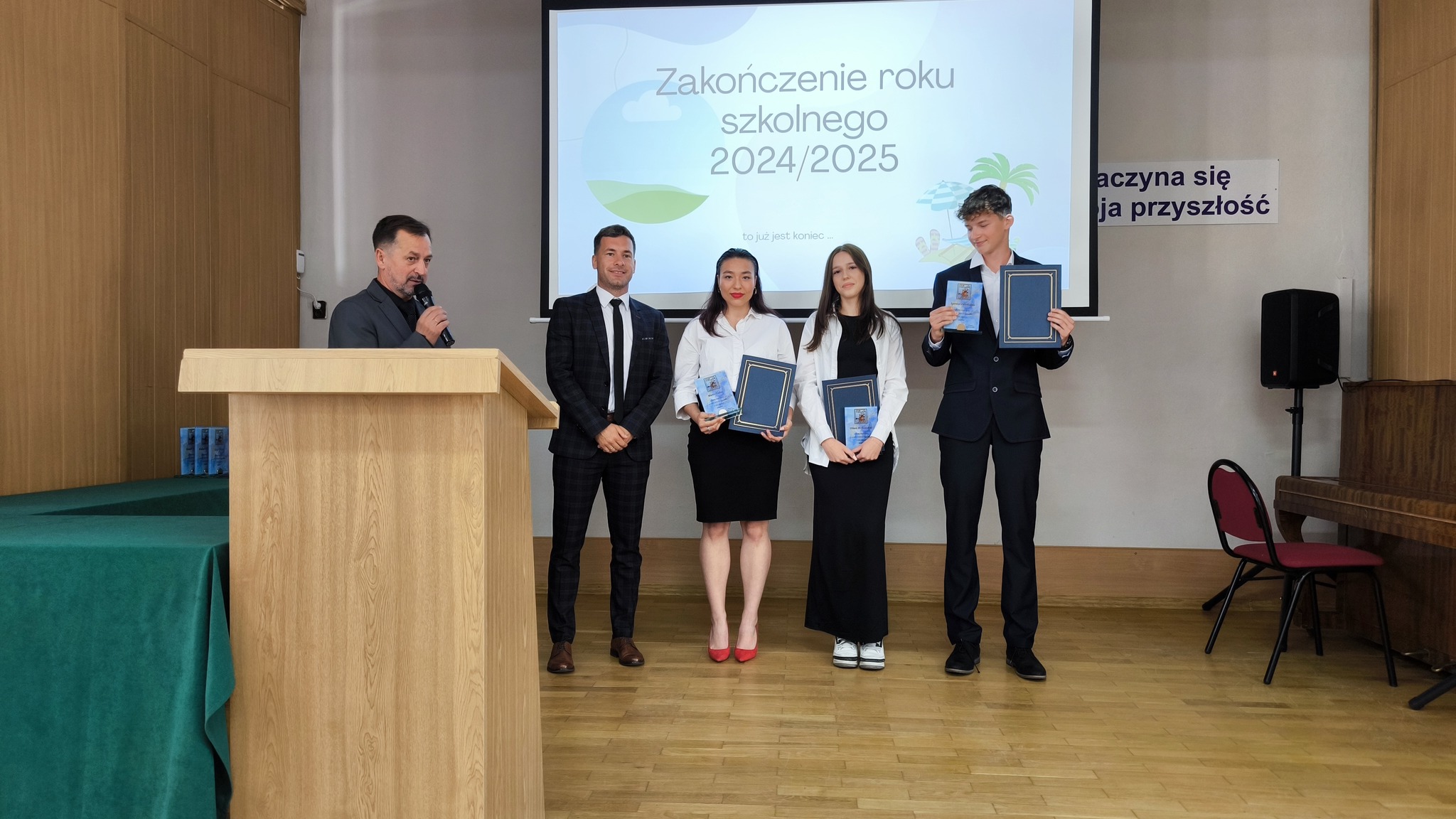 Dziś uroczyście pożegnaliśmy rok szkolny 2024/2025. Podsumowaliśmy minione miesiące nauki a Pan Dyrektor i wychowawcy klas wręczyli świadectwa z wyróżnieniem uczniom, którzy osiągnęli najwyższe wyniki w nauce i zachowaniu. Była to okazja do docenienia ich wysiłku, systematyczności i zaangażowania nie tylko w naukę.