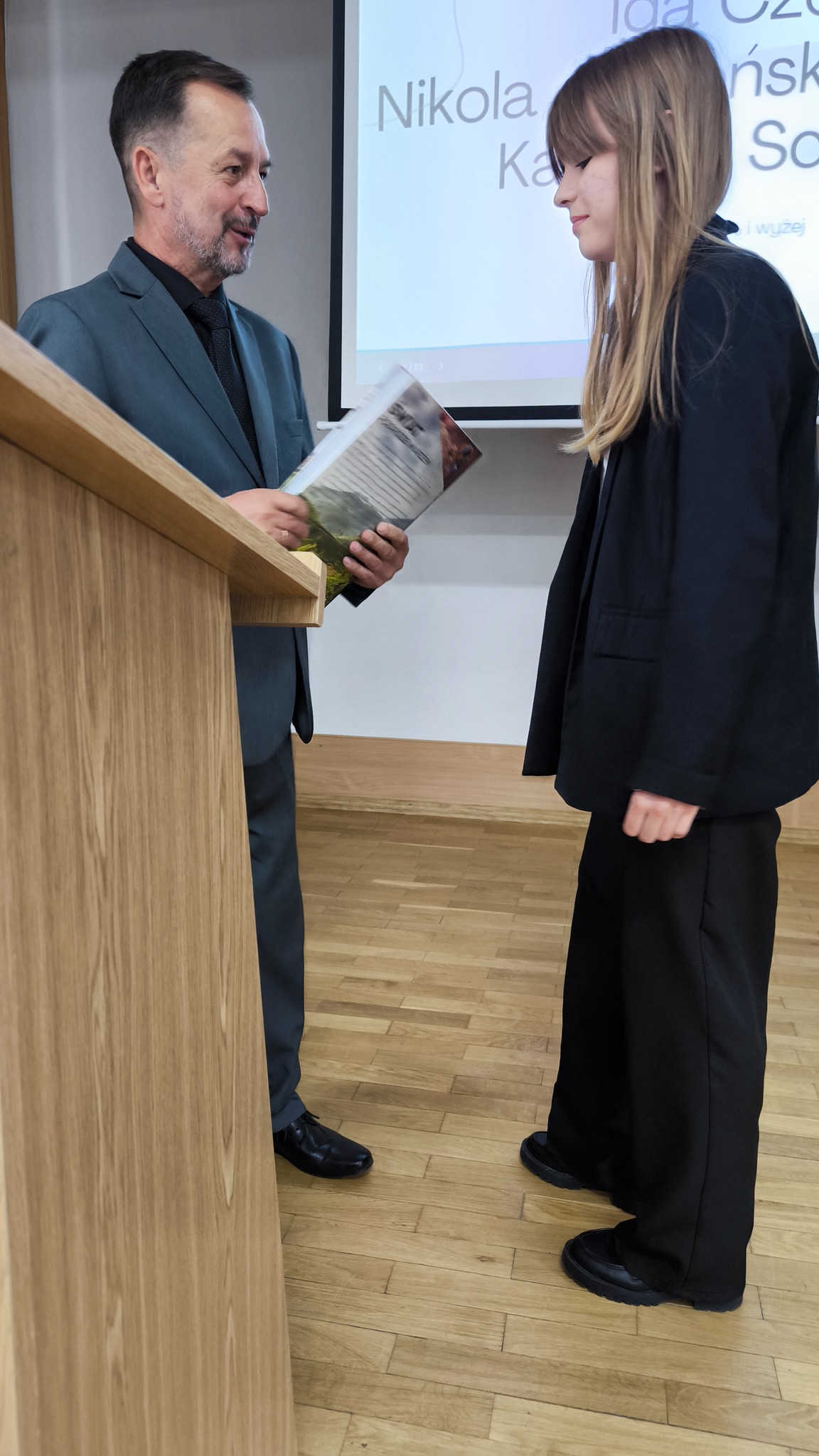 Uroczystość uświetnił występ artystyczny przygotowany przez uczniów klas 3a i 3b. Młodzi artyści zaprezentowali program pełen muzyki, tańca i humoru, który spotkał się z entuzjastycznym przyjęciem publiczności.