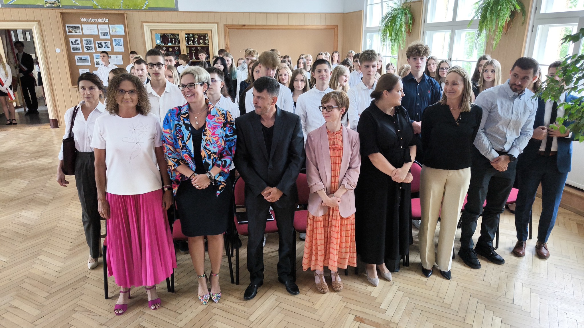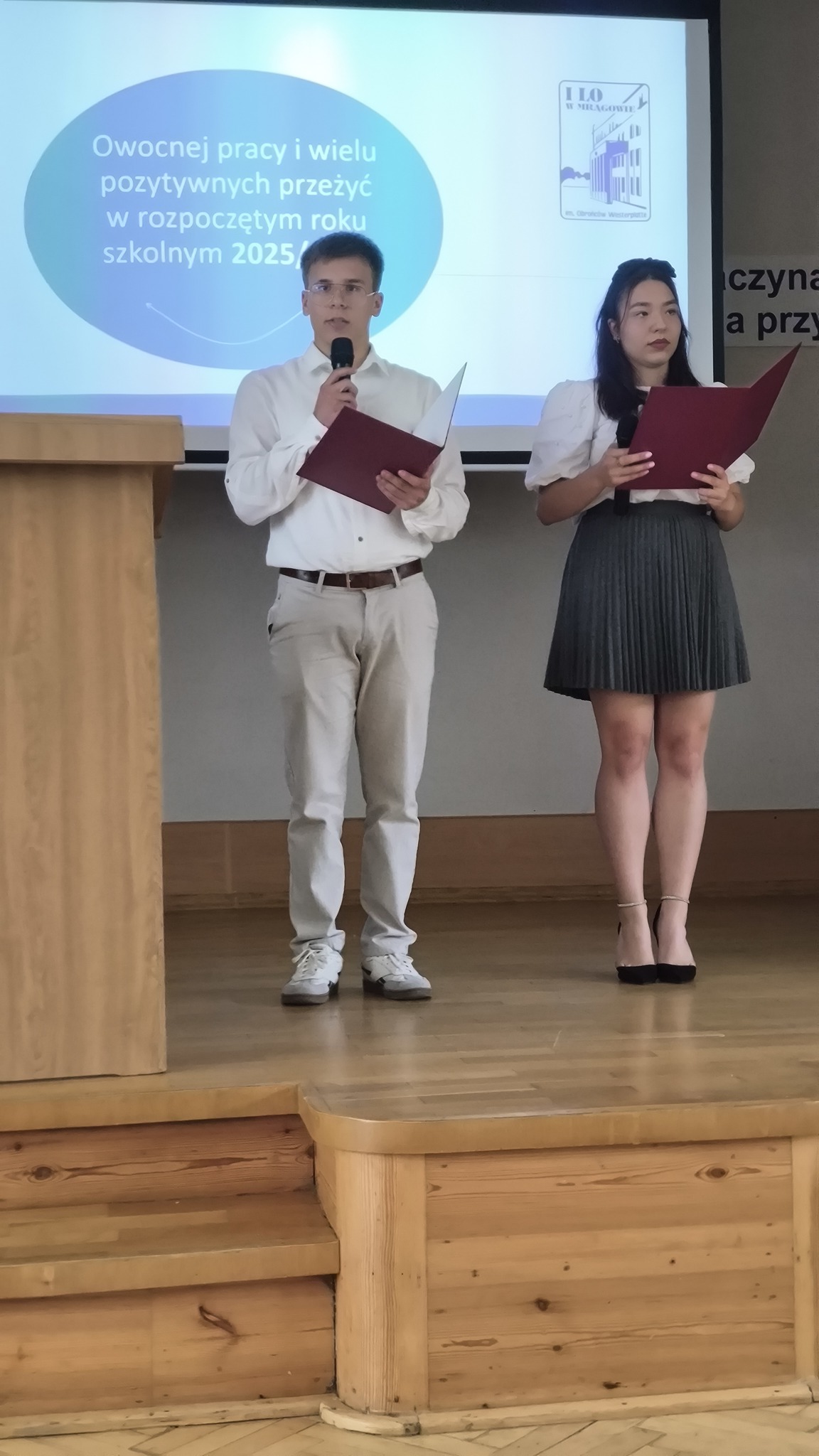 Przywitaliśmy też naszych nowych uczniów klas pierwszych, którym życzymy wytrwałości. Natomiast uczniowie klas czwartych usłyszeli słowa motywujące do intensywnej pracy przed maturą nie tylko od naszej Dyrekcji, ale też od Samorządu Uczniowskiego.