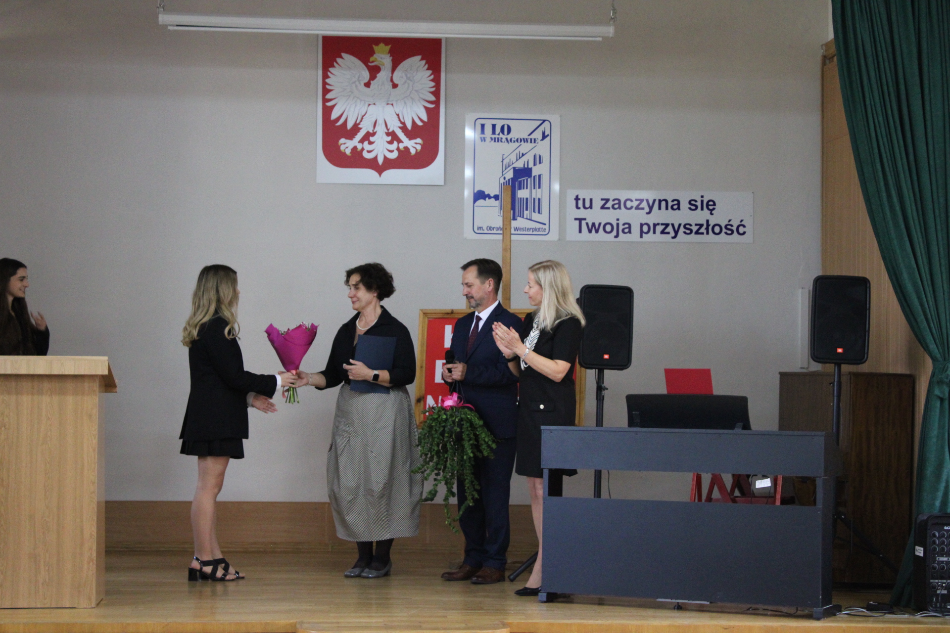 My ten dzień świętowaliśmy już w piątek. Z tej okazji Samorząd Uczniowski zorganizował i poprowadził uroczystość, w czasie której mogliśmy doświadczyć różnych emocji: dumy i radości, gdy nasi nauczyciele otrzymali nagrody za swoją pracę, zadumy podczas Preludium e-moll Op. 28 nr 4 Fryderyka Chopina w wykonaniu Poli Gregorowicz z klasy 3c,