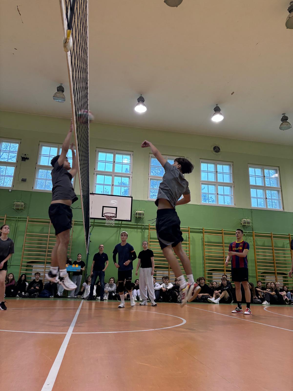 W piątek odbył się II Szkolny Turniej Piłki Siatkowej, w którym wzięło udział 13 drużyn. Puchar na rok przejęła klasa 3e, której drużyna w finale pokonała obrońców tytułu, klasę 3a. W superfinale drużyna pracowników szkoły niestety uznała wyższość klasy 3e przegrywając w setach 1:2. Gratulujemy klasie sportowej podwójnego trofeum. Brawo!