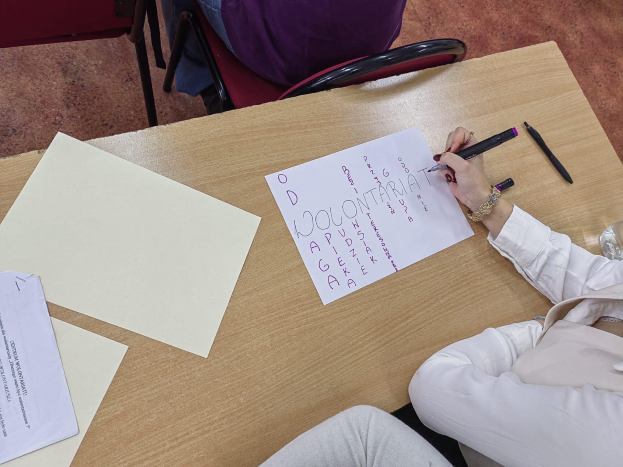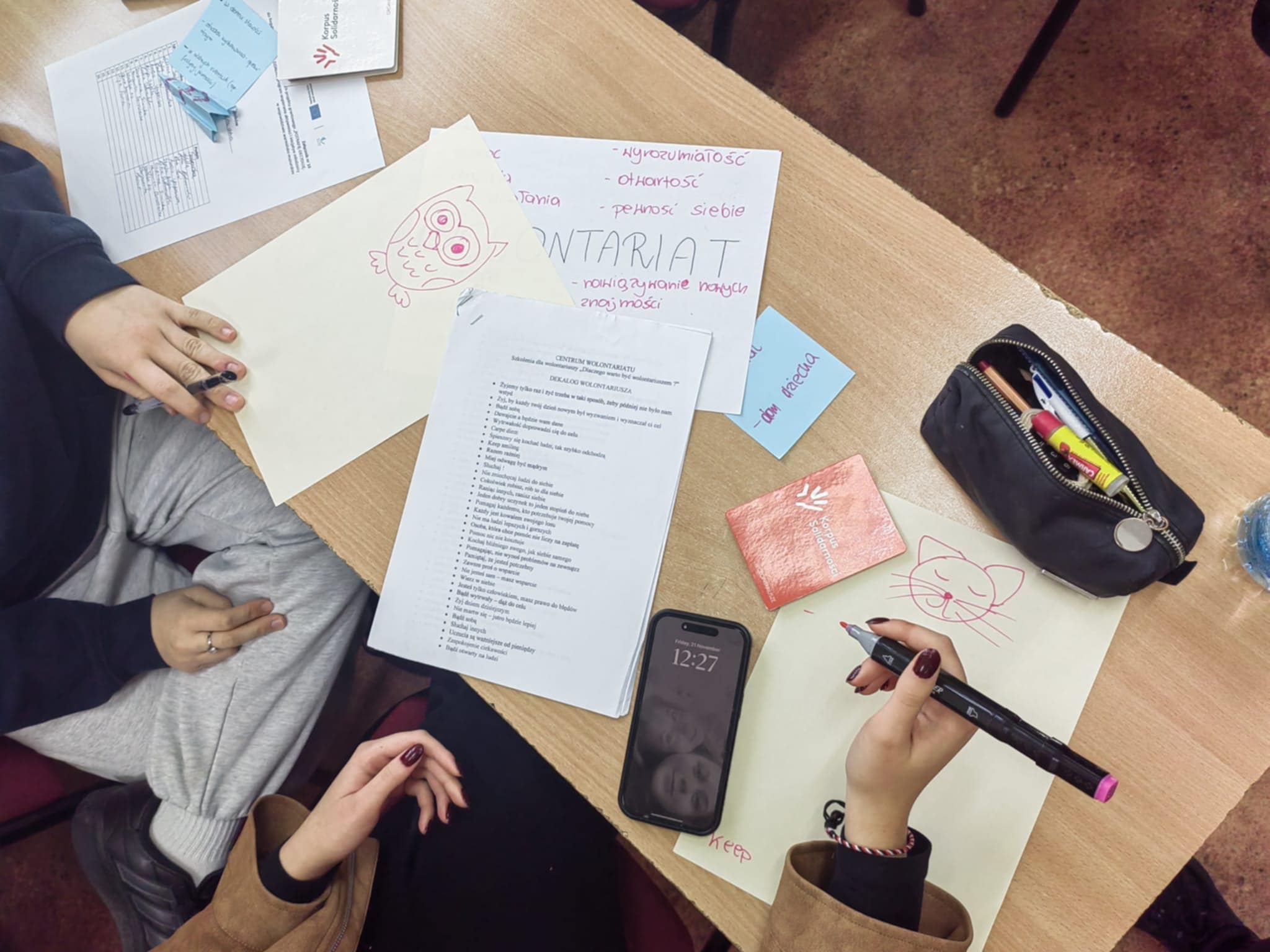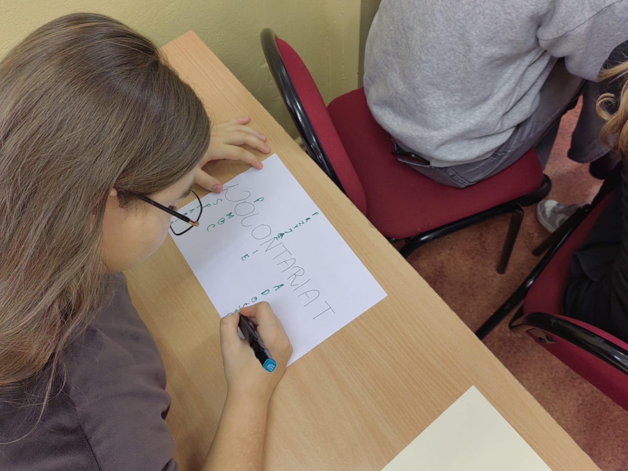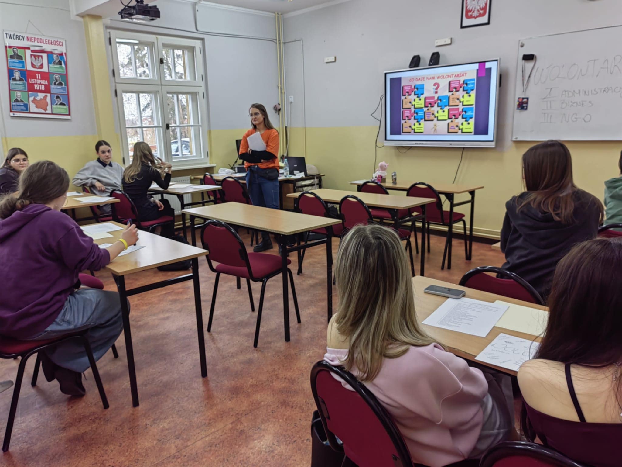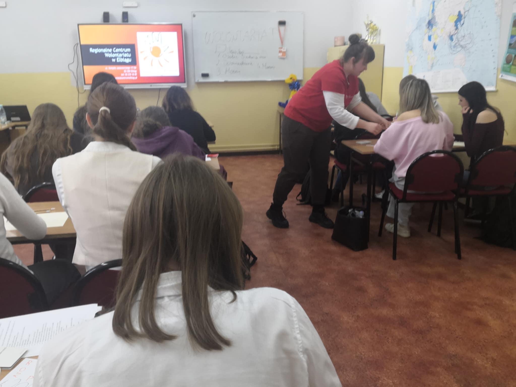 Mieliśmy zajęcia grupowe na których rozmawialiśmy o tym czym tak na prawdę jest wolontariat, dlaczego jest ważny i jak się angażować aby dostrzegać potrzeby tego świata.
