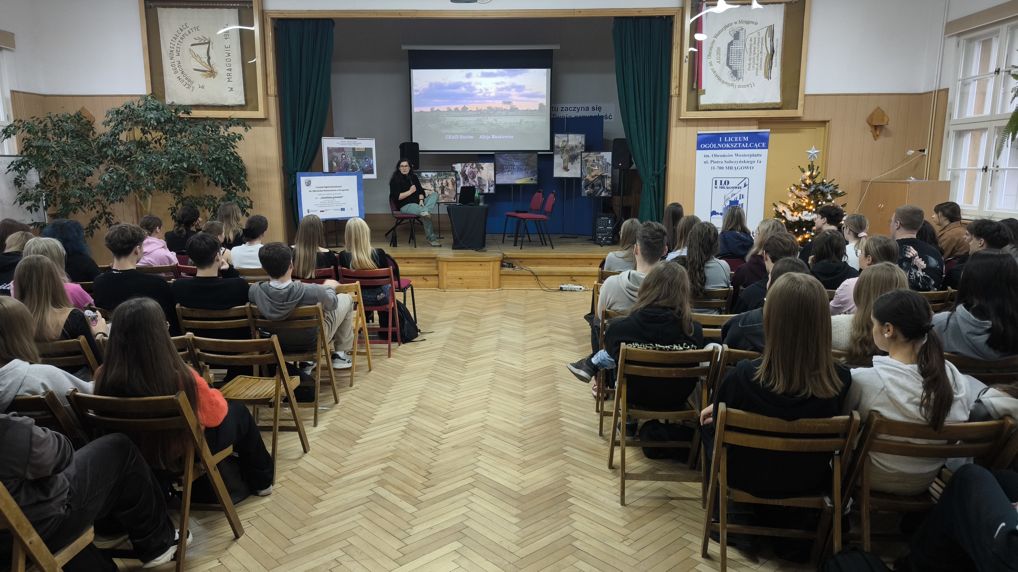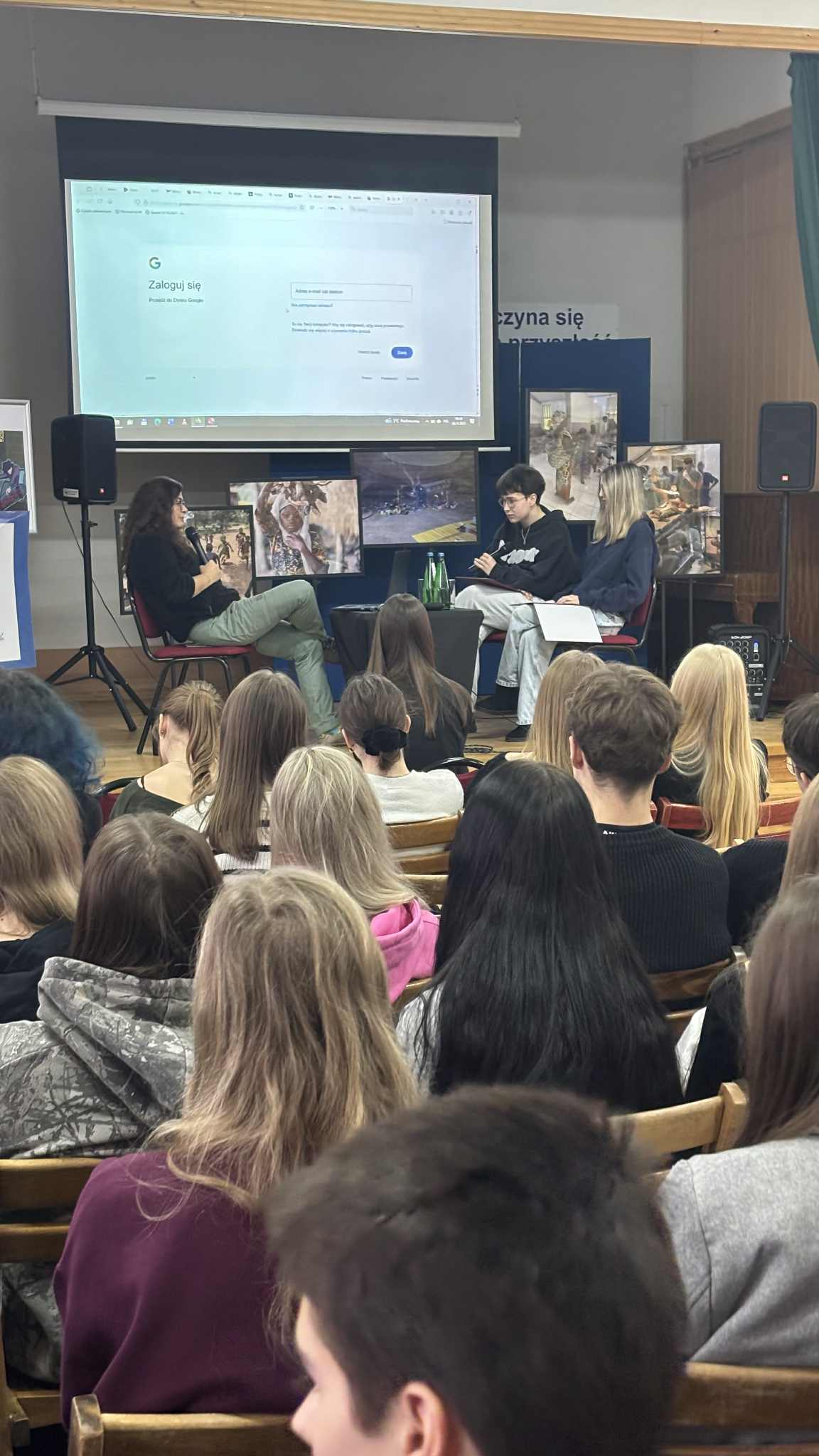 Podczas wykładu mieliśmy okazję wysłuchać wiele o tym doświadczeniu- opowiadała o codziennych wyzwaniach, z jakimi mierzą się tamtejsze społeczności, o braku sprzętu medycznego, o pracy w ekstremalnych warunkach, ale też o niezwykłej sile, serdeczności i determinacji ludzi, których spotkała. Pokazała nam prawdziwą, często trudną stronę wolontariatu – pełną odpowiedzialności, emocji i momentów, które zostają w pamięci na zawsze i nas kształtują. Jej historie były jednocześnie wstrząsające i inspirujące. Wiele się nauczyliśmy, a cała rozmowa skłoniła nas do głębokiej refleksji nad codziennością, którą często traktujemy jako oczywistość. Otwartość Pani Doktor, imponująca wiedza oraz umiejętność nawiązywania kontaktu z młodymi ludźmi sprawiły, że rozmowa była nie tylko wartościowa merytorycznie, ale też bardzo angażująca. Po wywiadzie mieliśmy możliwość podzielenia się własnymi refleksjami, przemyśleniami oraz okazję do zadawania pytaniań. Spotkanie było naprawdę wyjątkowe, pełne autentycznych emocji. Serdecznie dziękujemy Pani Doktor za podzielenie się swoim doświadczeniem i czasem.