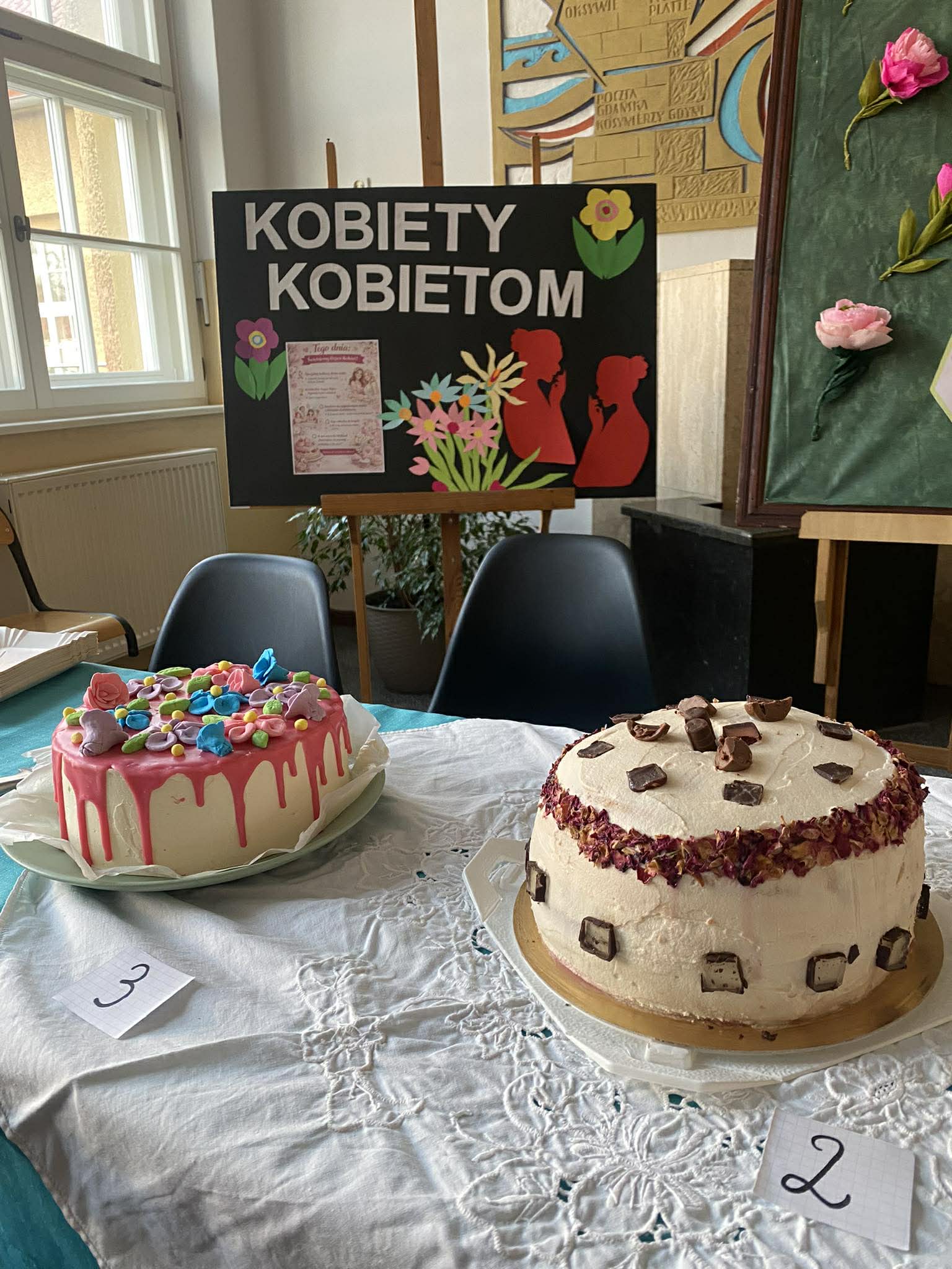 W ramach obchodów zorganizowano również konkurs na najpiękniejsze ciasto połączony z kiermaszem charytatywnym. Uczniowie przygotowali pięknie udekorowane wypieki. Podczas kiermaszu można było kupić słodkości pod hasłem „Kup pyszne ciasto – wesprzyj kobiety w Czadzie”. Zebrane środki zostaną przeznaczone na pomoc potrzebującym w Afryce. Jest to element projektowych działań charytatywnych Sztafety Dobra .
