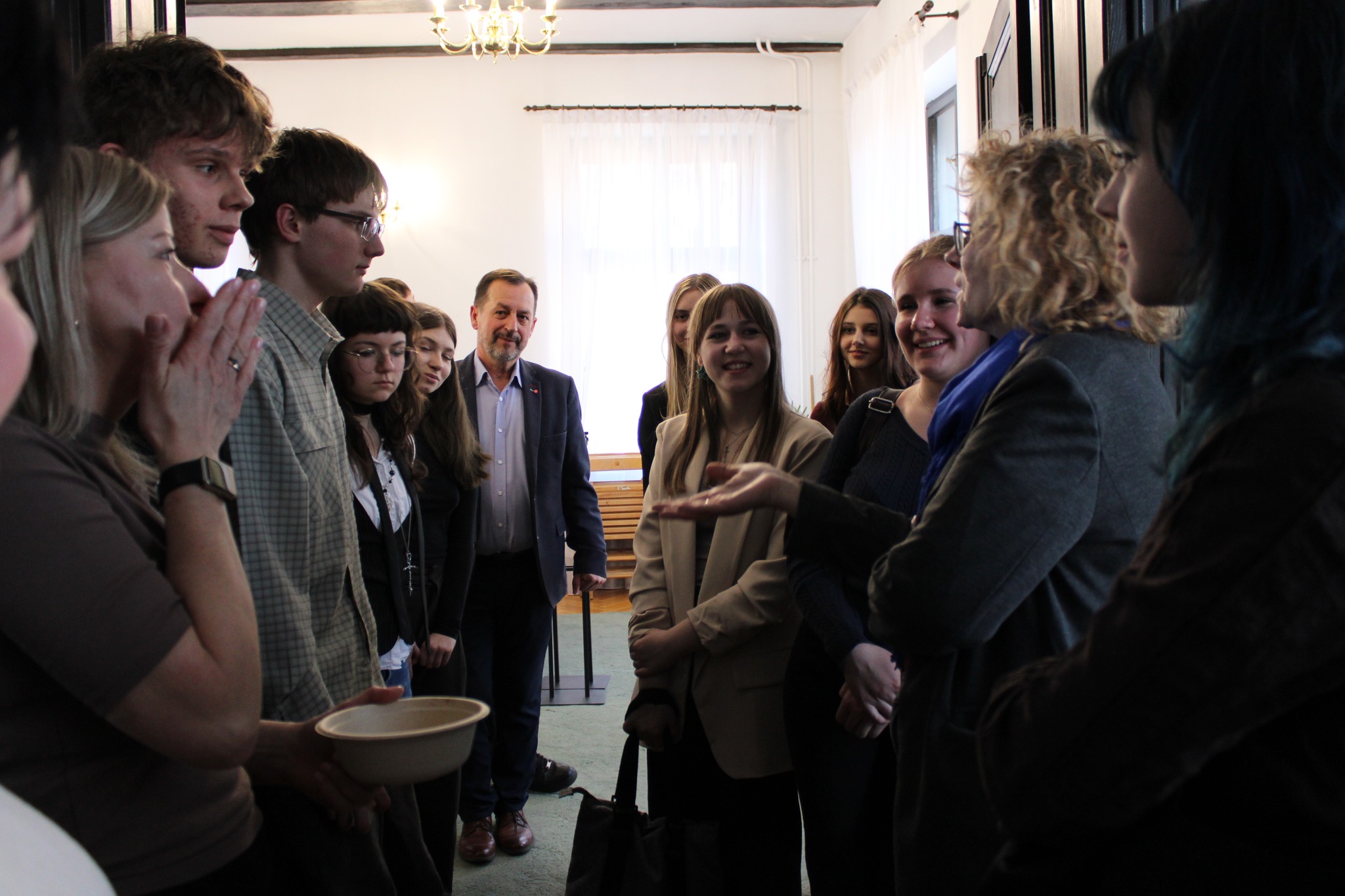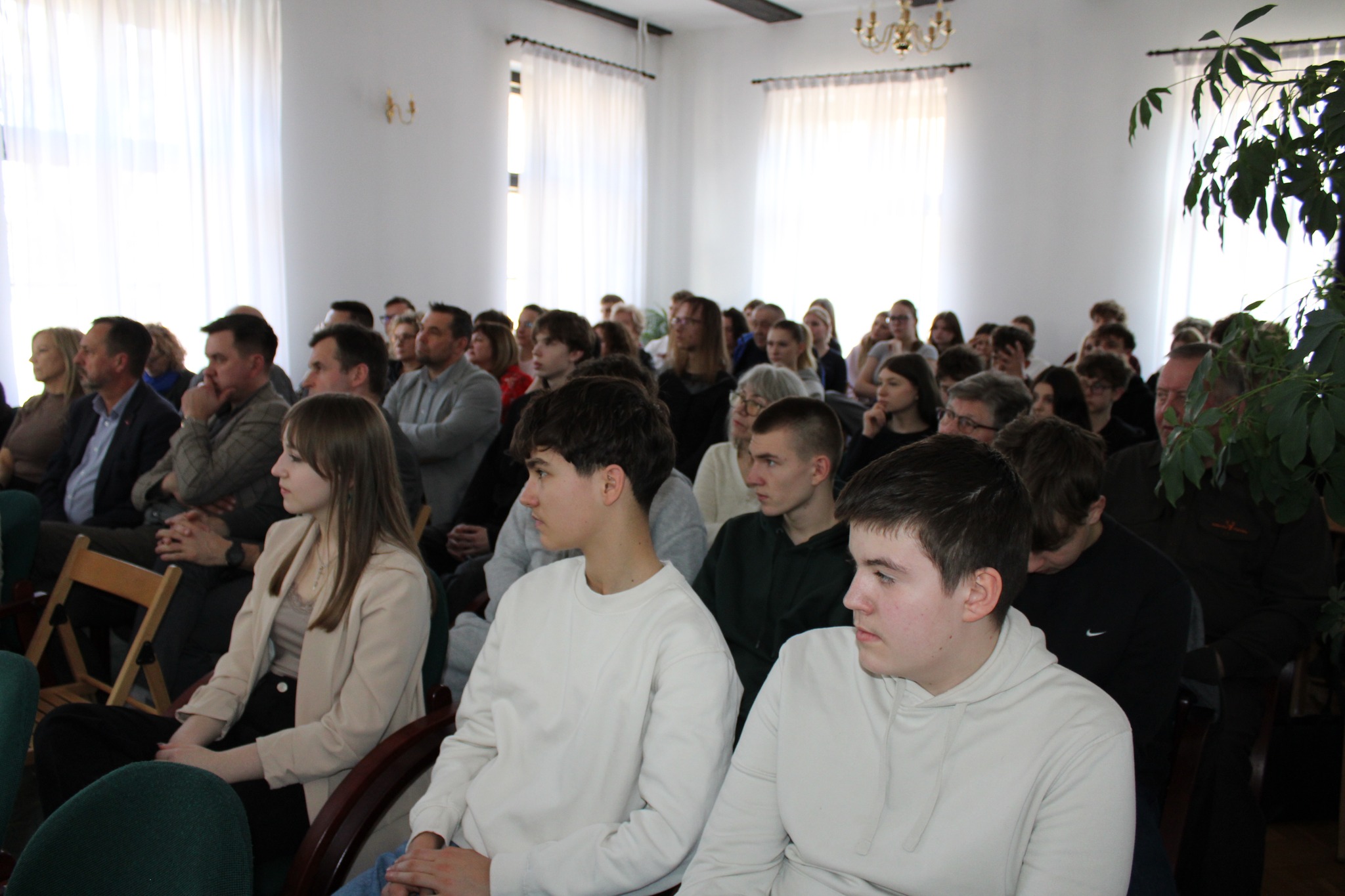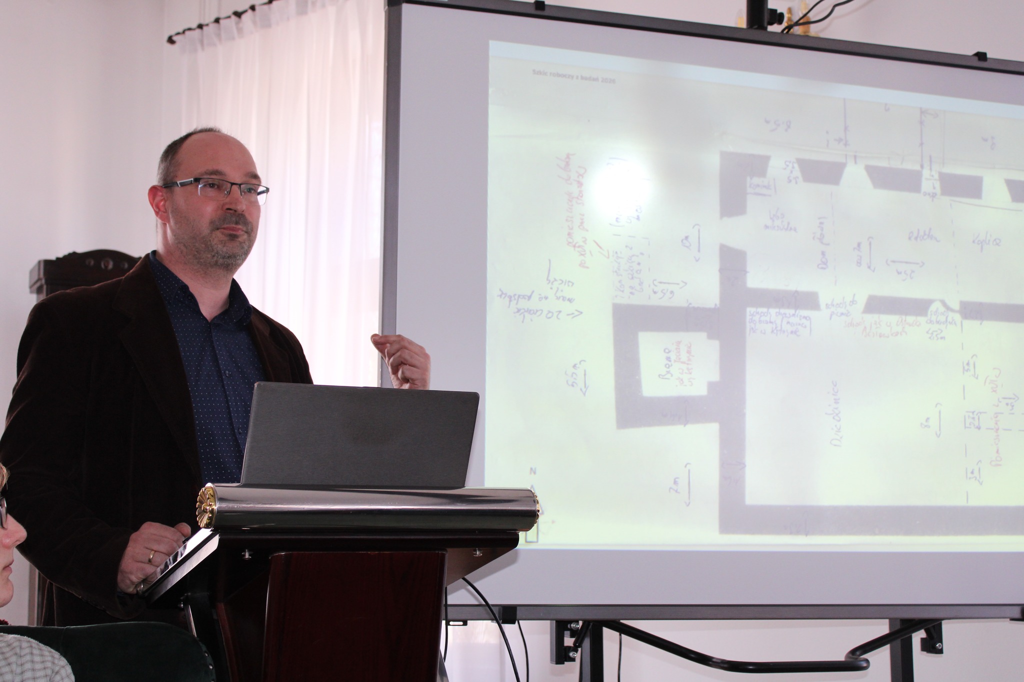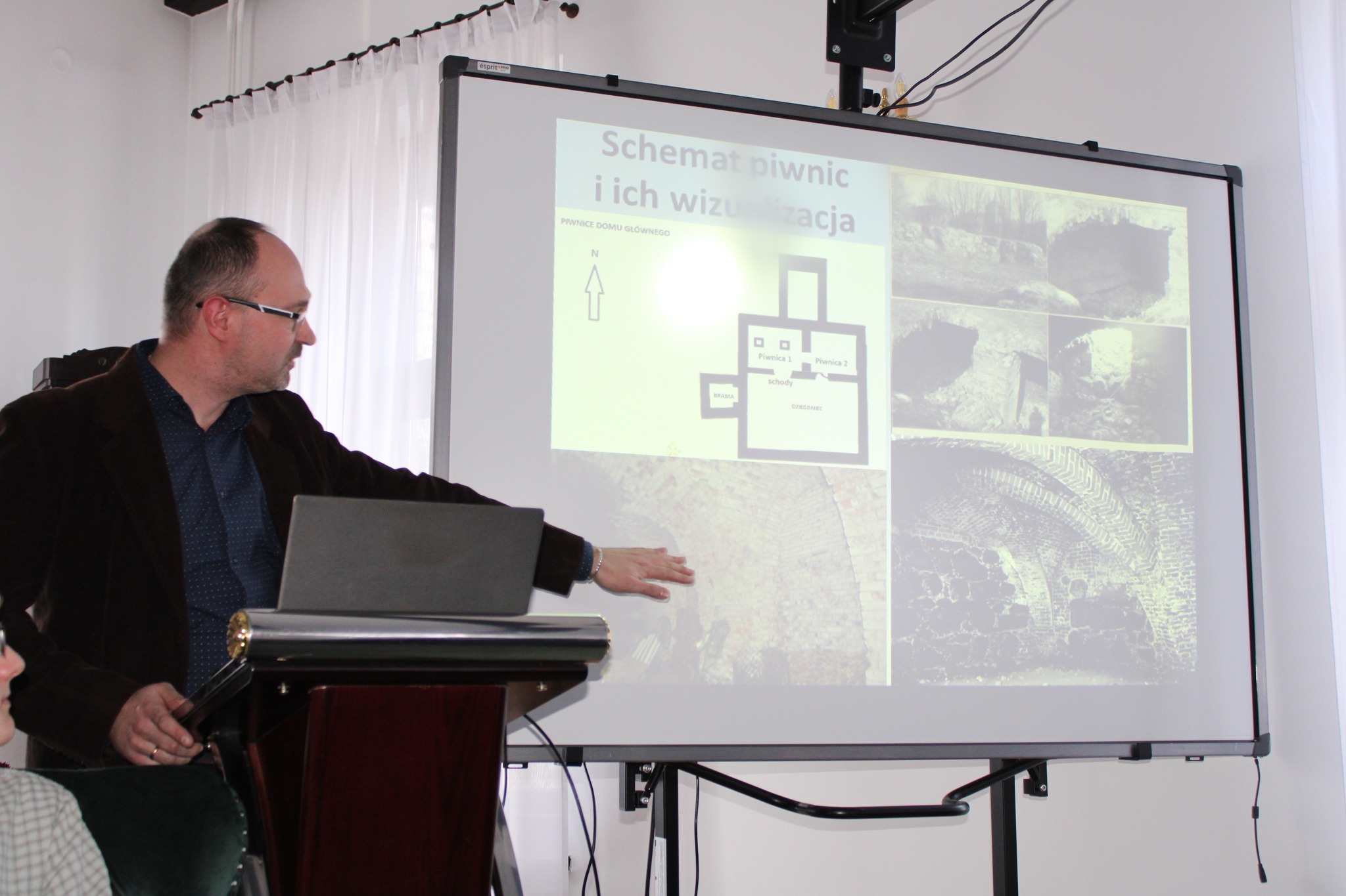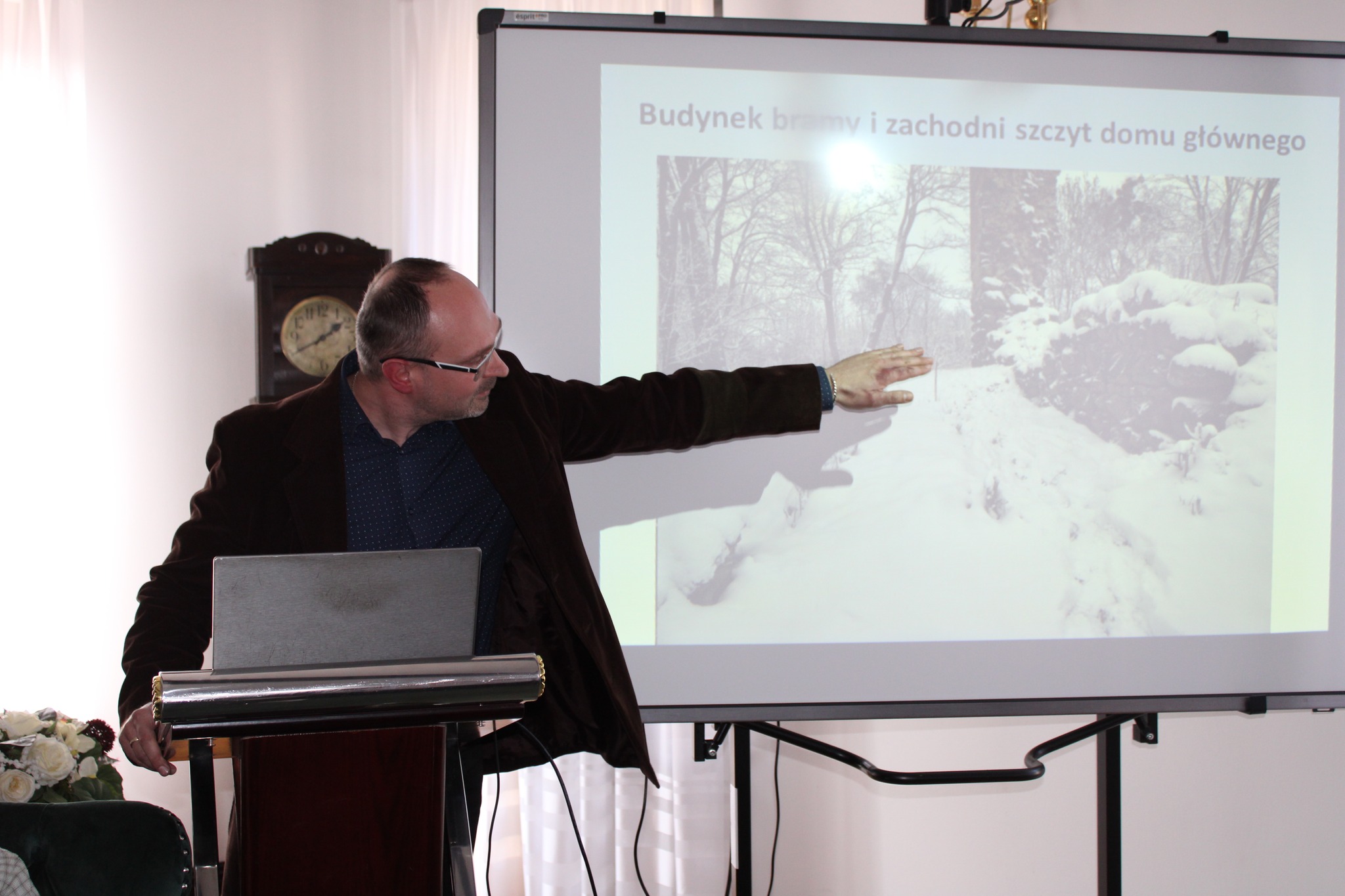 Drugą częścią spotkania, był wykład opiekuna projektu i jednocześnie absolwenta Naszego Liceum, p. dr Mateusza Przybysza, który zaprezentował zrekonstruowaną w ramach projektu historię i bryłę zamku krzyżackiego w Szestnie. Pod kierunkiem p. Przybysza uczestnikom udało się odtworzyć wygląd i układ pomieszczeń, będącego obecnie w stanie trwałej ruiny zamku.