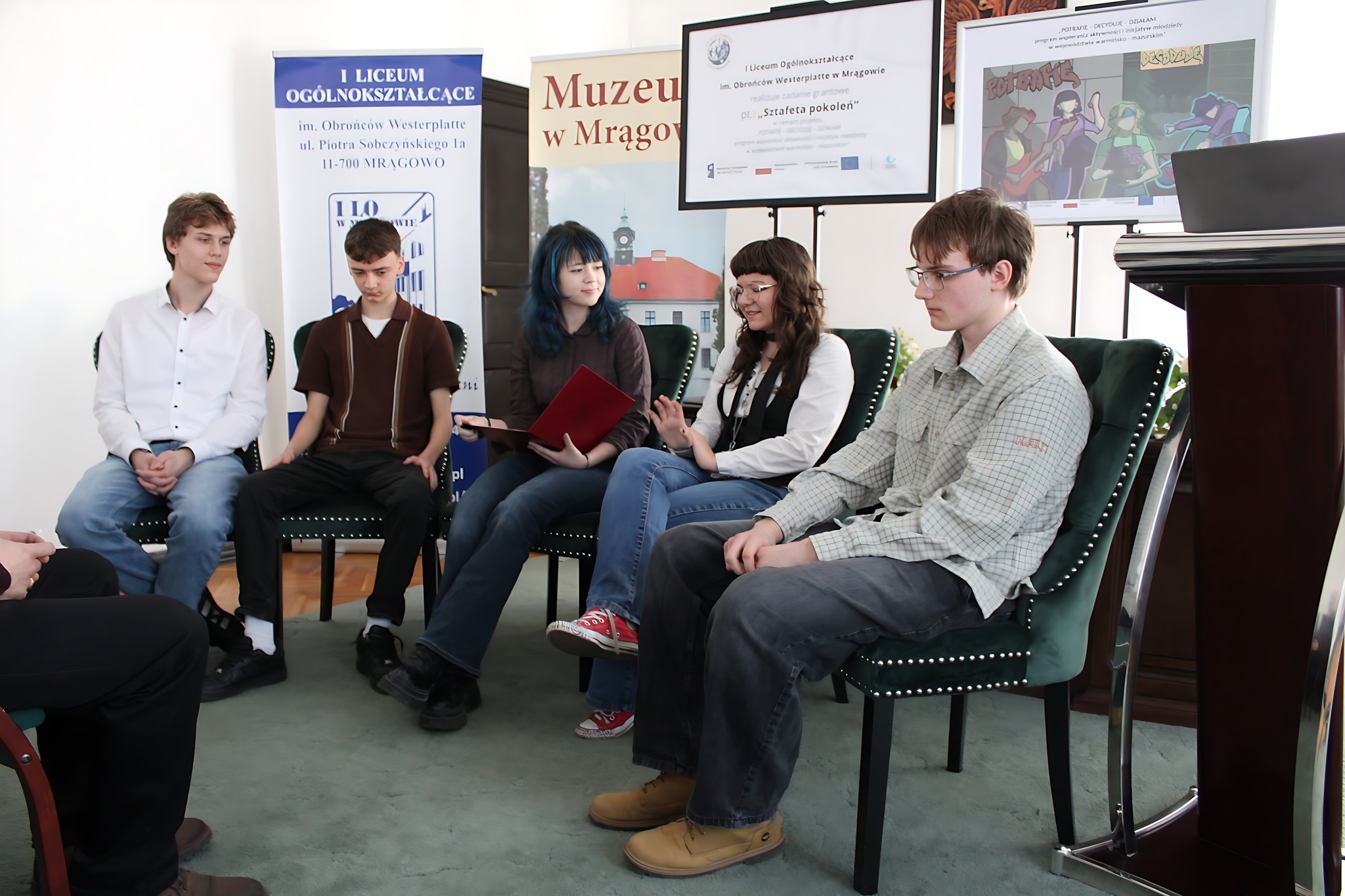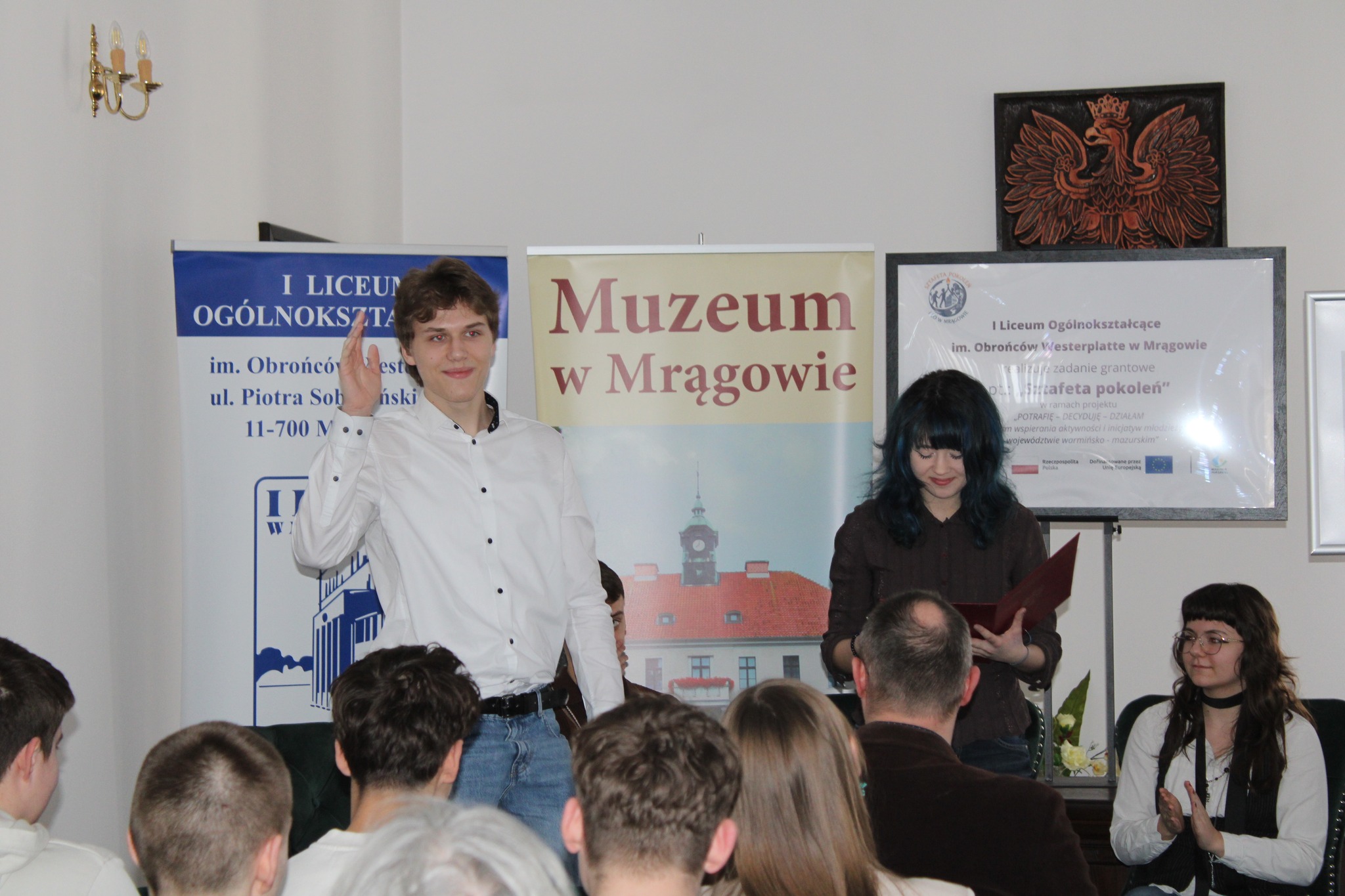 Zakończenie prac Sztafety HistoriiW wyjątkowo szczęśliwy piątek 13, o godz 13, w Sali Ślubów mrągowskiego ratusza, odbyło się publiczne przedstawienie wyników prac Sztafety Historii. W obecności władz samorządowych z miasta, powiatu i gminy, licznych mieszkańców oraz uczniów lokalnych szkół, uczestnicy projektu zaprezentowali wyniki swojej pracy. Przedstawiciele sztafety opowiedzieli o praktycznej stronie realizacji i podjętych przez nich działaniach.