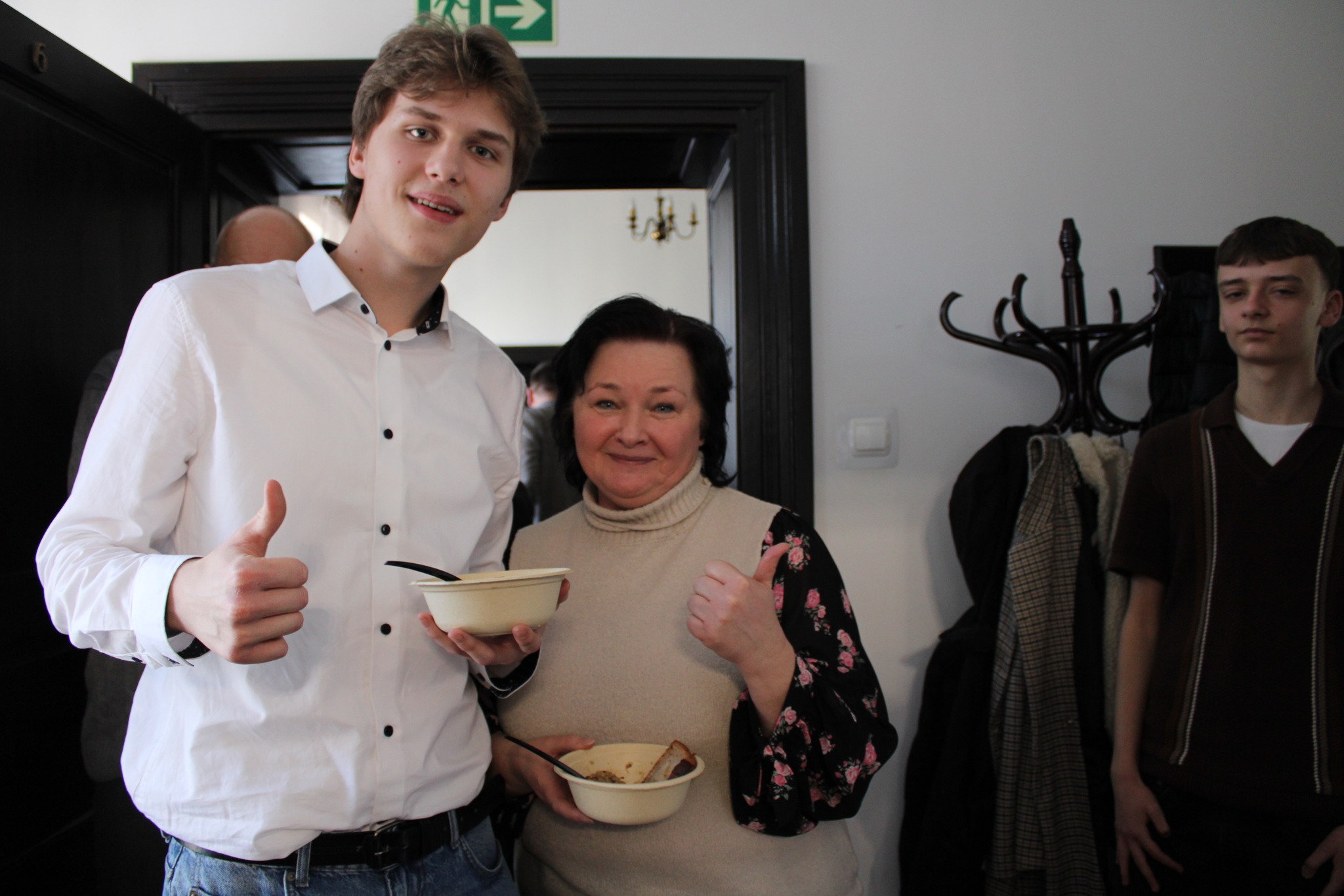 Na koniec spotkania, przy średniowiecznym jedzeniu, zebrani mogli porozmawiać z realizatorami projektu, a jego uczestnicy udzielić wywiadów lokalnym mediom i pozować do pamiątkowych fotografii.
