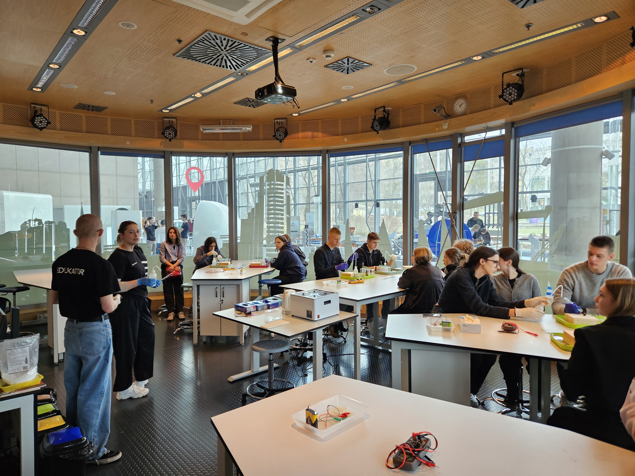 Po warsztatach przeszliśmy do zwiedzania całej wystawy. Każdy mógł samodzielnie sprawdzić różne stanowiska i eksponaty, które pozwalały poprzez zabawę zrozumieć zjawiska naukowe. Najwięcej radości sprawiły nam interaktywne instalacje, przy których mogliśmy eksperymentować i odkrywać prawa fizyki czy biologii.