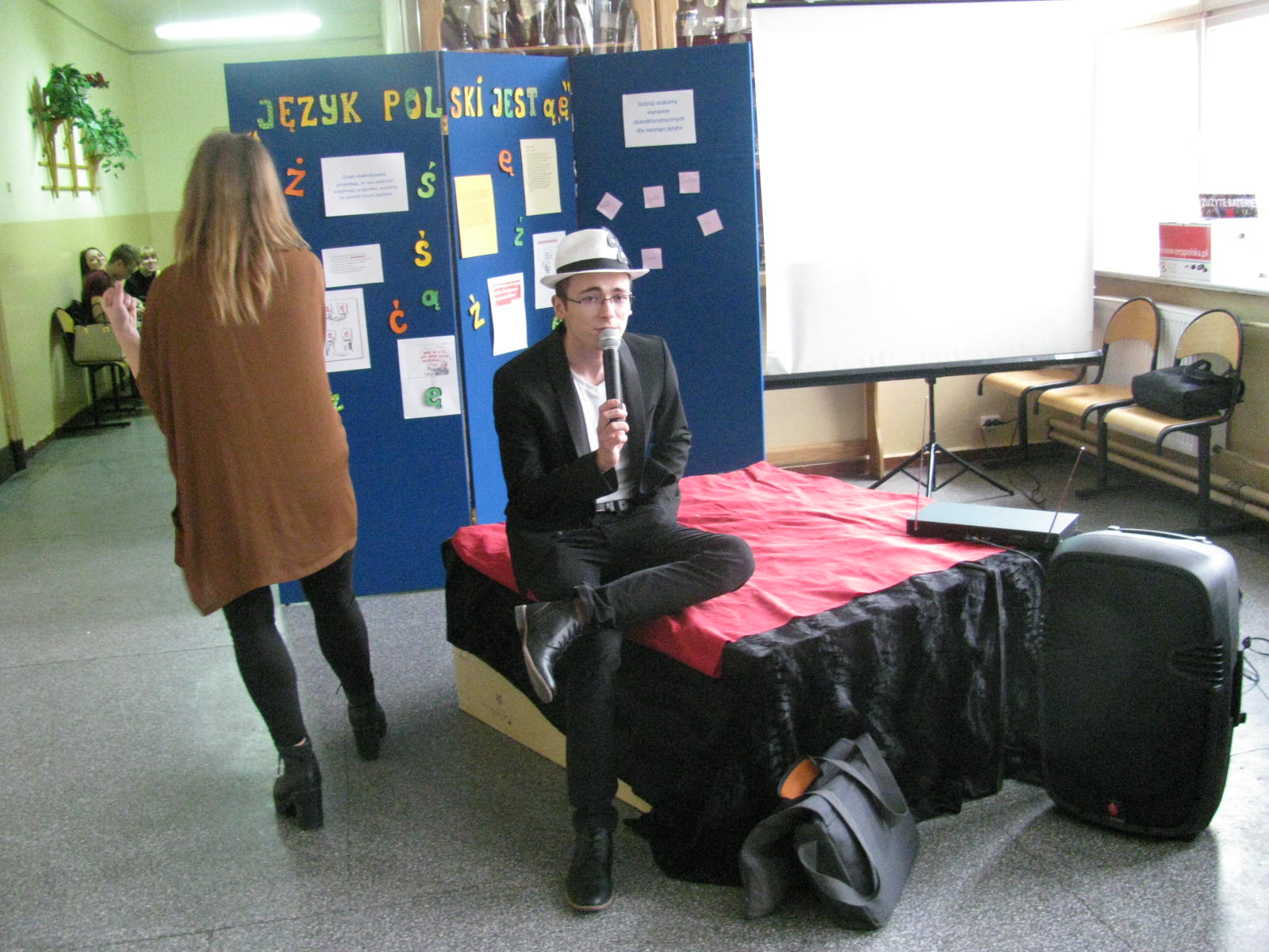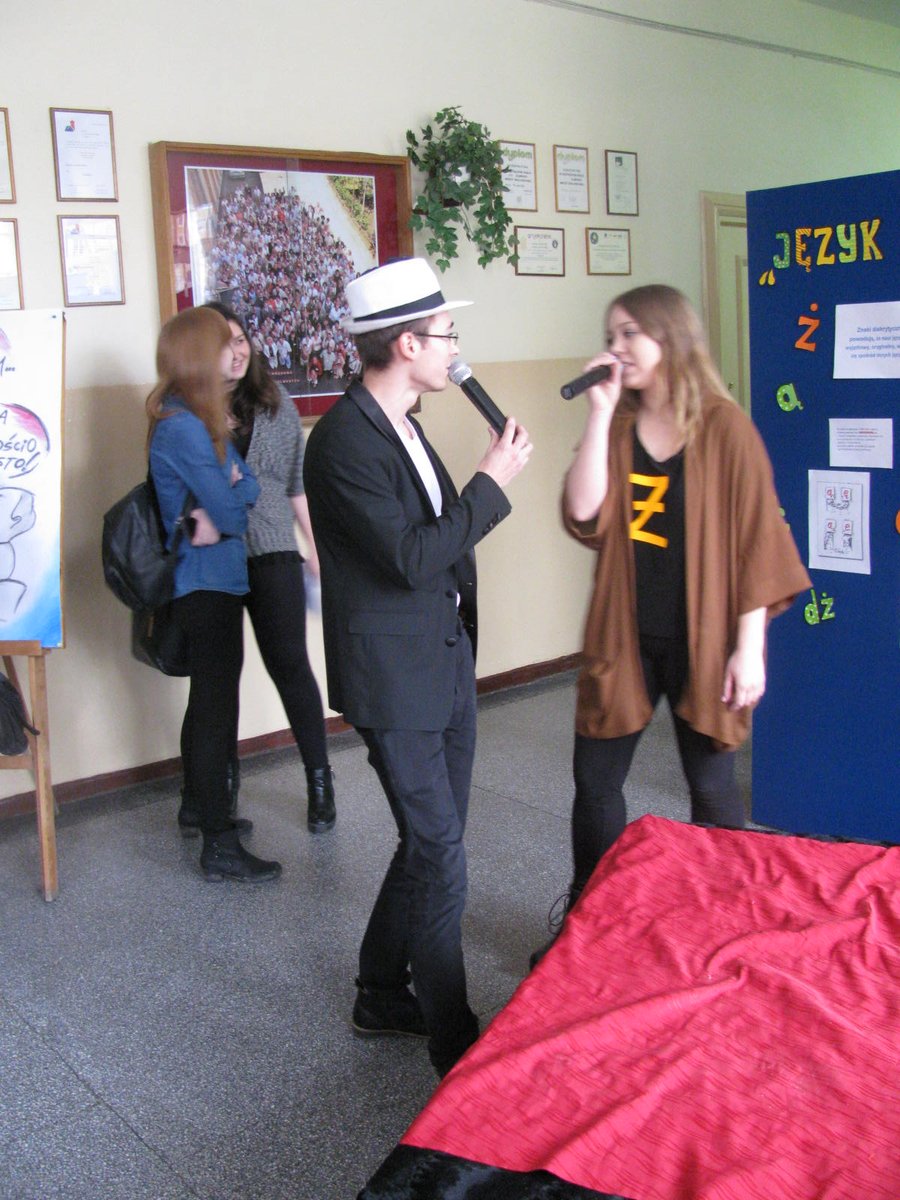 Na przerwach nasze niezawodne polonistki i równie niezawodni uczniowie przygotowali językową rozrywkę. Można było np. zmierzyć się z głoskami szeleszczącymi w karkołomnych rymowankach czytanych w zawrotnym tempie lub dać się ponieść muzycznemu szaleństwu karaoke śpiewając piosenki z tekstami pozbawionymi polskich znaków. Tutaj szczególne podziękowania należą się Amelii Mazurek i Bartkowi Dołżyckiemu za charyzmę.