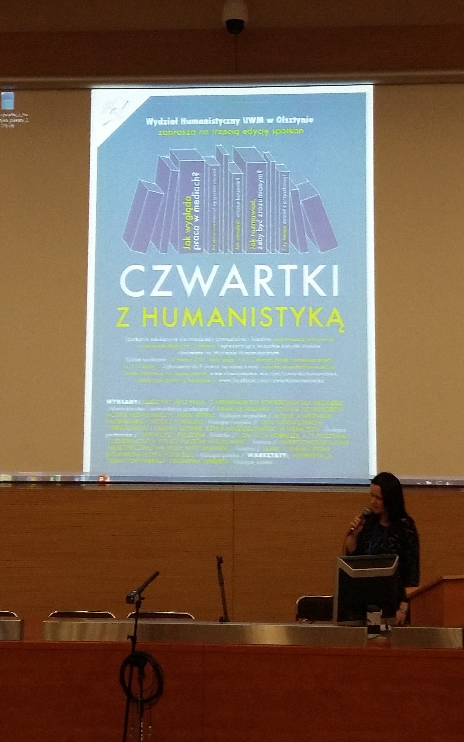 Najbardziej podobał mi się wykład o sukienkach, zawierał wiele wręcz szokujących faktów i zainspirował mnie. Bardzo przyjemny był również wykład o wolnym tłumaczeniu z języka angielskiego, uświadomiono mi, jak bogaty jest język polski. Dodatkowo dowiedziałam się o planie otwarcia bardzo interesującego kierunku na UWM. - Natalia Kołodziej