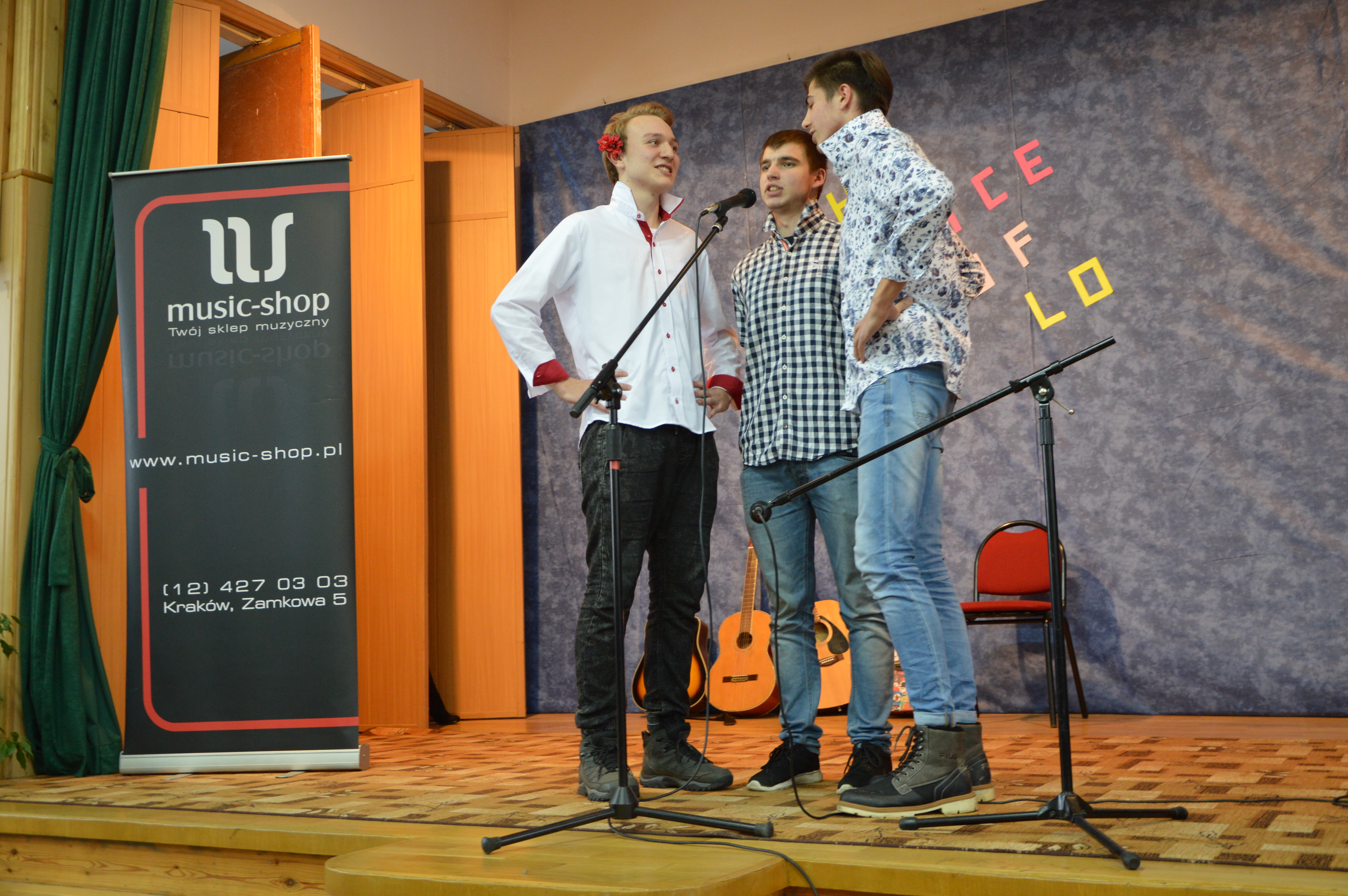 Ponadto, dziękujemy naszym sponsorom: Music-Shop.pl sponsorowi głównej nagrody - mikrofonu Snowball ICE, FH Orlik sponsorowi słodyczy, siłowni R-23 sponsorowi karnetów na dwa wejścia oraz Samorządowi Uczniowskiemu za ufundowanie drugiej nagrody - płyty muzycznej.