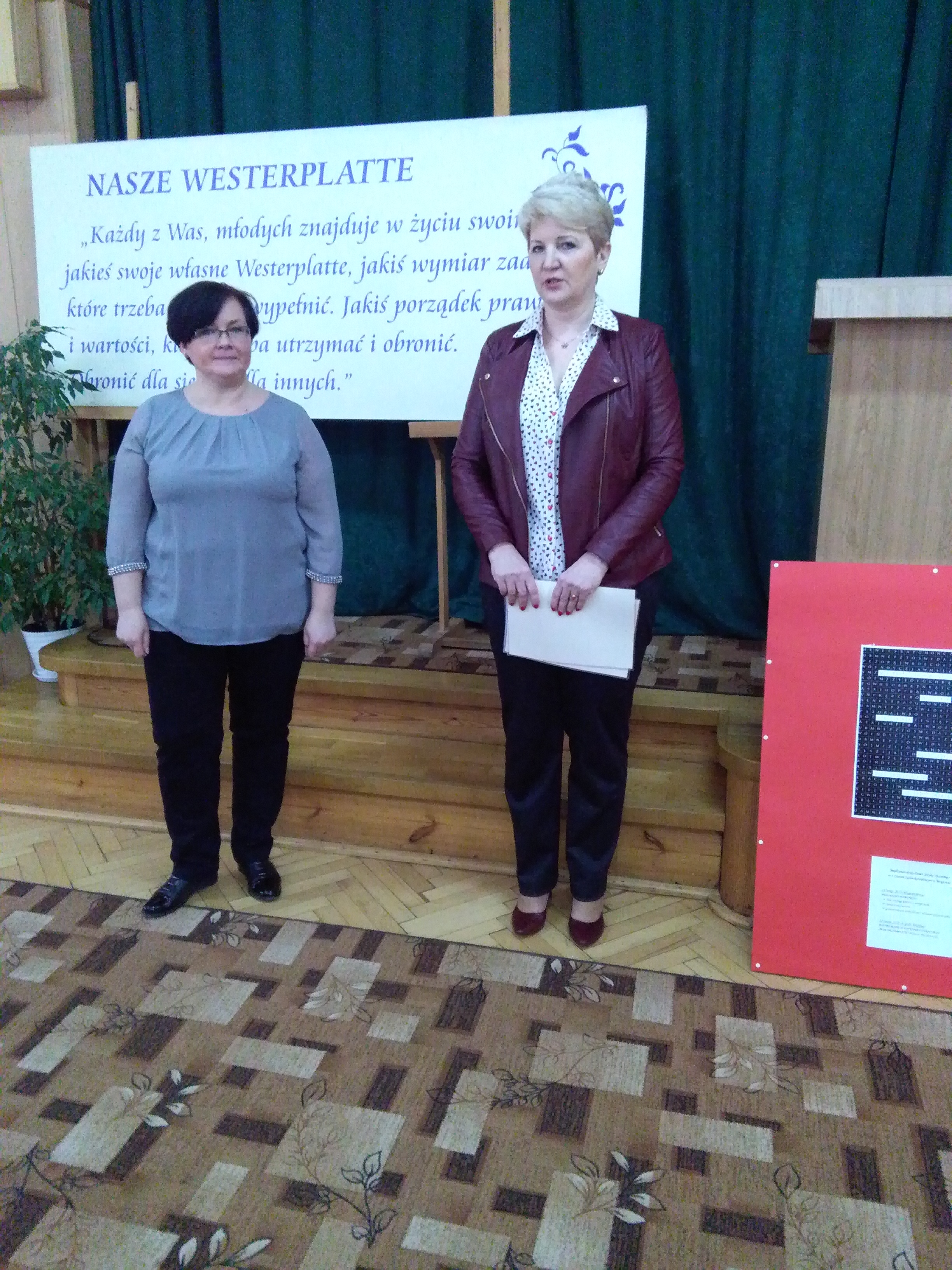 Na zakończenie, nawiązując do obchodów 100. rocznicy odzyskania przez Polskę niepodległości, Piotr Zapert wygłosił przemówienie inspirowane słowami księdza prof. J. Tischnera „ Nieszczęsny dar wolności” (?), które będzie prezentował w Katowicach, podczas ogólnopolskiego konkursu krasomówczego.