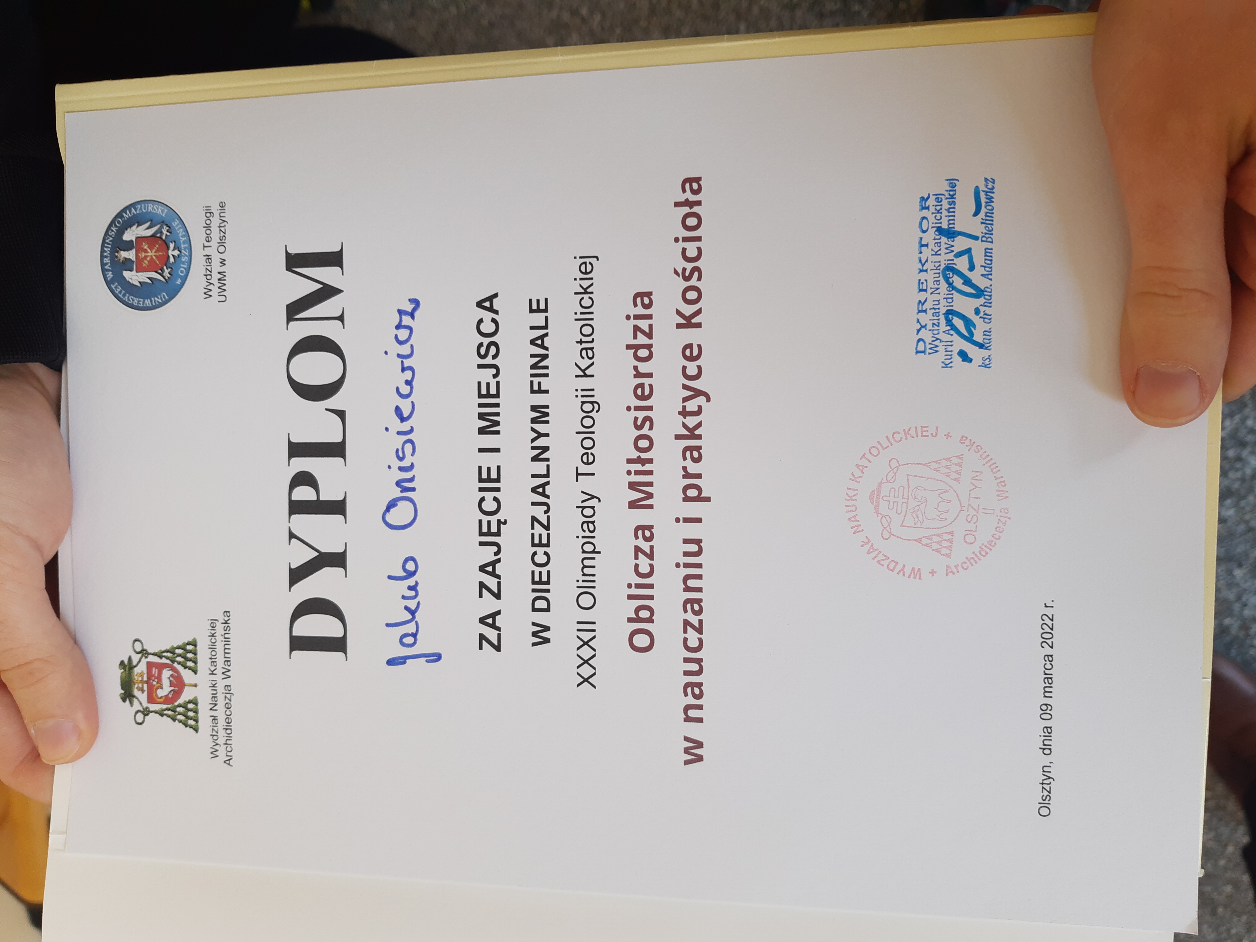 09.03.2022r. w Olsztynie odbył się drugi etap - diecezjalny XXXII Ogólnopolskiej Olimpiady Teologii Katolickiej, w której naszą szkołę reprezentowali: Jakub Onysiewicz i Eryk Walędziak z klasy IIIB.