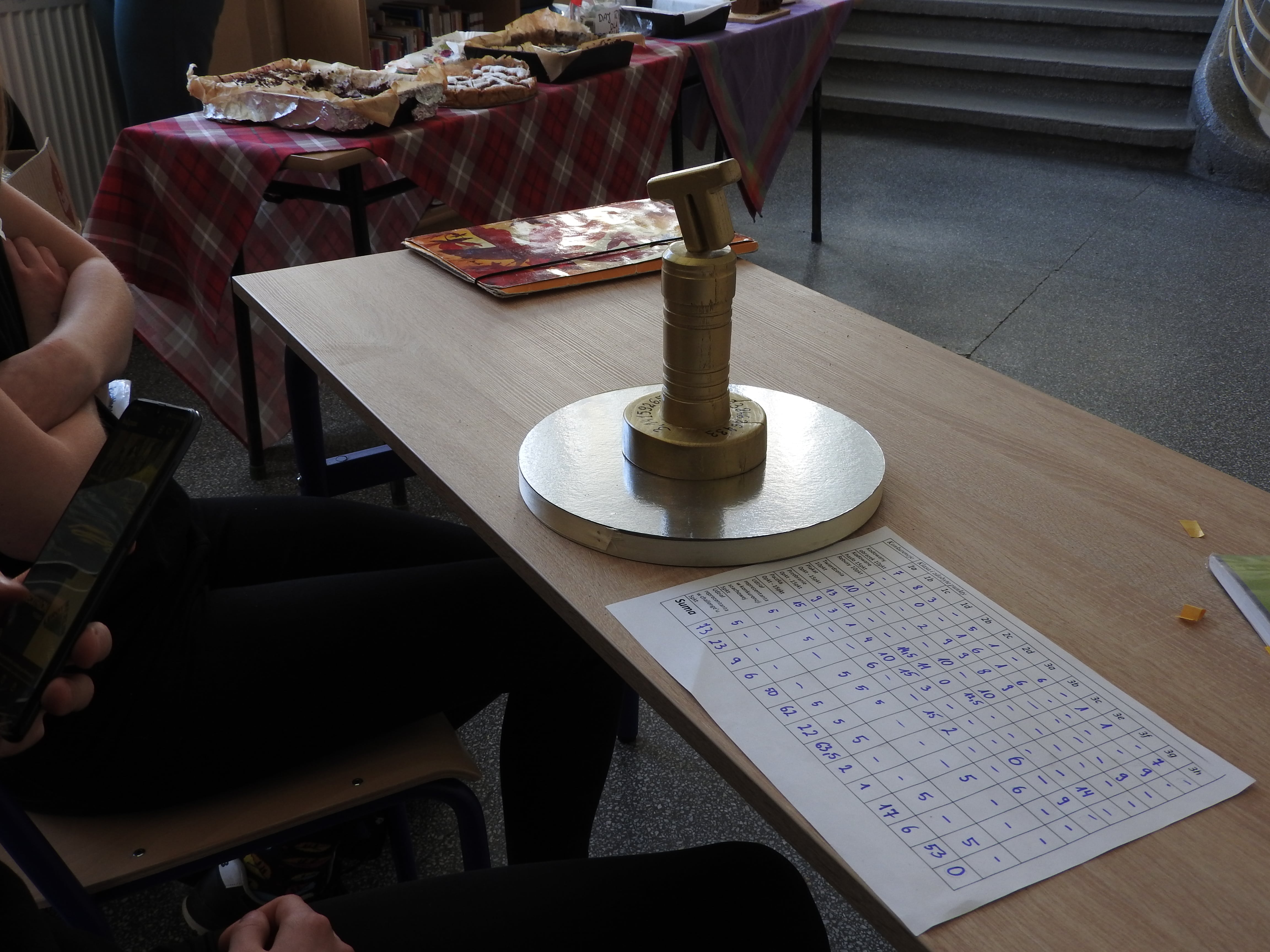 Wszystkie klasy z wielką determinacją próbowały swoich sił w każdej z konkurencji, ale zwycięzca może być tylko jeden. Organizatorzy na podstawie punktacji za poszczególne konkurencje wyłonili zwycięską drużynę - klasę 1A! Klasa otrzymała puchar - statuetkę Liczby Pi oraz obiecaną im słodkość czyli tort urodzinowy, ufundowany przez restaurację Smaki Mazur.