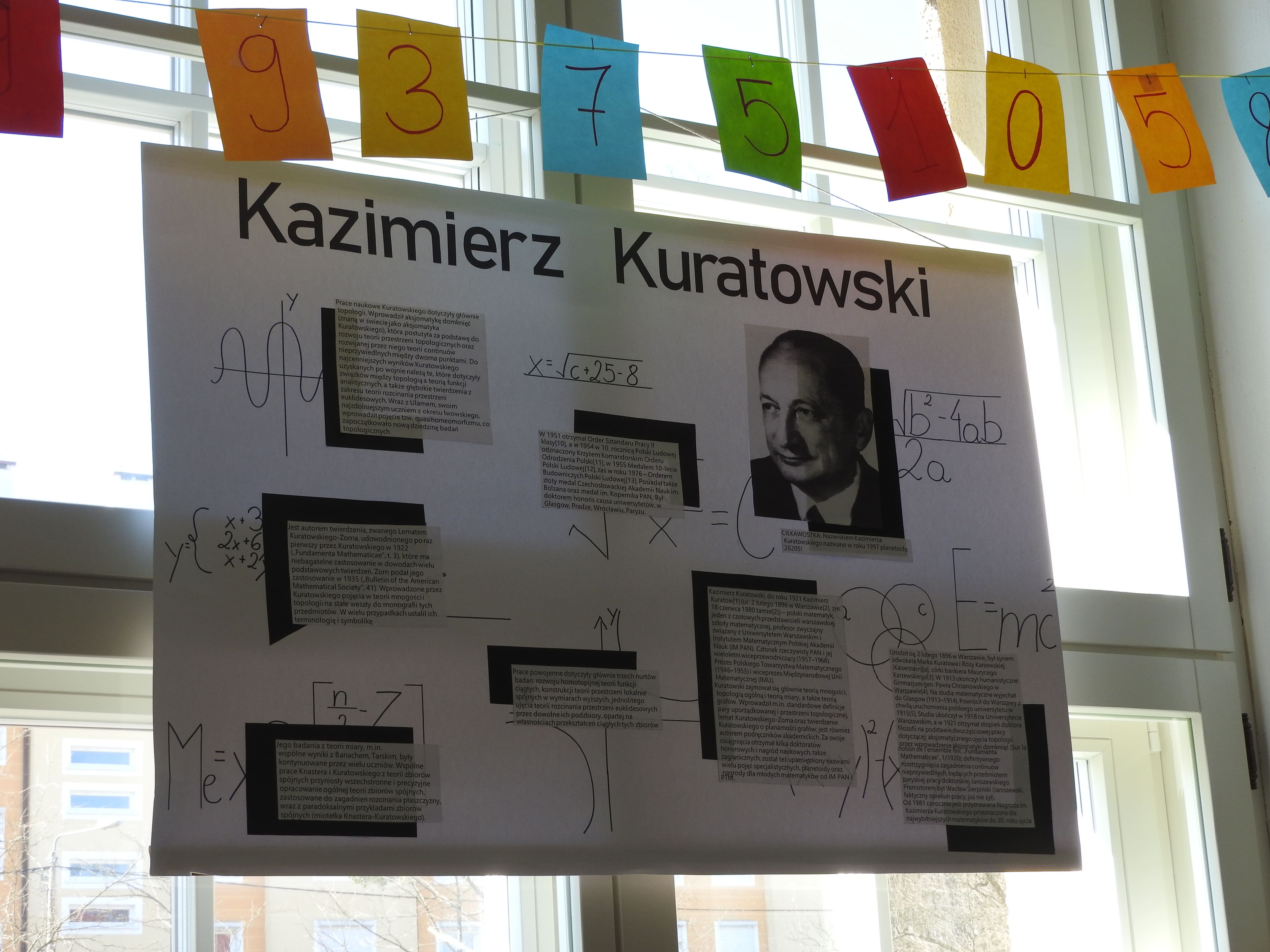 Dnia 14 marca 2022 r. w naszym liceum świętowaliśmy pod hasłem "140 urodziny SierPIńskiego" - polskiego matematyka, którego urodziny przypadają właśnie 14 marca. Wydarzenie miało na celu pokazanie, że matematyka to nie tylko liczby, wzory i trudne zadania, ale również znakomita przygoda i mnóstwo zabawy. Przygotowaniem imprezy zajęli się uczniowie klasy 2 a pod czujnym okiem p. prof. Renaty Nowotnik. Szkoła w tym dniu została ozdobiona łańcuchem rozwinięcia liczby Pi oraz plakatami pełnymi ciekawostek dotyczących słynnych polskich matematyków a wykonanych przez uczniów w ramach jedenj z konkurencji konkursowych. Na przerwach reprezentacje poszczególnych klas z ogromnym zapałem brały udział w przygotowanych dla nich konkurencjach. Uczniowie rozwiązywali różnego rodzaju łamigłówki matematyczne, rebusy, zagadki. Został również zorganizowany konkurs na zapisanie z pamięci jak największej ilości kolejnych cyfr z rozwinięcia dziesiętnego liczby Pi. Pierwsze miejsce zdobył uczeń klasy 3 a Igor Prusinowski, który zapisał ich aż 126! Na długiej przerwie odbyła się symultaniczna gra w szachy z Jubilatem, w którego wcielił się p. prof. Dariusz Borys. W tej konkurencji najlepszy okazał się Dawid Nadolny z klasy III e.