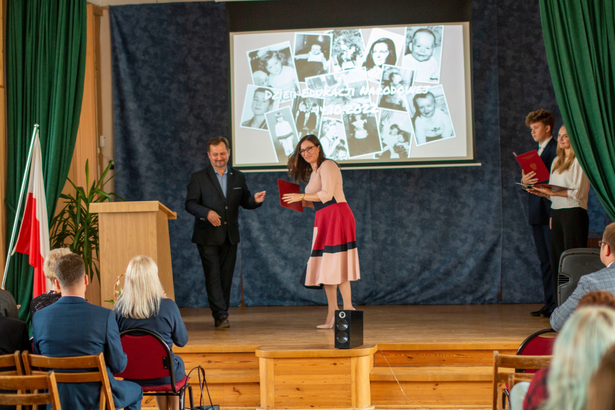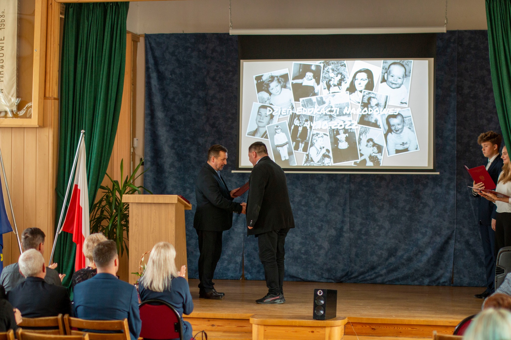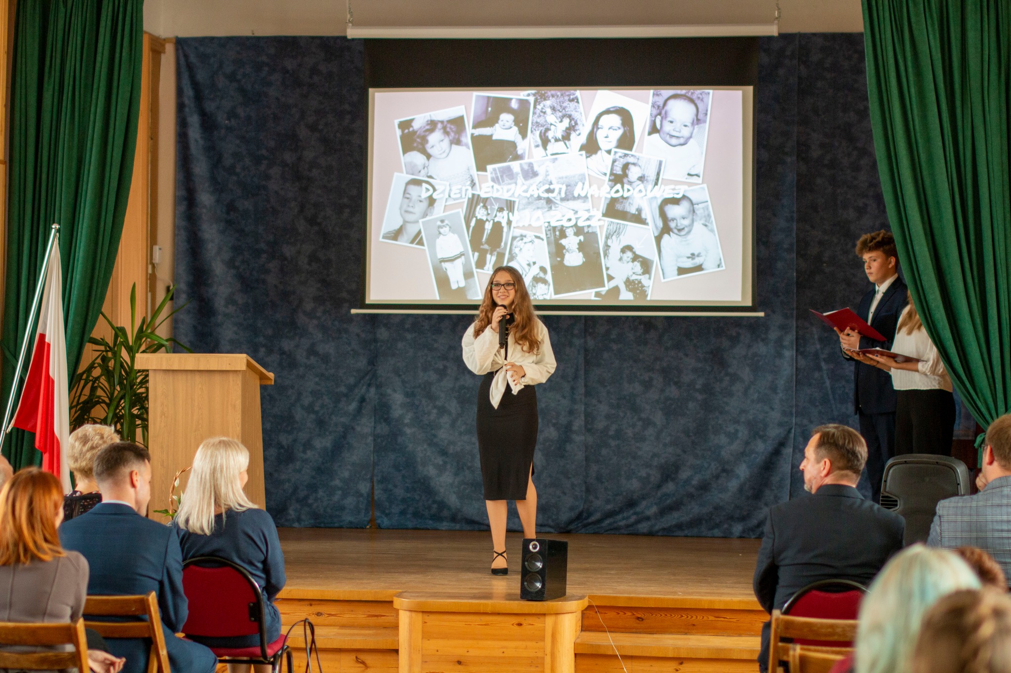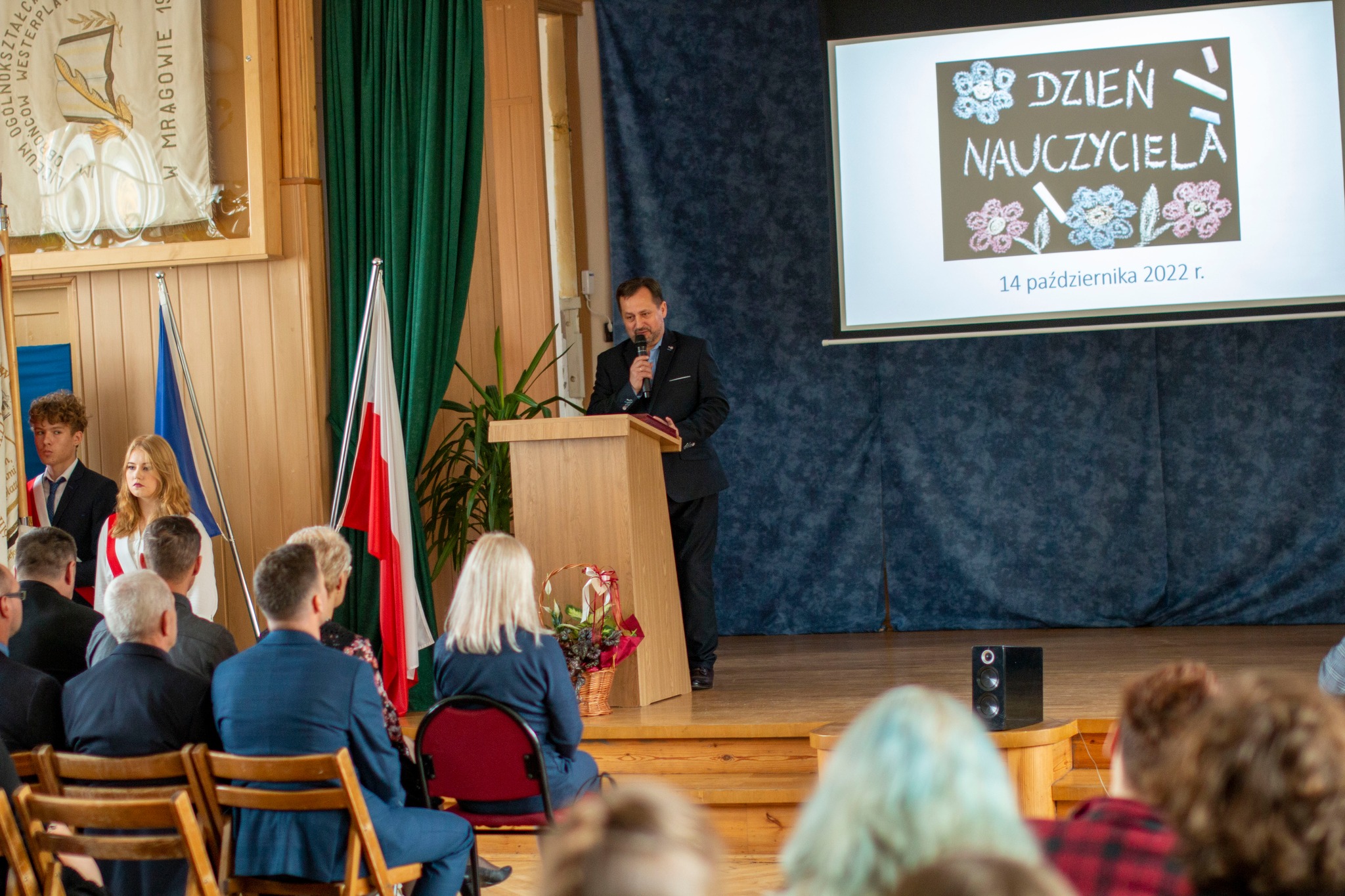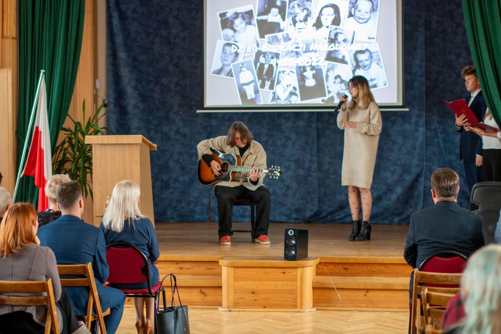 W czasie oficjalnej uroczystości usłyszeliśmy życzenia od naszych gości. Pan Dyrektor wręczył wybranym nauczycielom nagrody za wyróżniającą się pracę. Przedstawiciele Samorządu Uczniowskiego również powiedzieli kilka słów od siebie a nasi szkolni artyści przygotowali przerywnik muzyczny z dedykacjami dla wybranych nauczycieli.