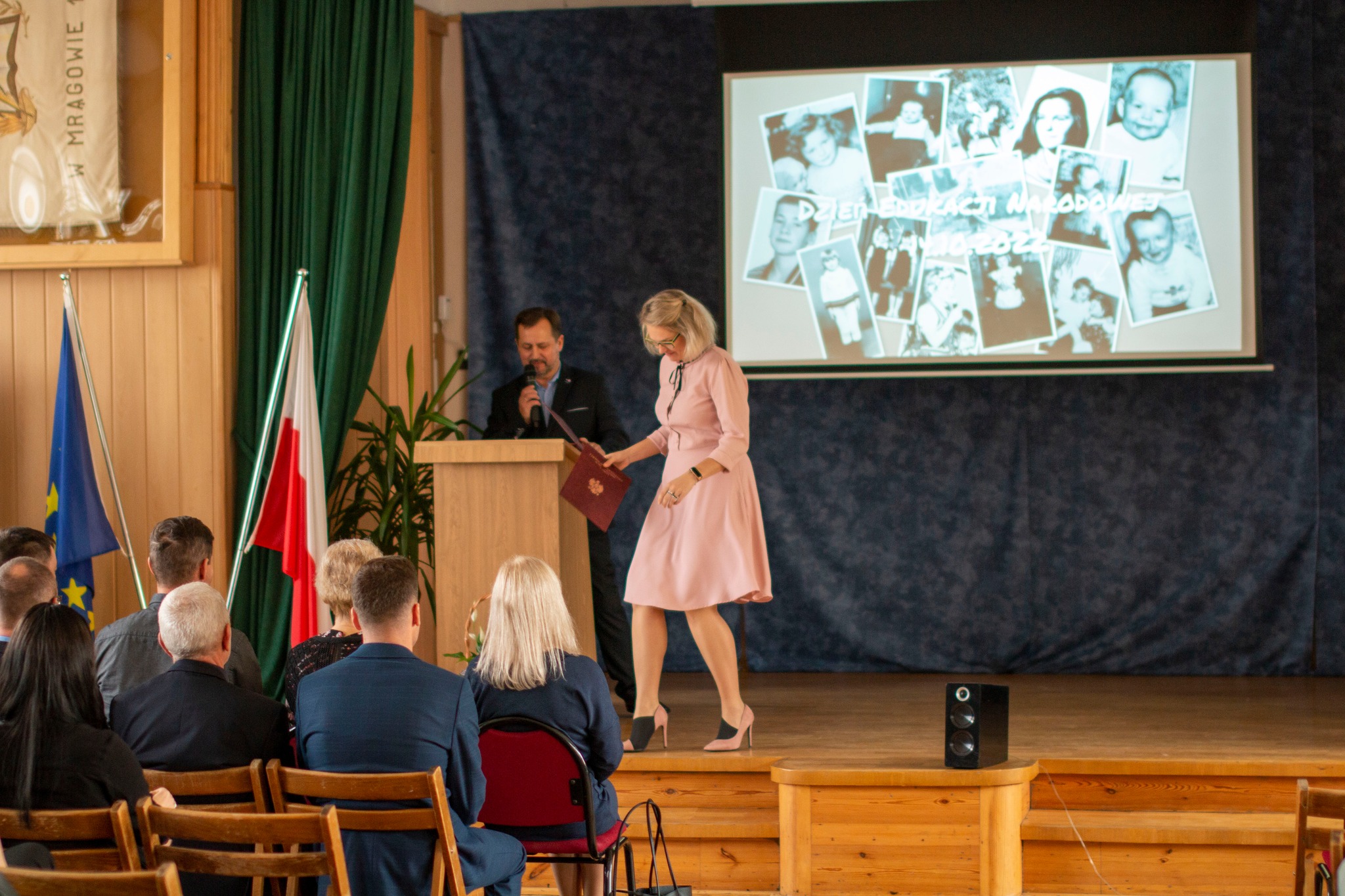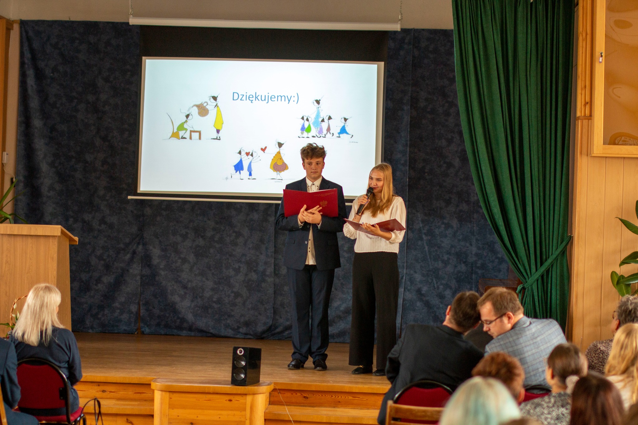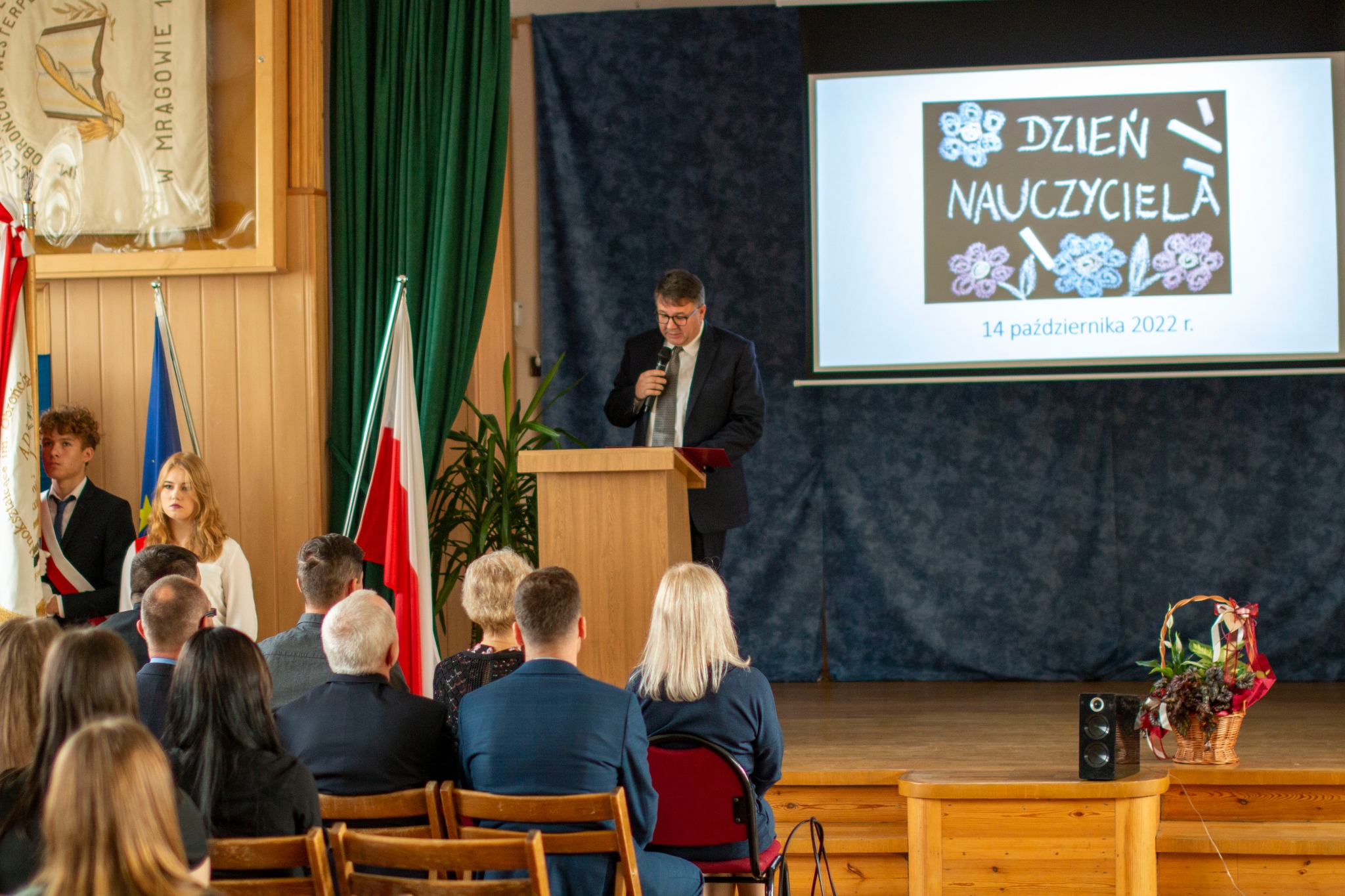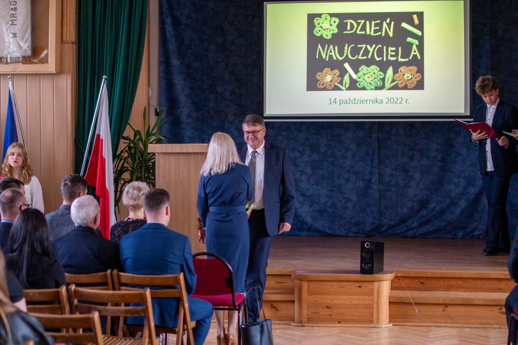 W czasie oficjalnej uroczystości usłyszeliśmy życzenia od naszych gości. Pan Dyrektor wręczył wybranym nauczycielom nagrody za wyróżniającą się pracę. Przedstawiciele Samorządu Uczniowskiego również powiedzieli kilka słów od siebie a nasi szkolni artyści przygotowali przerywnik muzyczny z dedykacjami dla wybranych nauczycieli.