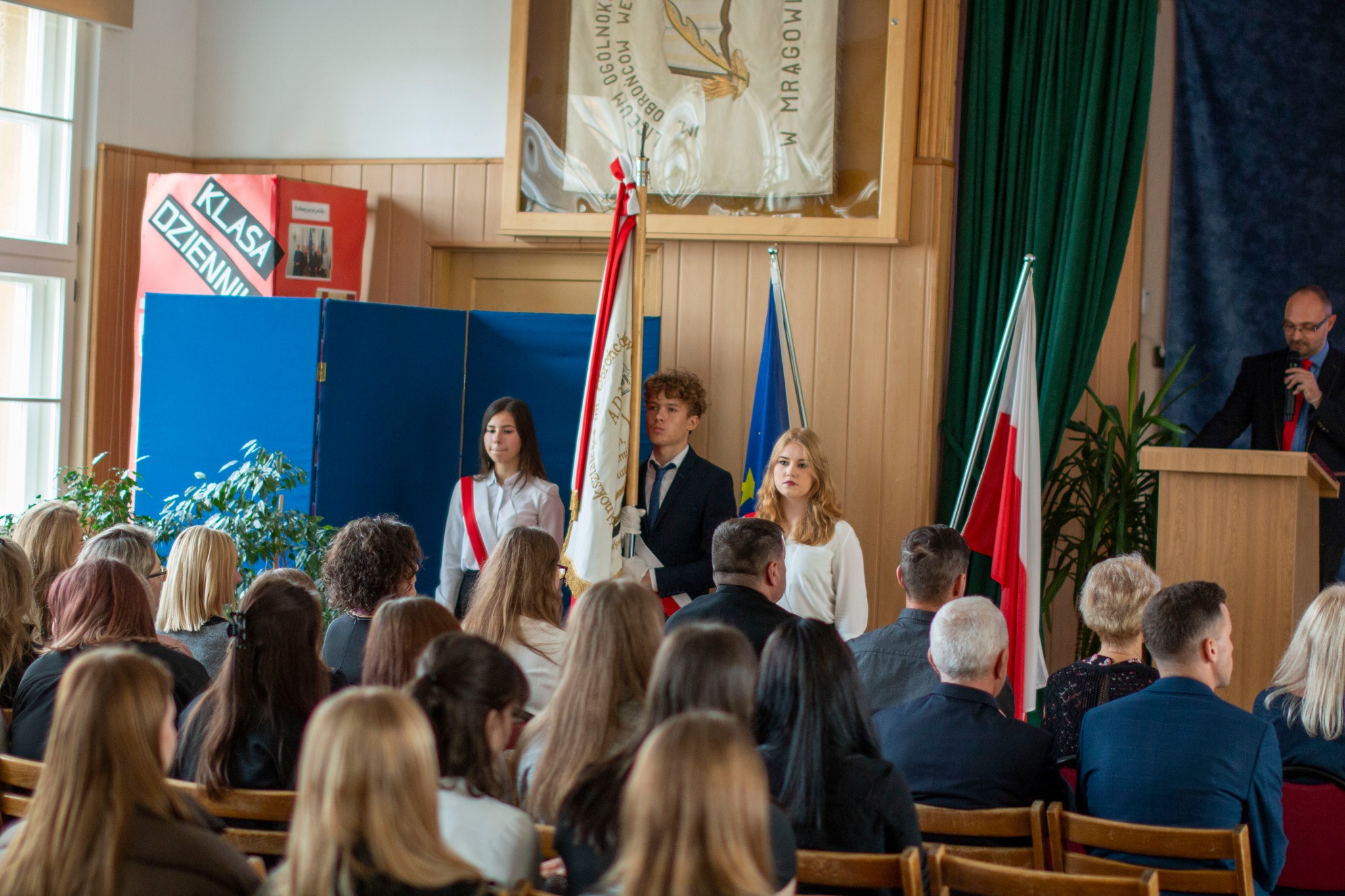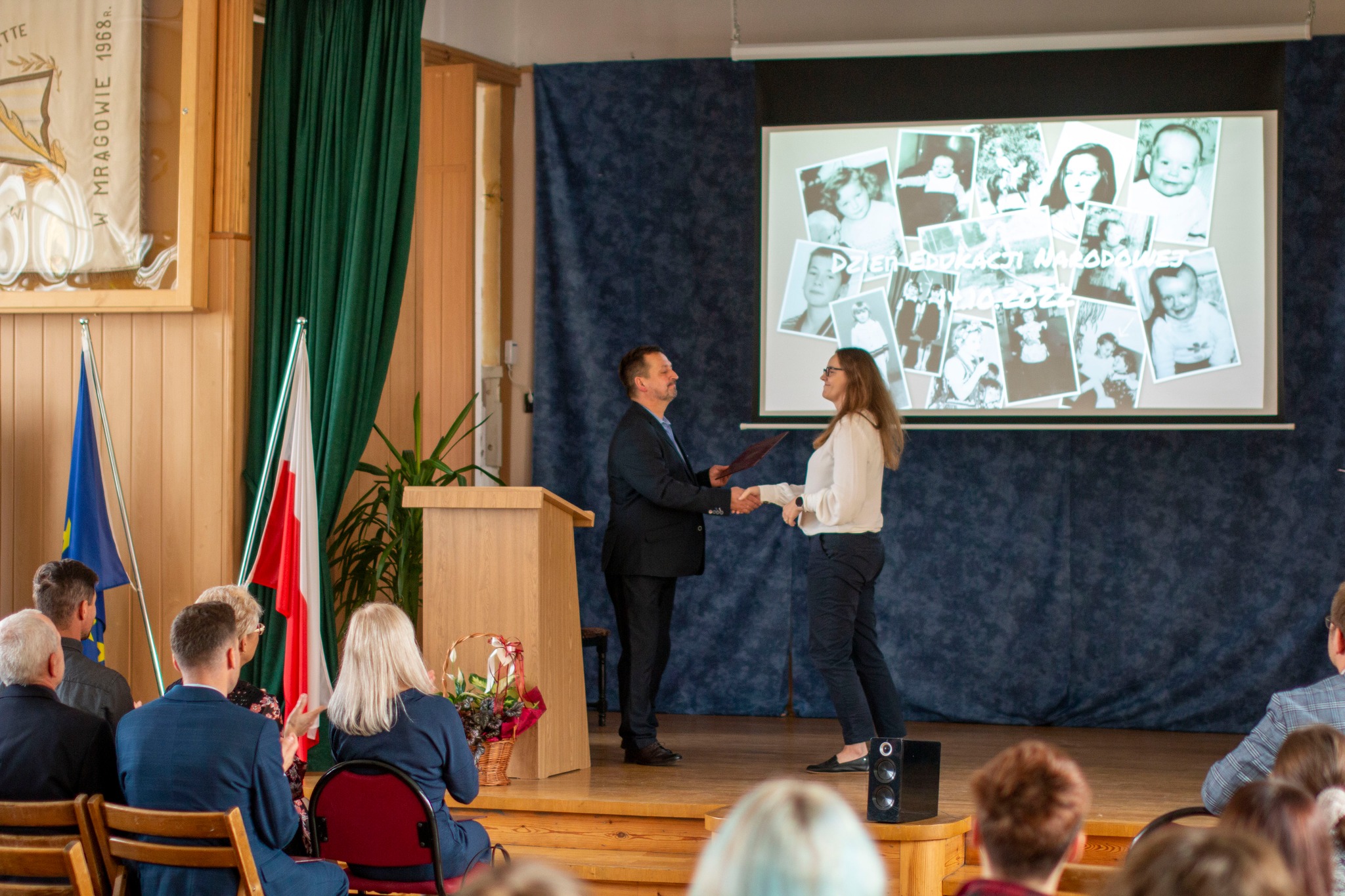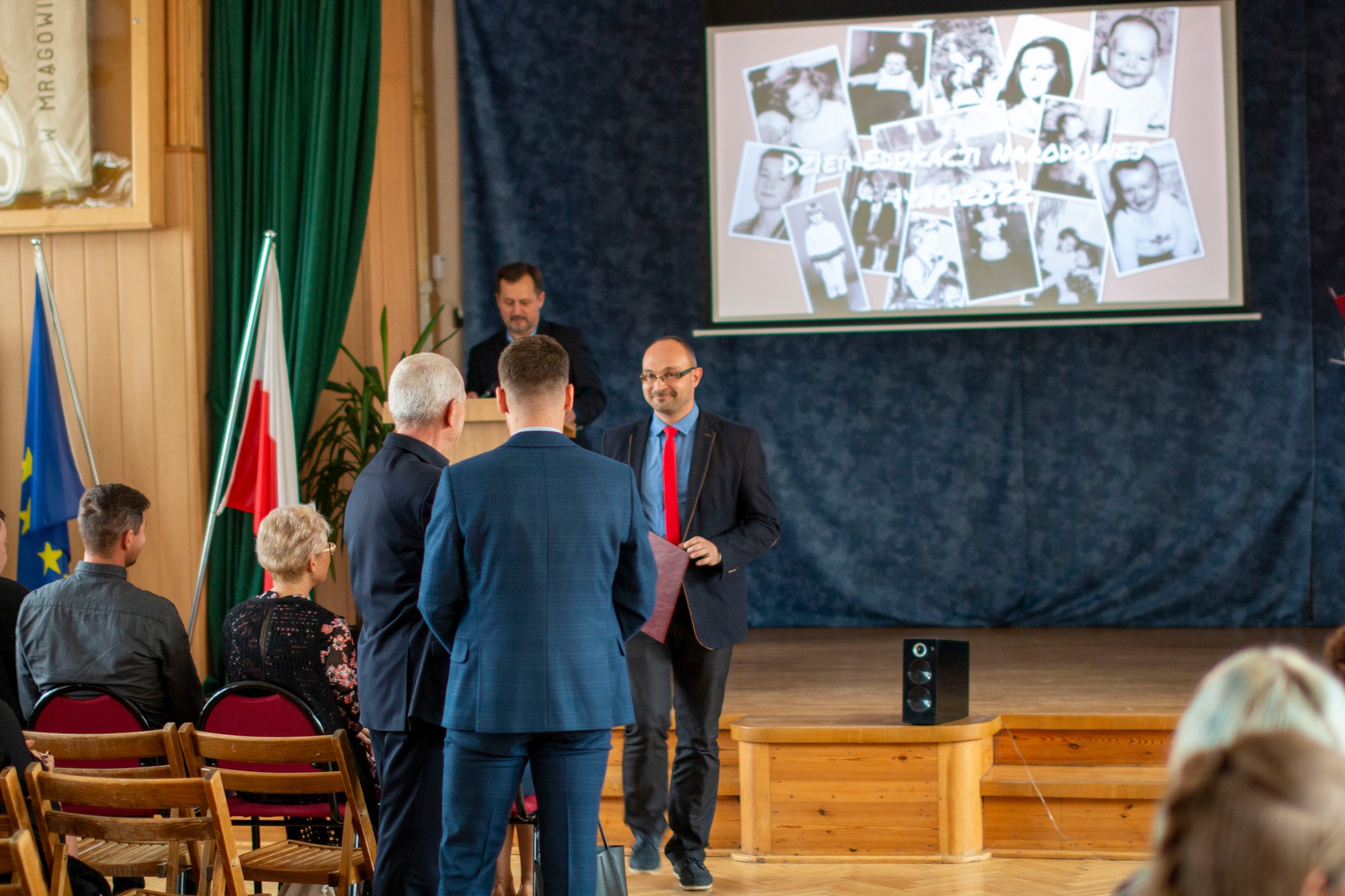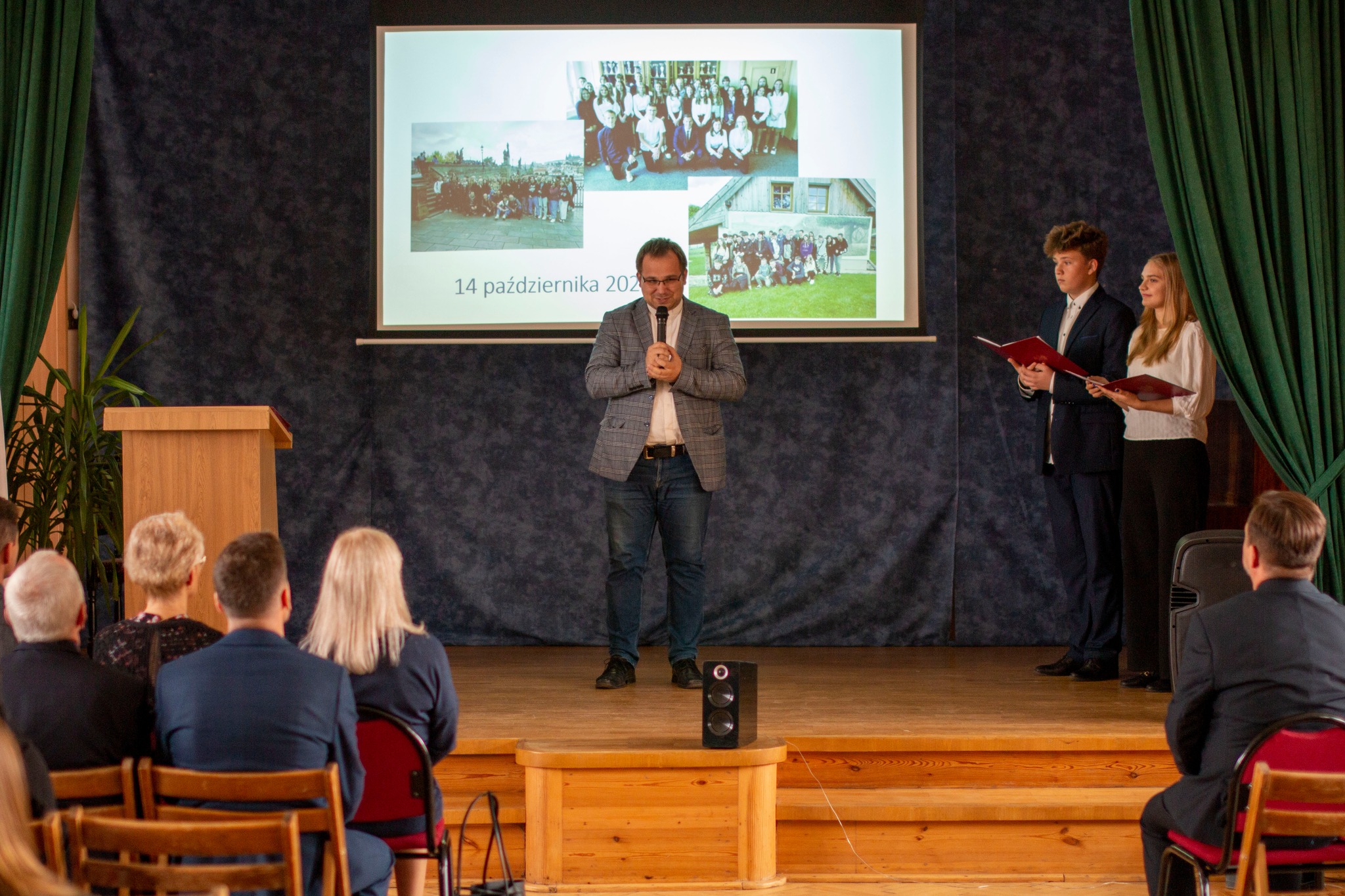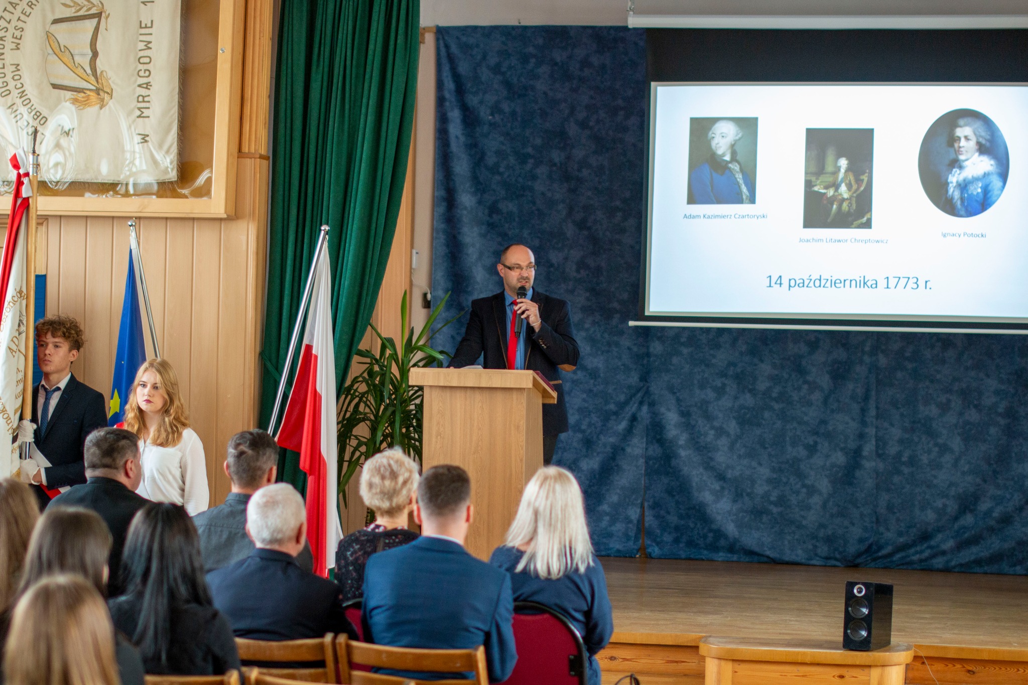 W czasie oficjalnej uroczystości usłyszeliśmy życzenia od naszych gości. Pan Dyrektor wręczył wybranym nauczycielom nagrody za wyróżniającą się pracę. Przedstawiciele Samorządu Uczniowskiego również powiedzieli kilka słów od siebie a nasi szkolni artyści przygotowali przerywnik muzyczny z dedykacjami dla wybranych nauczycieli.