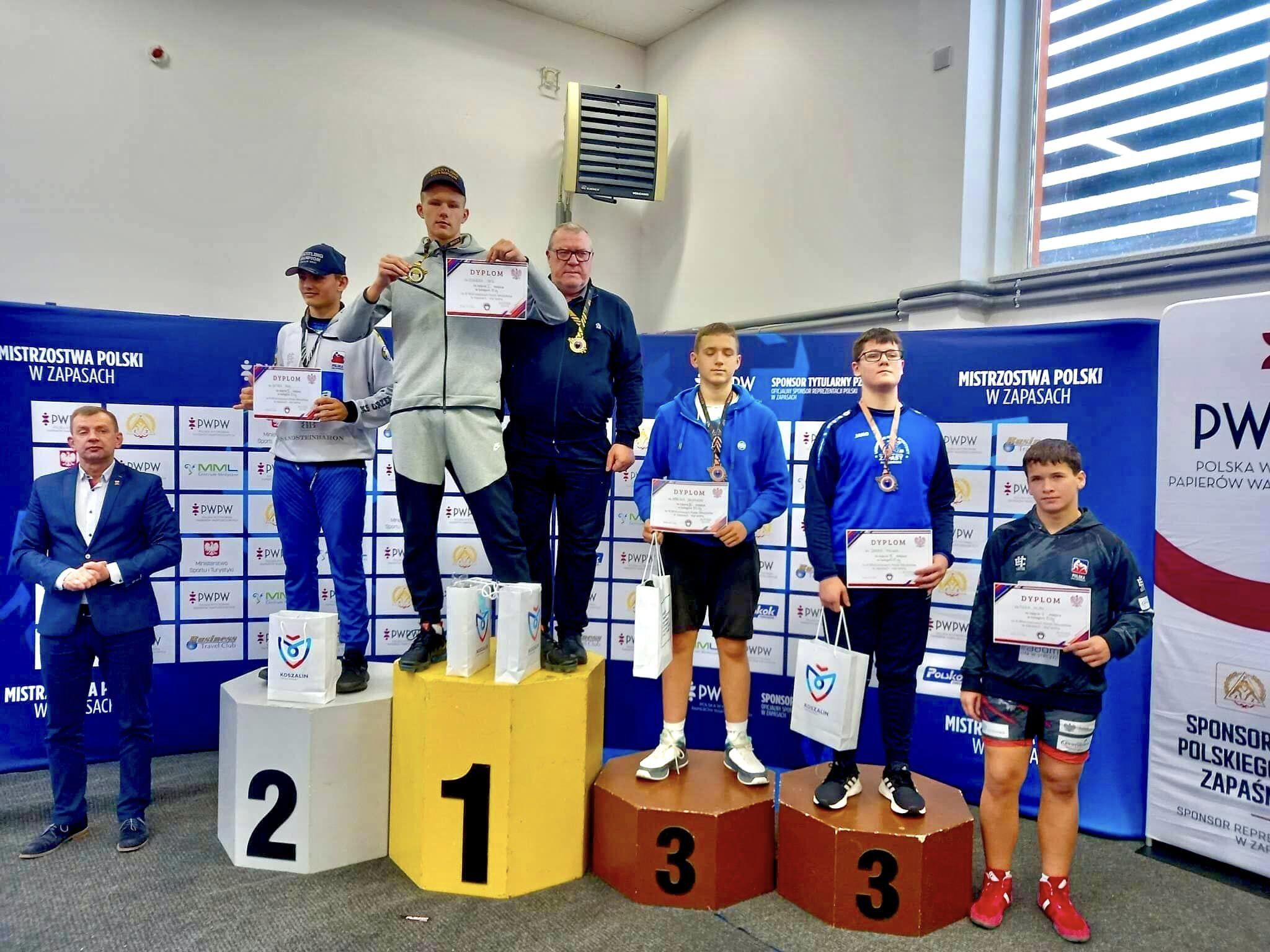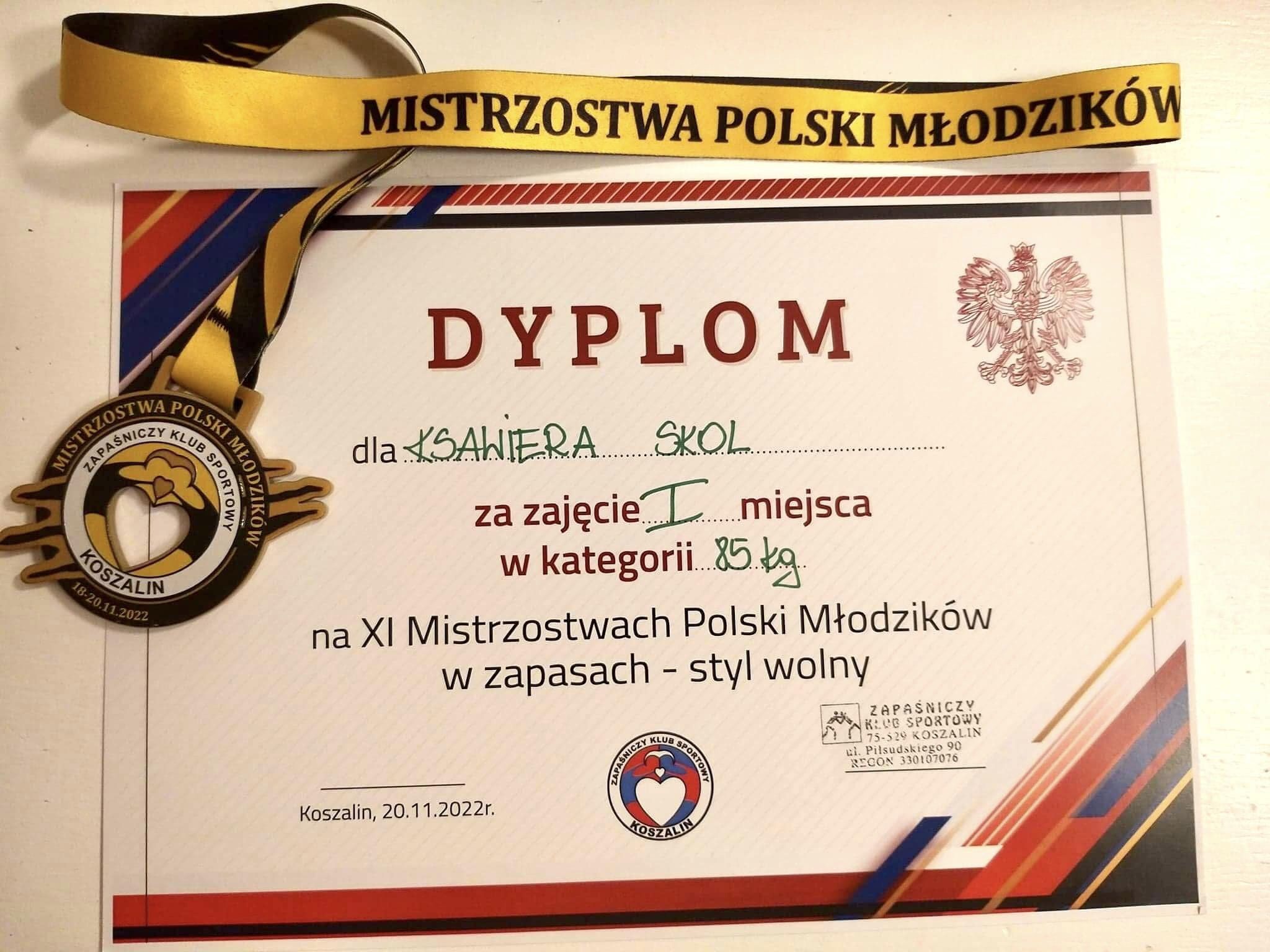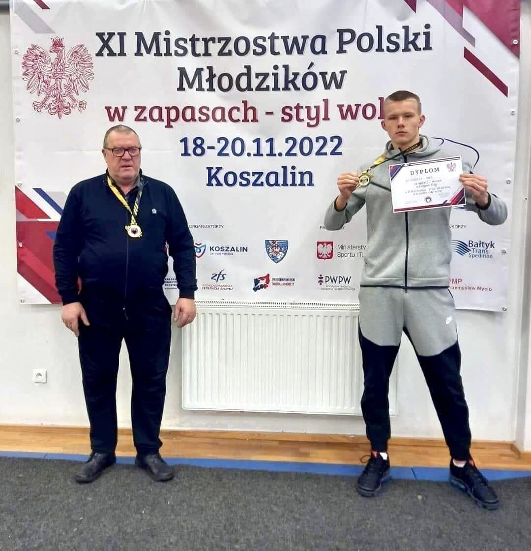 W dniach 18-20.11.2022r. w Koszalinie odbyły się Mistrzostwa Polski Młodzików w zapasach stylu wolnym. Po bardzo ciężkich walkach w kategorii 85 kg zdobyłem złoty medal i zostałem mistrzem Polski.