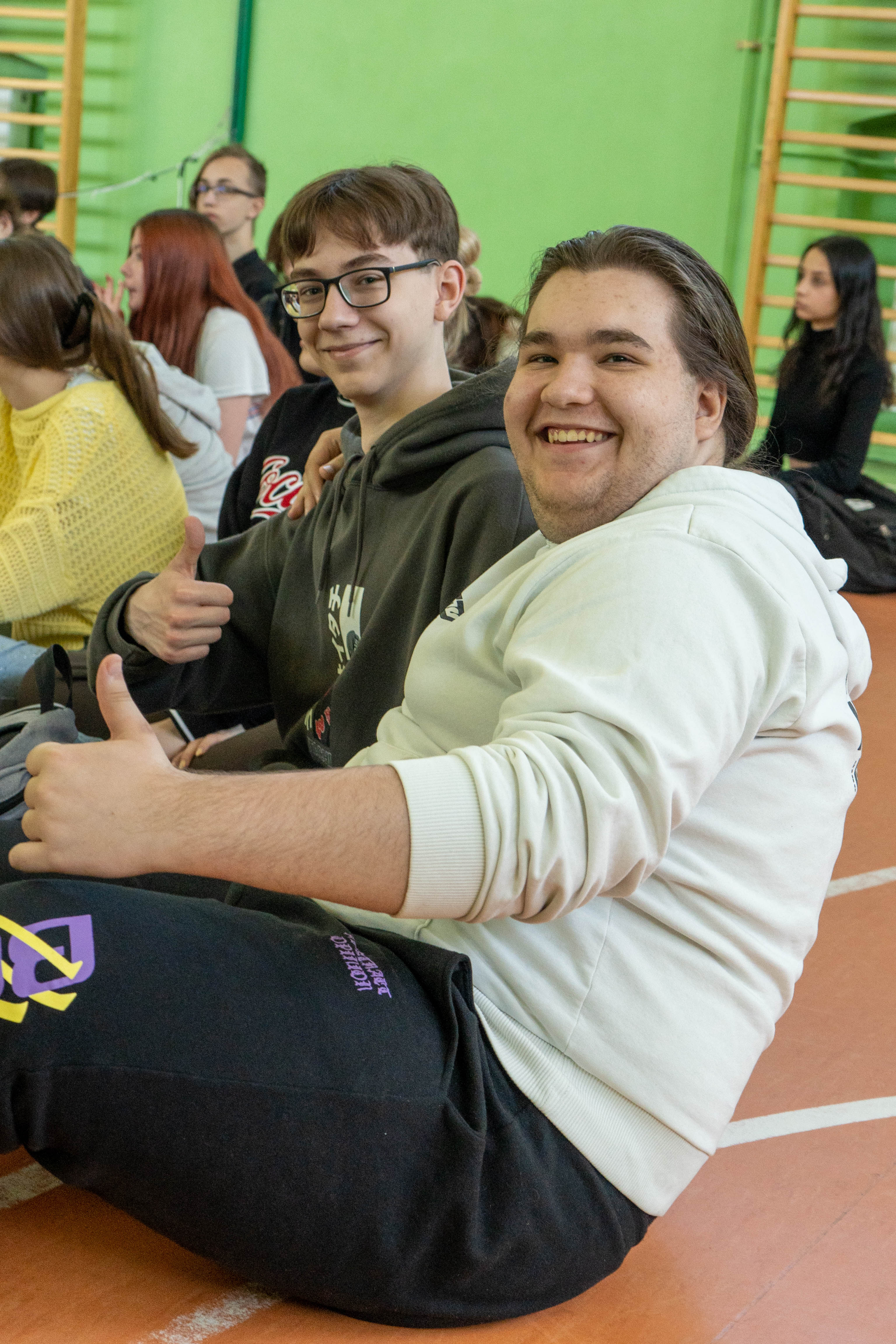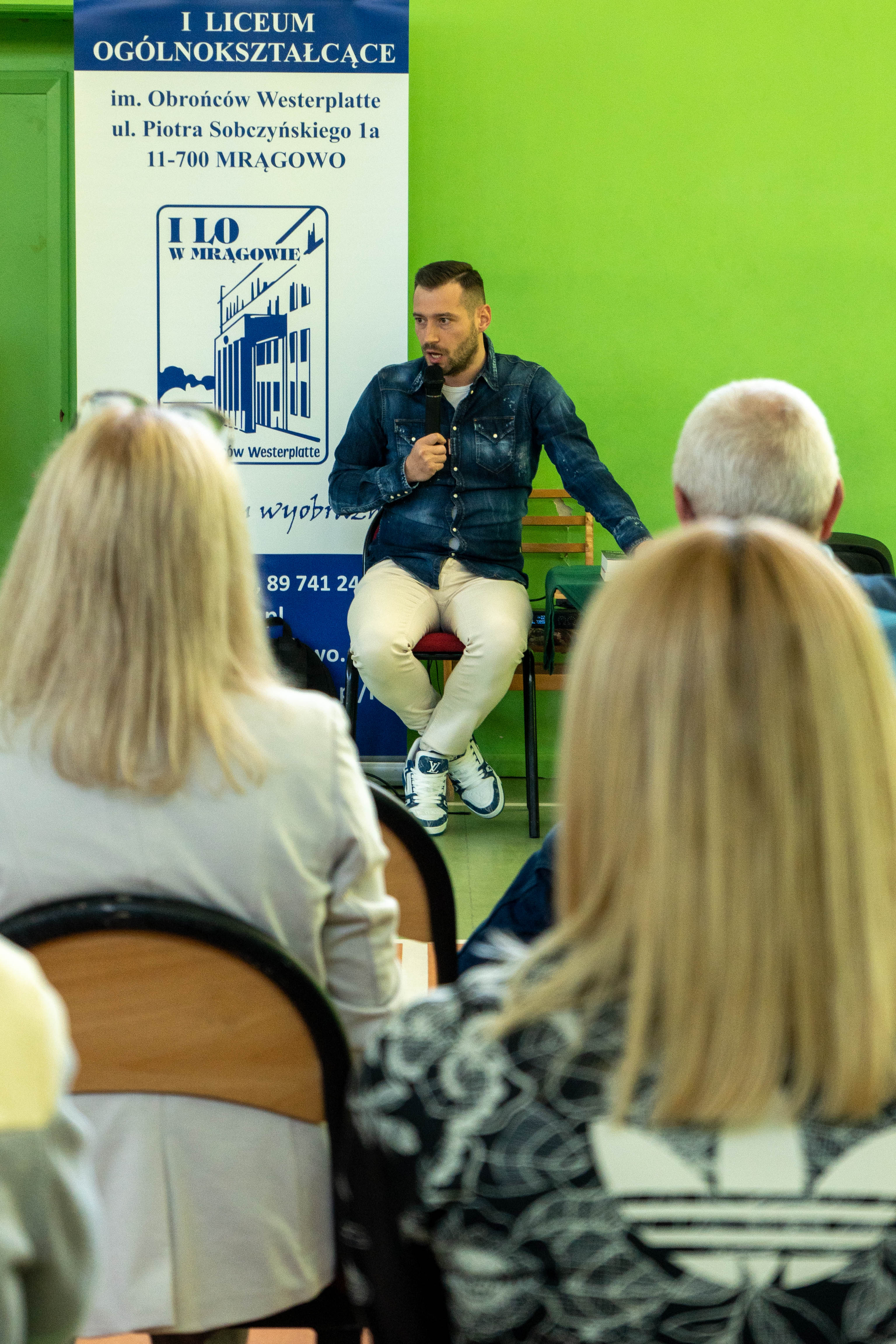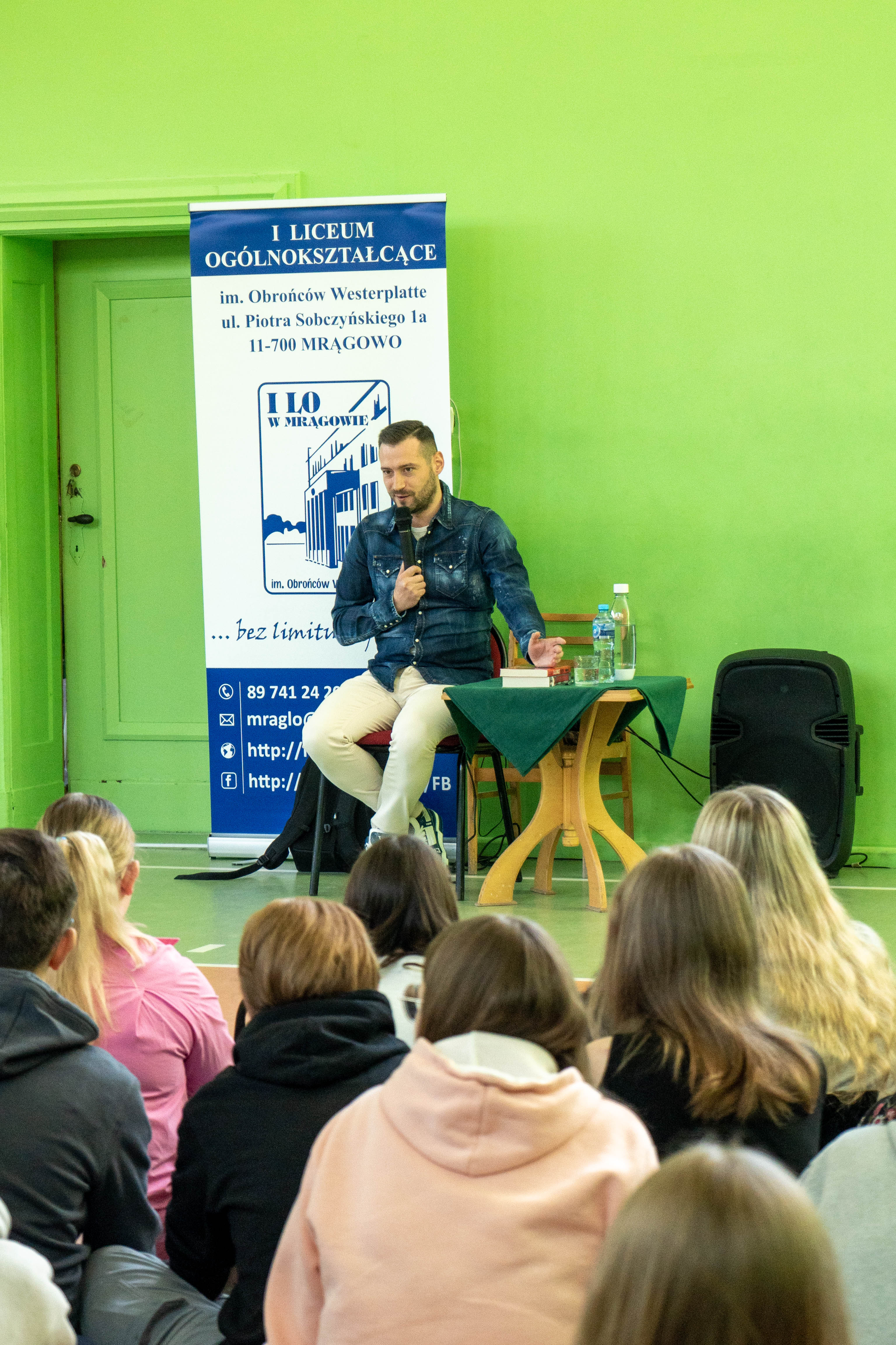 Gość wspominał w jego trakcie barwne szkolne czasy i nauczycieli, którzy go uczyli. Przede wszystkim jednak pokazywał młodzieży, jak ważne jest w życiu realizowanie pasji. Sam jest zresztą tego żywym przykładem. W jego przypadku pasja zaowocowała dwiema książkami: „ Tajemnice kadry” i „ Peszkografia”, scenariuszami dwóch filmów: "Druga połowa" i "Wygrać marzenia" oraz dziesiątkami wywiadów z największymi gwiazdami futbolu. Swoje książki Sebastian zaprezentował uczniom. Dwóch z nich, zadających najciekawsze pytania, otrzymało je z dedykacją gościa.