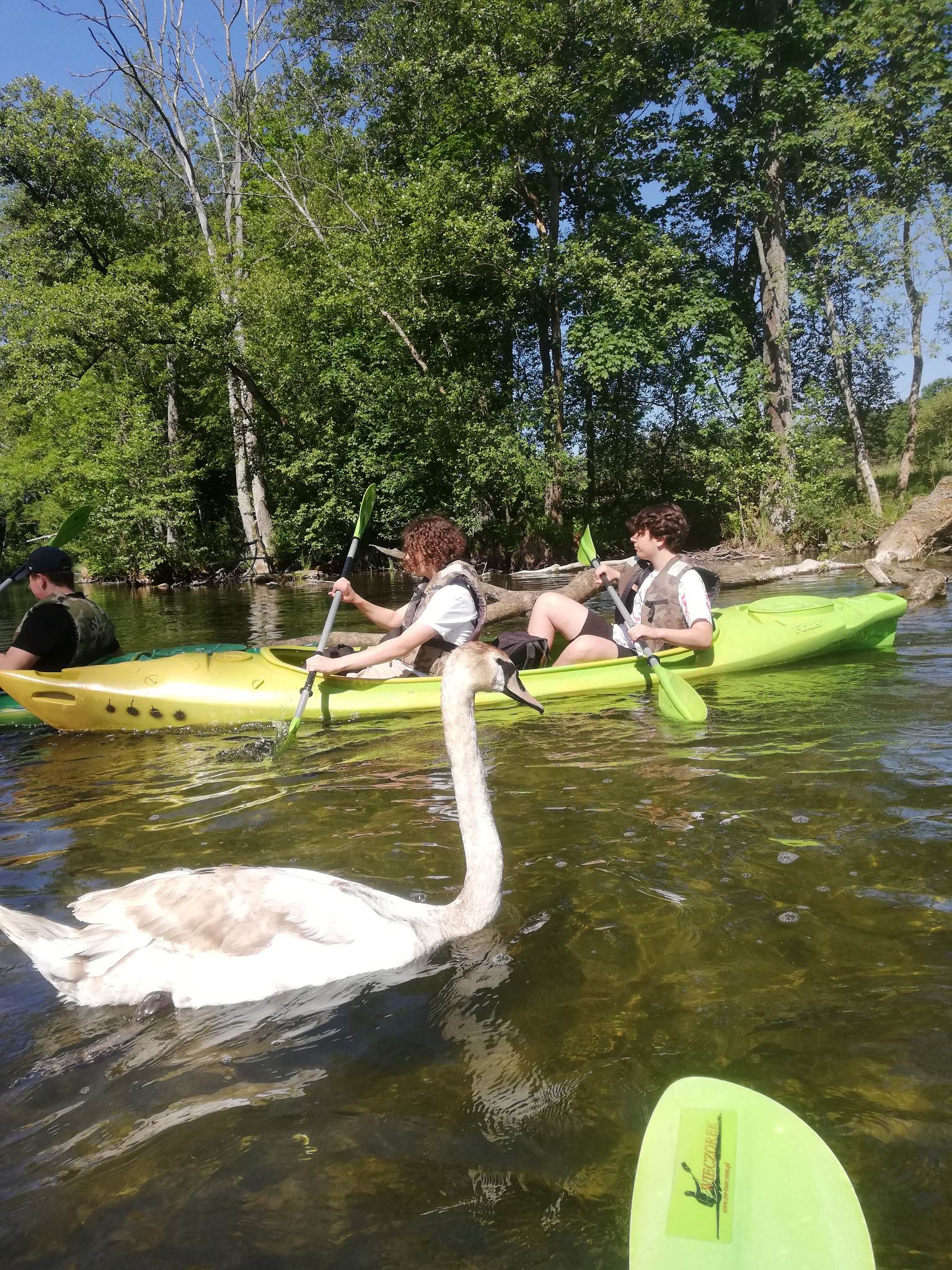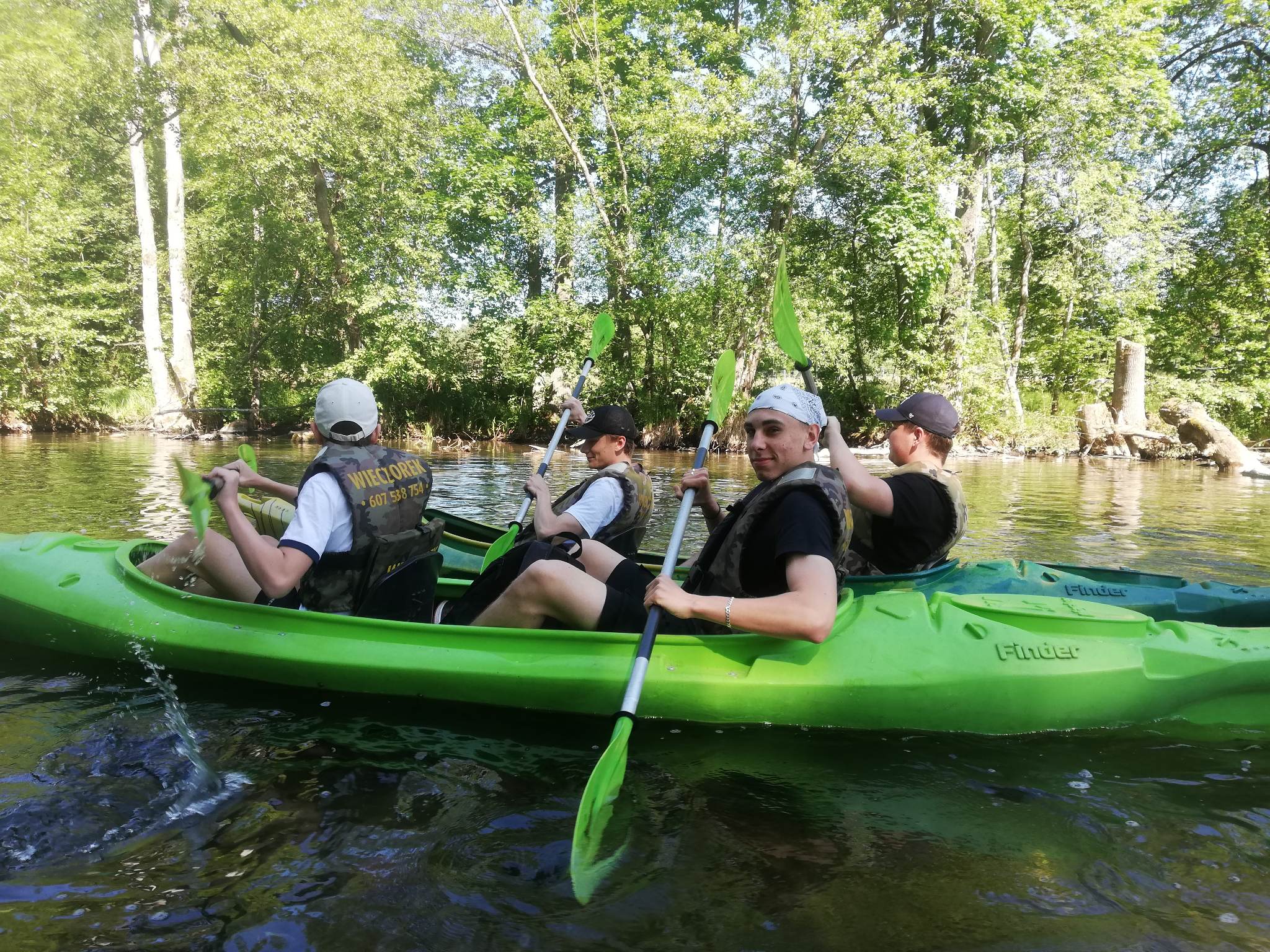 Lato tuż, tuż. Koniec roku szkolnego również, więc klasa 1a pod opieką wychowawczyni p. Katarzyny Galińskiej i p. profesor Karoliny Kodź –Wichowskiej postanowiła wykorzystać piękną pogodę i nadmiar energii i wyruszyć malowniczą rzeką Krutynią na poszukiwanie przygody. Do kajaków wsiedliśmy w Krutyni zaraz za mostem, gdzie czekał na nas sprzęt przygotowany przez p. Wieczorka i dwóch silnych ratowników ratownictwa wodnego.