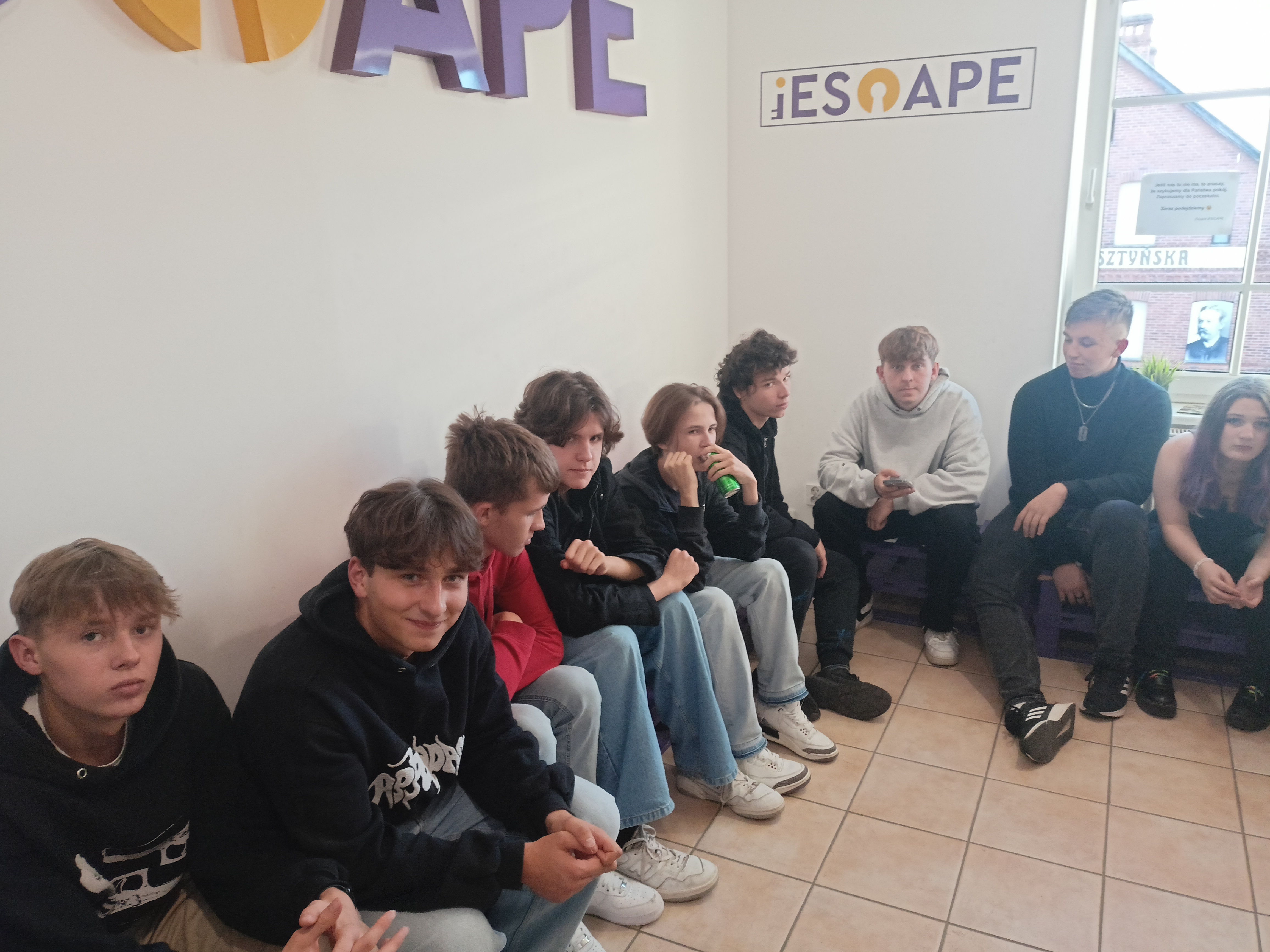 W drodze powrotnej, razem z opiekunami (p. Anną Wirtt, p. Jackiem Lewkowiczem i p. Mateuszem Przybysz) wzięli również udział w grach przygotowanych przez iEscape w Olsztynie. Wszystkim udało się przetrwać wyzwania w strasznych i nieco bardziej wesołych pokojach zagadek.