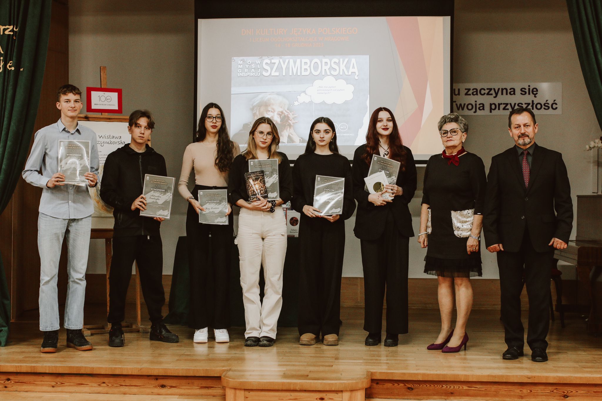 Wszystkim ostatnim wydarzeniom towarzyszyła wystawa pt. „W drogę z Szymborską”. Plakaty z fragmentami wierszy stanowiły zaproszenie do świata poezji Noblistki, inspirowania się jej tekstami we własnych poszukiwaniach – artystycznych czy filozoficznych. Wielu uczniów skorzystało z tego zaproszenia, biorąc udział w różnych konkursach związanych z twórczością Poetki. Uroczyste podsumowanie Dni Kultury Języka Polskiego miało miejsce w poniedziałek. Uczestniczyła w nim Pani Starosta Barbara Kuźmicka – Rogala. Nagrody zostały ufundowane przez Starostwo Powiatowe w Mrągowie i Radę Rodziców I LO.
