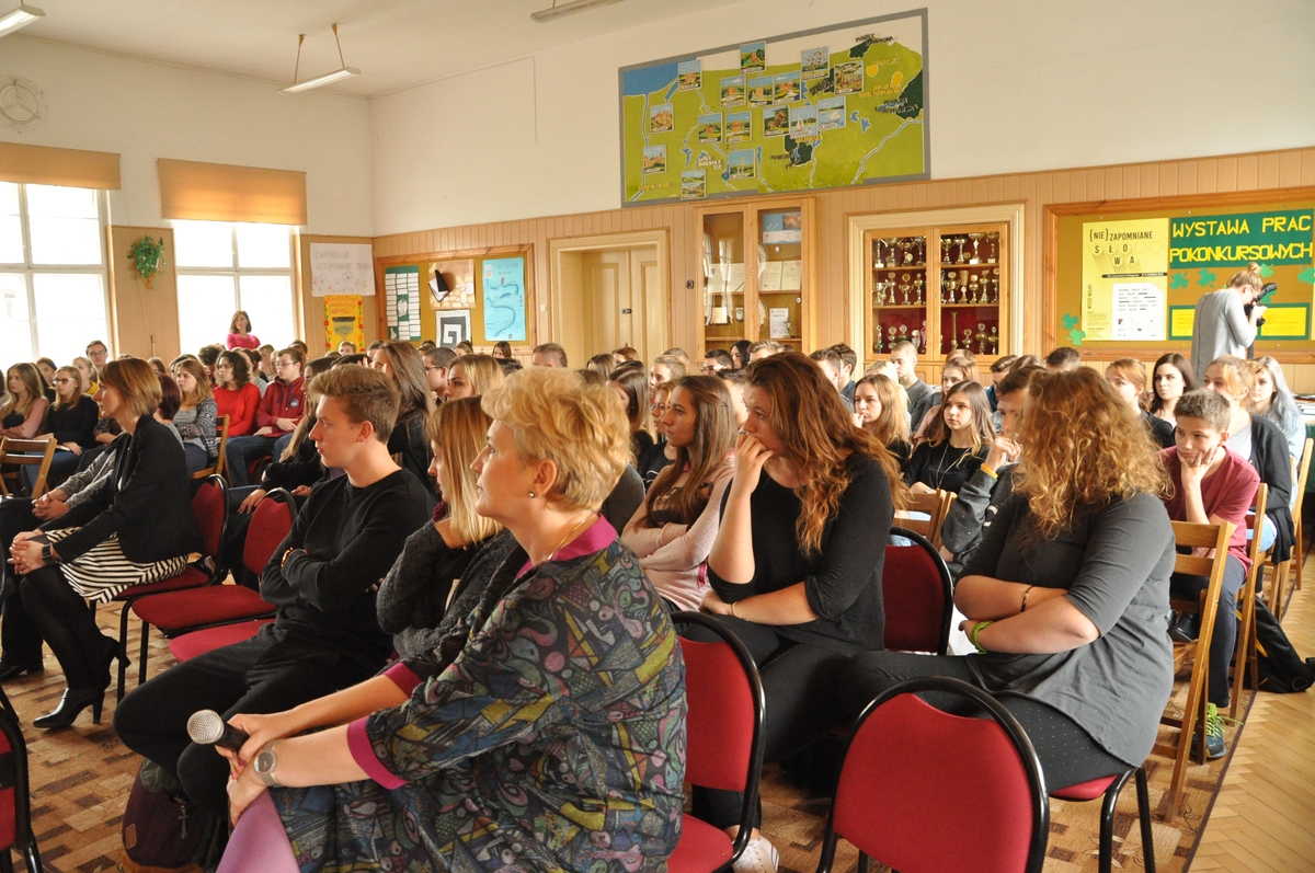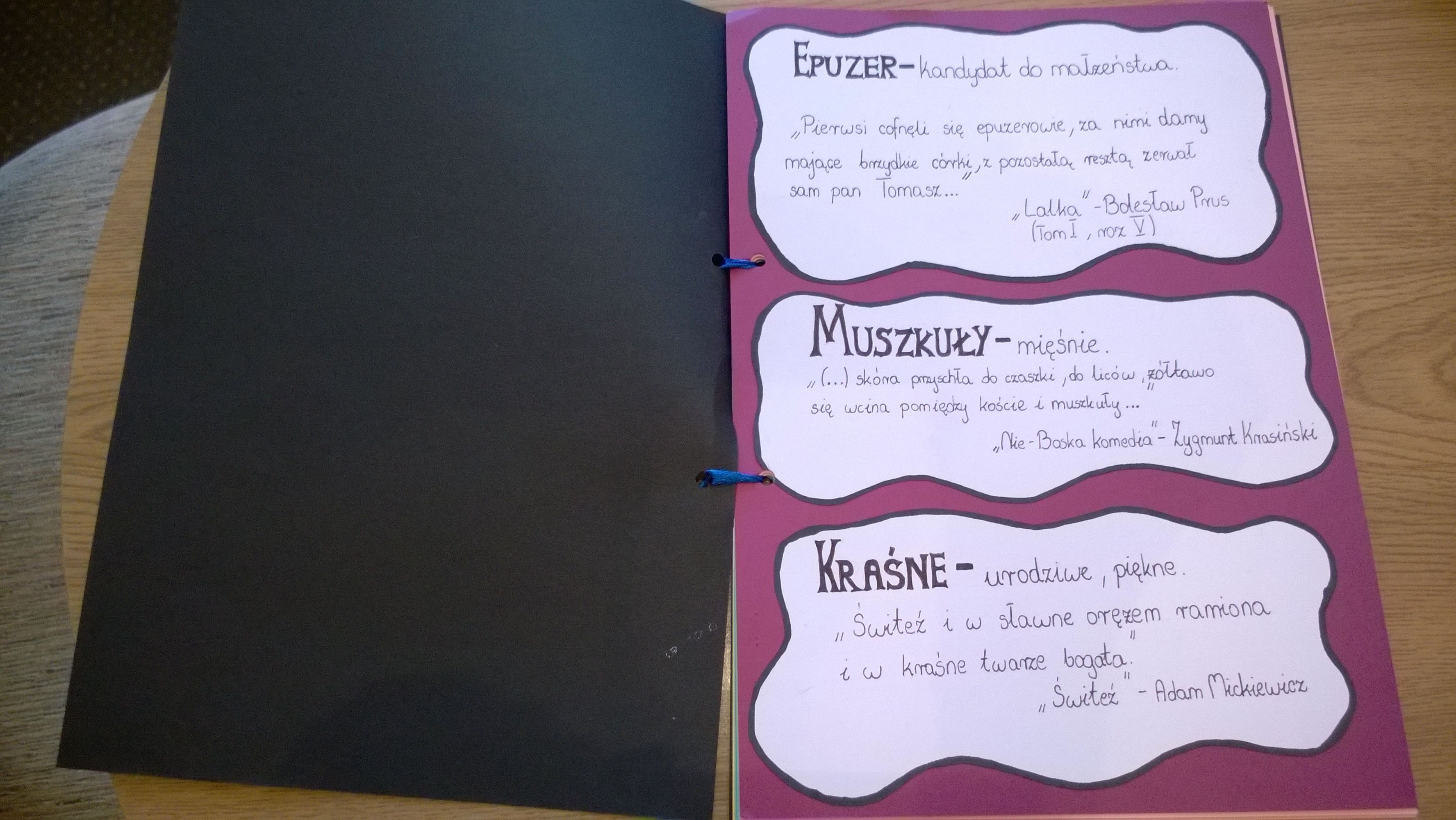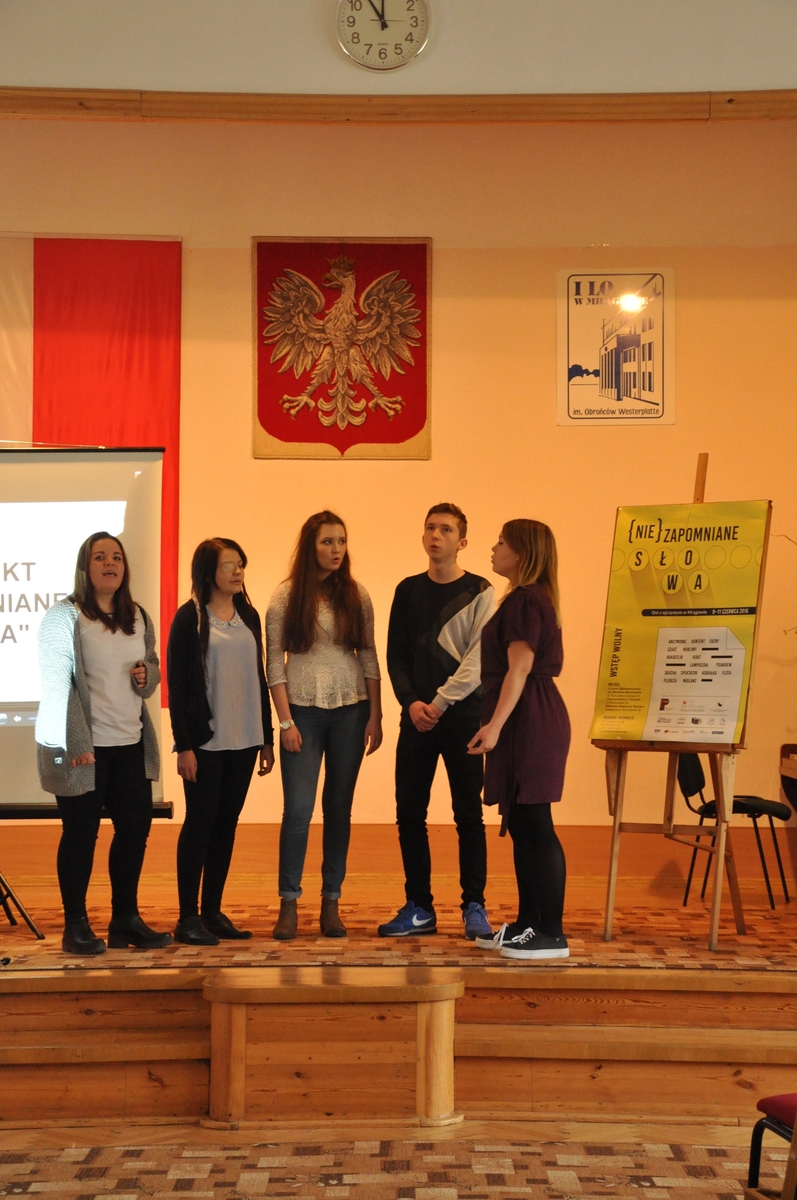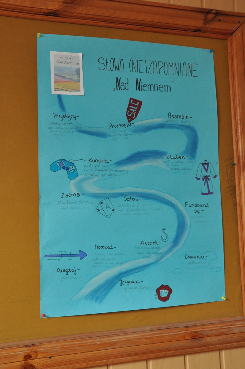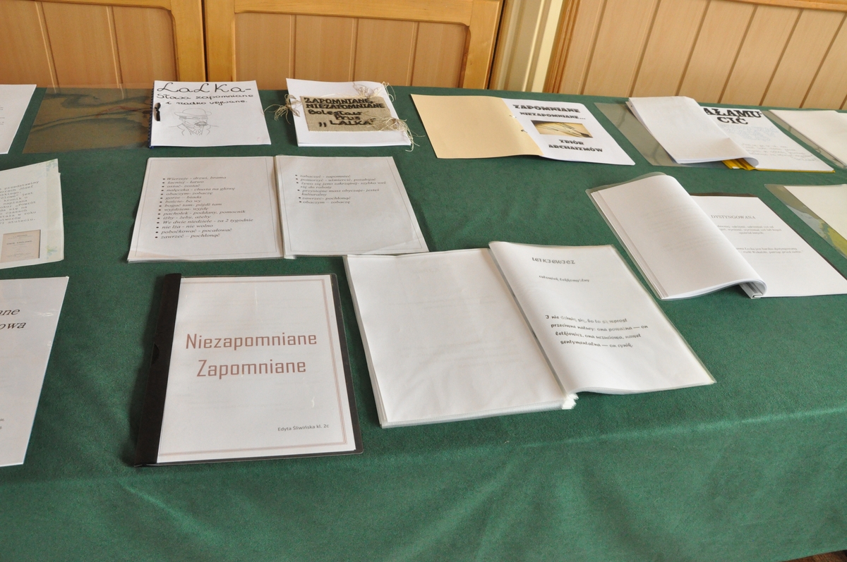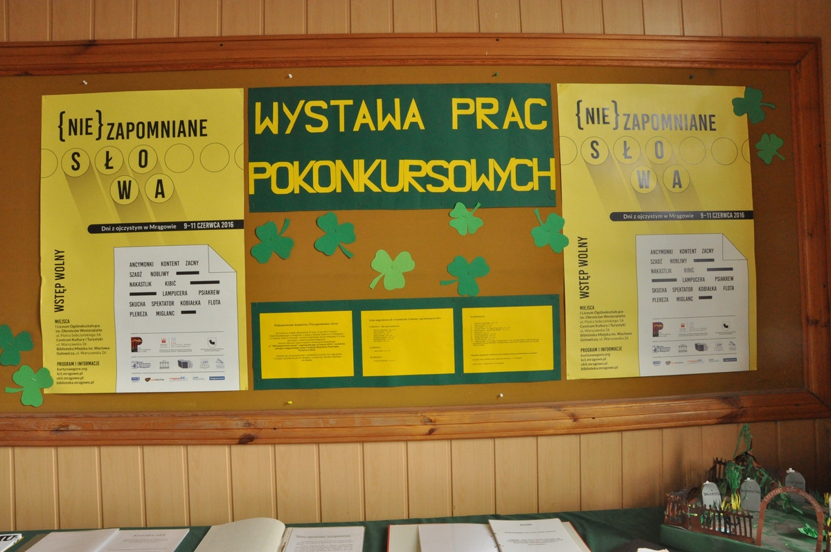 Czwartek (27 października 2016 r.) drugi z trzech Dni Kultury Języka Polskiego zaznaczył się otwarciem wystawy prac pokonkursowych „(Nie) zapomniane słowa”. Uczniowie mieli okazję przyjrzeć się nie tylko pracom nagrodzonym, ale także wyróżniającym się pod względem pomysłowości czy estetyki. Warto przypomnieć, iż wspomniany konkurs organizowany był w ramach czerwcowej imprezy „Z ojczystym w Mrągowie” zorganizowanej przez Fundację Wojciecha Pszoniaka Kurtyna w Górę.