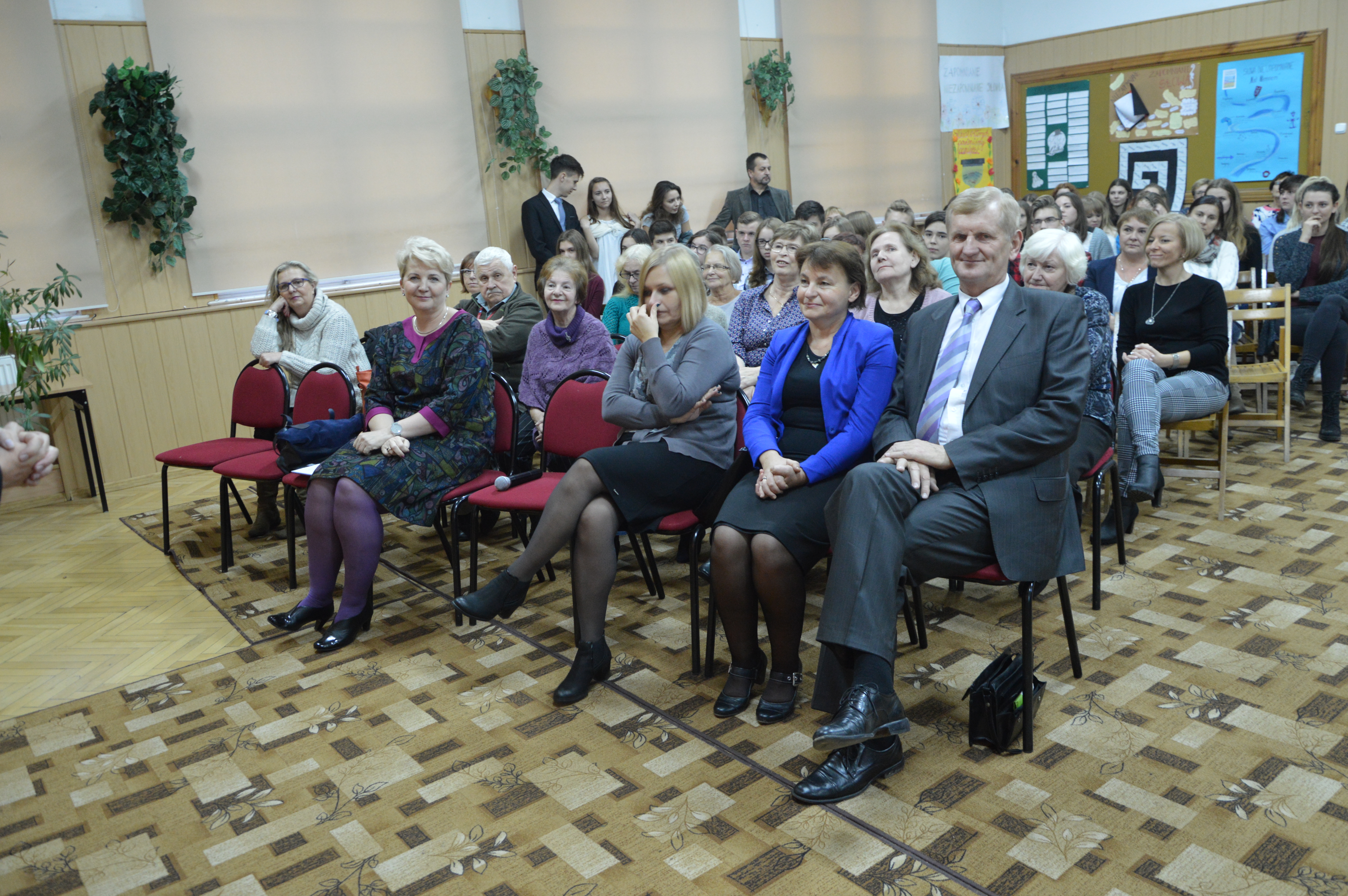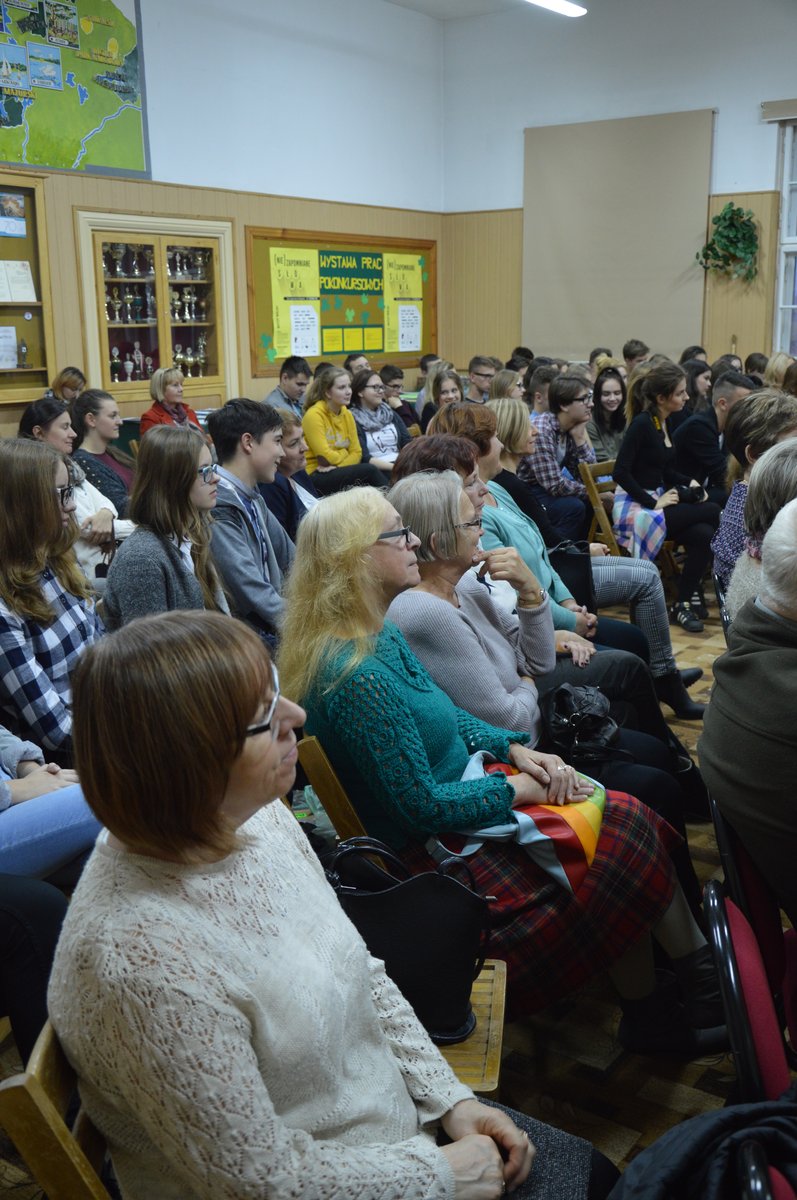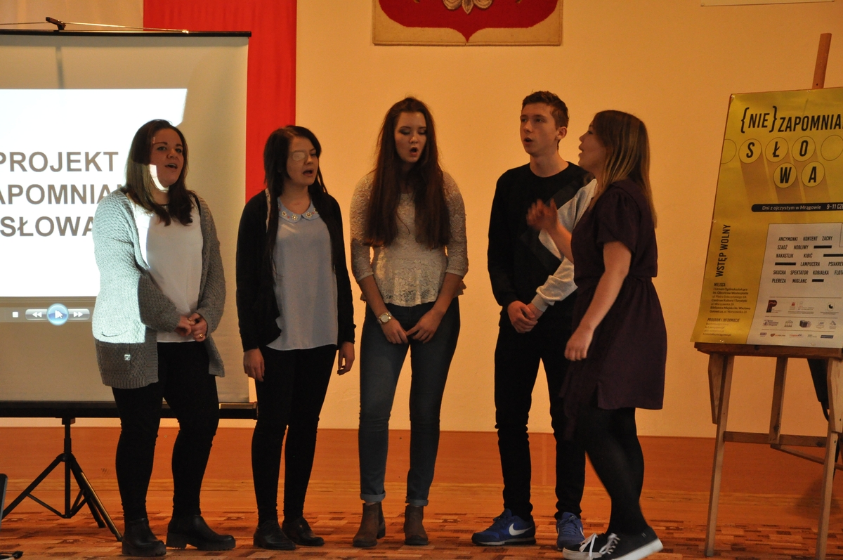 Wieczór poetycki wspierali swoją obecnością zaszczytni goście, wśród których znaleźli się m. in.: poseł RP p. Antoni Gosiewski, przewodnicząca Rady Rodziców- p. Patrycja Abel-Mordasewicz, zaproszeni nauczyciele i uczniowie z zaprzyjaźnionych gimnazjów, nasi nauczyciele „lat minionych” oraz szacowni uczestnicy projektu- filmu „(Nie) zapomniane słowa”- emeryci. To niezwykłe spotkanie było możliwe dzięki zaangażowaniu wielu osób i organizacji – w tym Patriotycznego Mrągowa, Młodzieżowego Stowarzyszenia Inicjatyw Sportowych oraz Urzędu Miasta w Mrągowie, a zostało sfinansowane ze środków Rządowego Programu na rzecz Aktywności Społecznej Osób Starszych Ministerstwa Rodziny i Polityki Społecznej (ASOS 2014-2020). Serdecznie dziękujemy za pomoc.