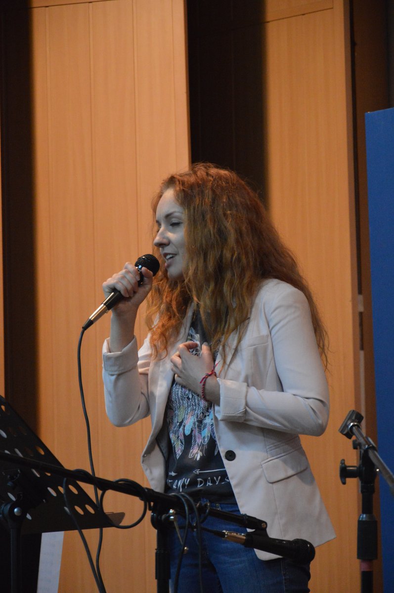 Zaczęło się więc lirycznie-romantycznie, nie zabrakło wzruszeń, wspomnień i wielkich tekstów wielkich artystów, ale… było też nieco rubasznie, frywolnie i przede wszystkim- zabawnie. Nie mogło być inaczej, skoro bohaterka wieczoru-wspomniana Justyna Łuńska para się muzyką już od wielu lat, organizuje zajęcia muzykoterapii, współpracuje z licznymi instytucjami kulturalnymi i społecznymi. Wieczór zakończyła wspólna improwizacja jazzowa, która udowodniła, że „każdy z nas wielkim muzykiem jest”!