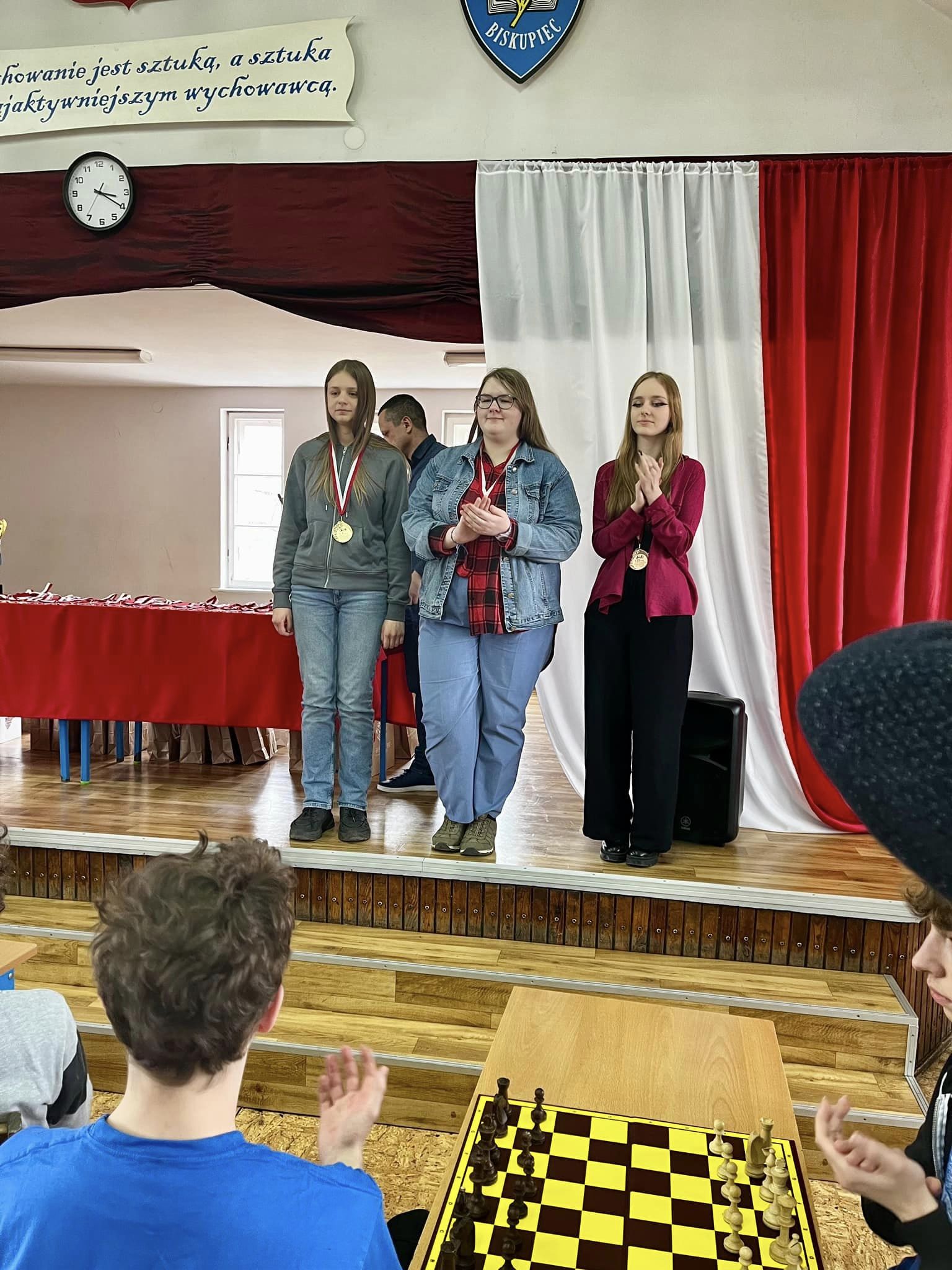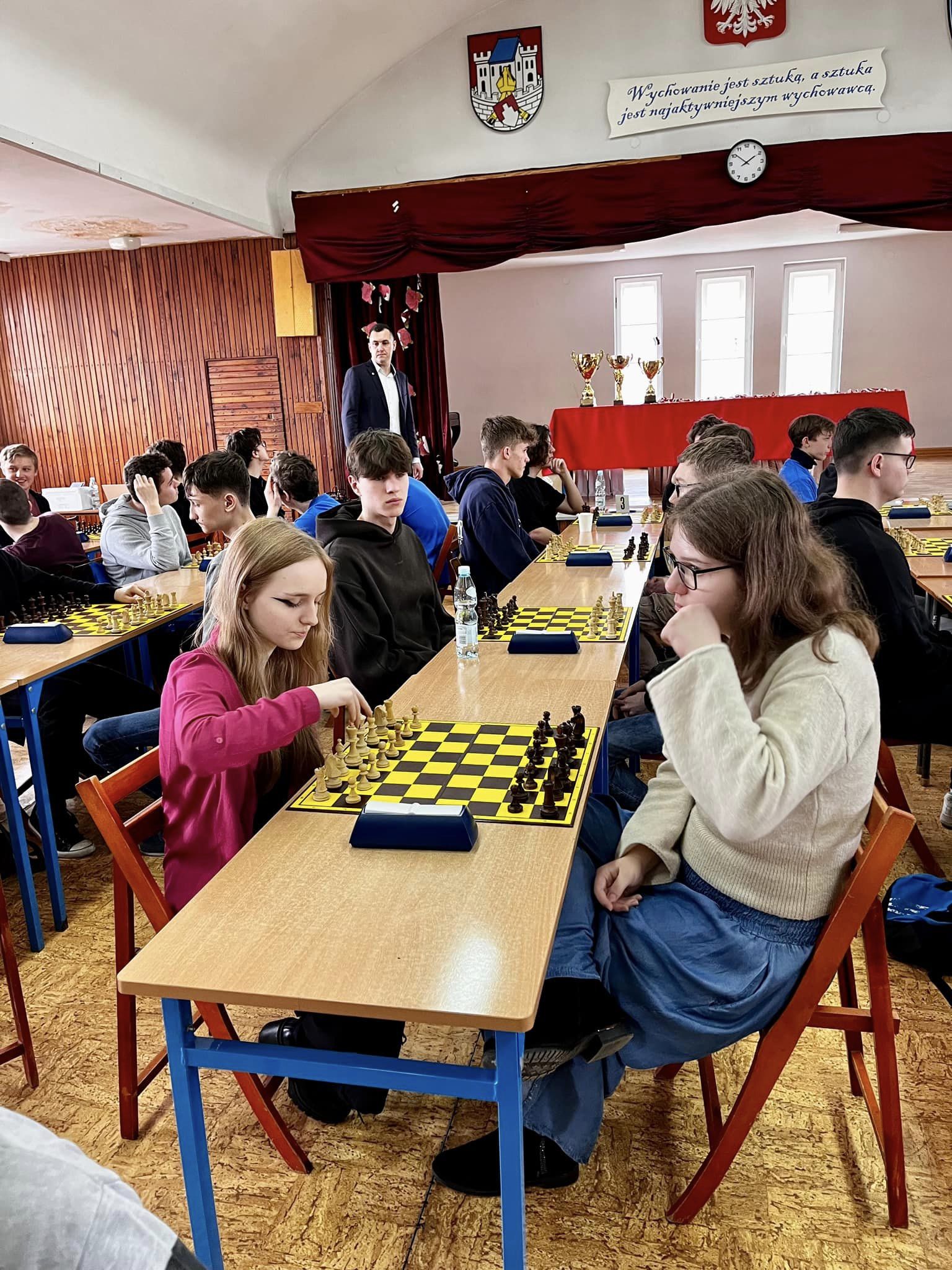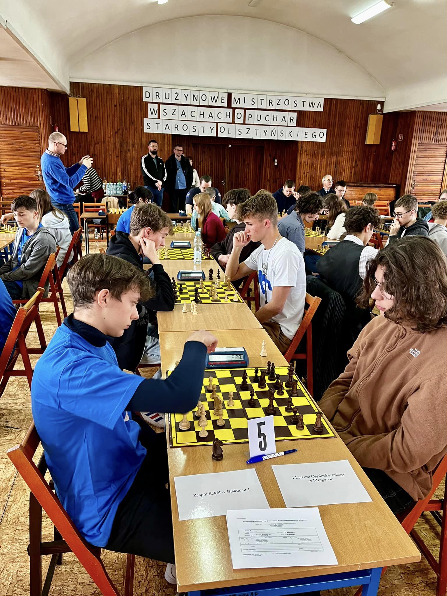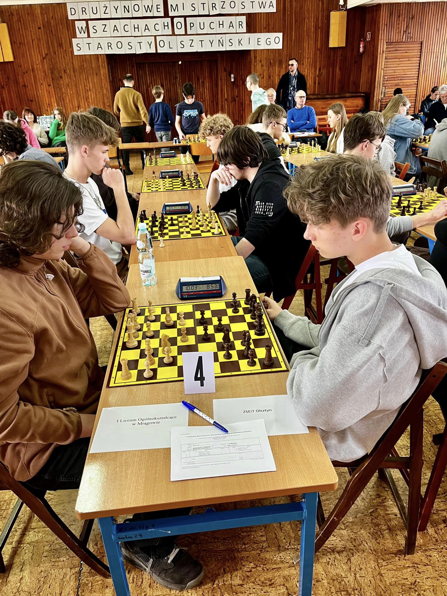W dniu 3 kwietnia 2024 r. w Zespole Szkół w Biskupcu odbyły się Drużynowe Mistrzostwa w szachach o puchar Starosty Olsztyńskiego. W zawodach wzięło udział 14 drużyn, w tym nasza drużyna w składzie: Maja Dąbkowska, Antoni Parda, Hubert Nasalski i Daniel Godzwon.
