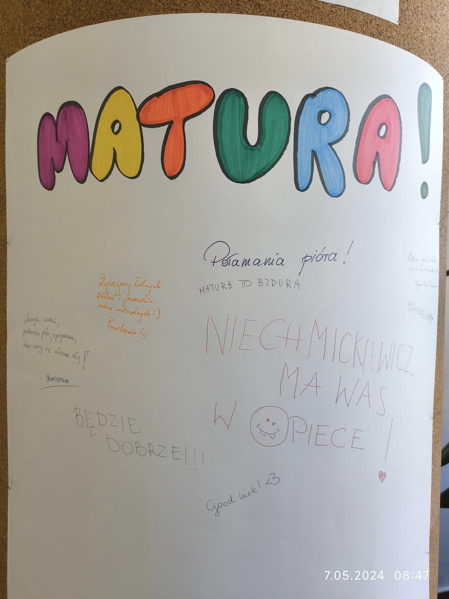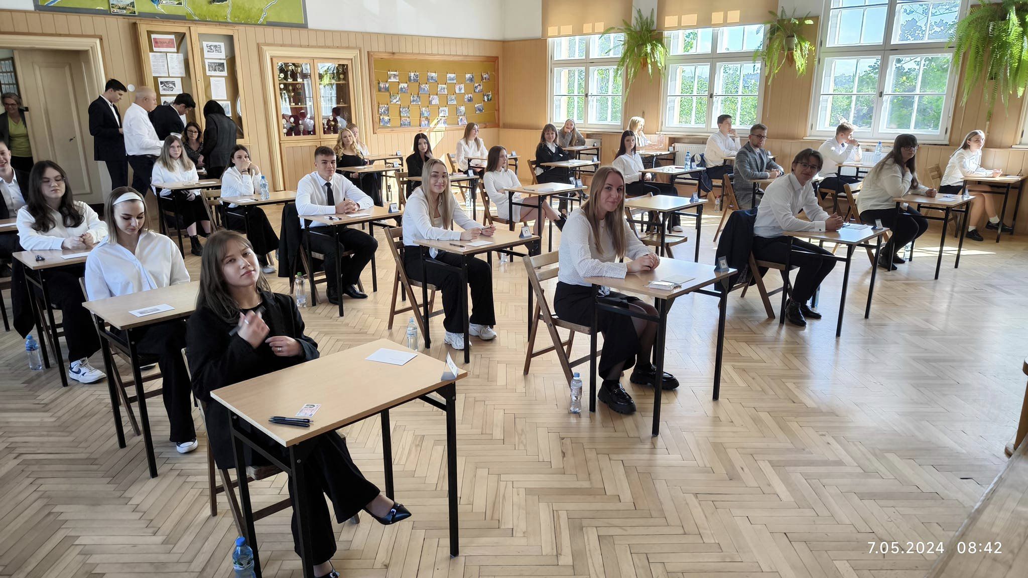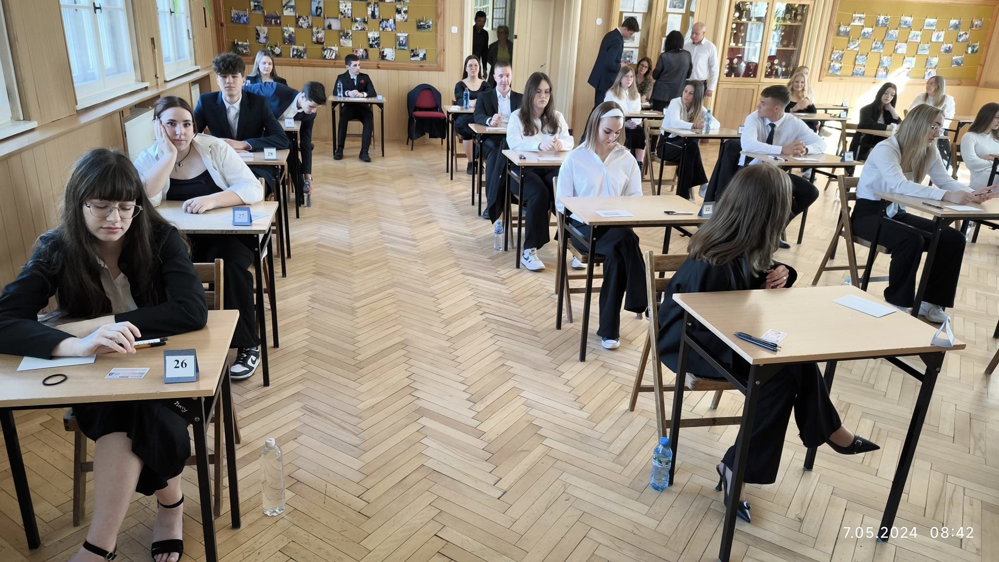 Dziś, tj. 7 maja 2024 r., swój maturalny maraton rozpoczęło 113 tegorocznych absolwentów naszej szkoły. Pierwszy, najdłużej trwający egzamin (240 minut) z języka polskiego na poziomie podstawowym oraz pierwszy, największy stres maturzyści mają już za sobą.
