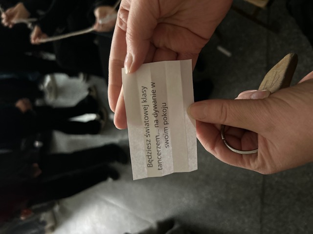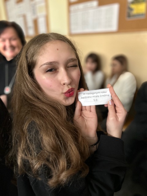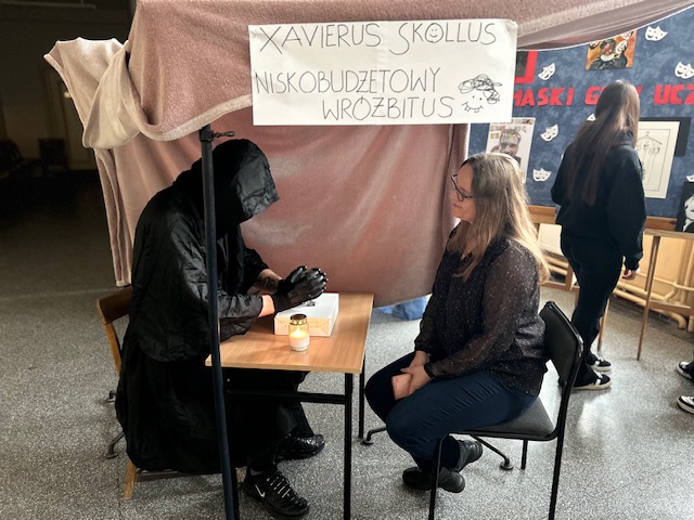 Na przerwach uczennice z klasy 2B, przebrane za parki, plotły nić życia - zainteresowane osoby mogły wylosować od nich prześmiewcze wróżby! Nie były to jednak jedyne osoby przepowiadające przyszłość w tym dniu Zajął się tym również Xavierus Skollus - niskobudżetowy wrożbitus!