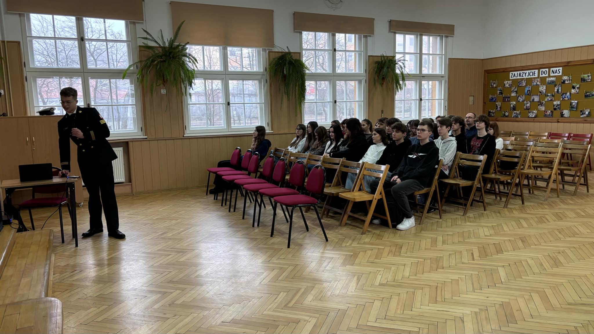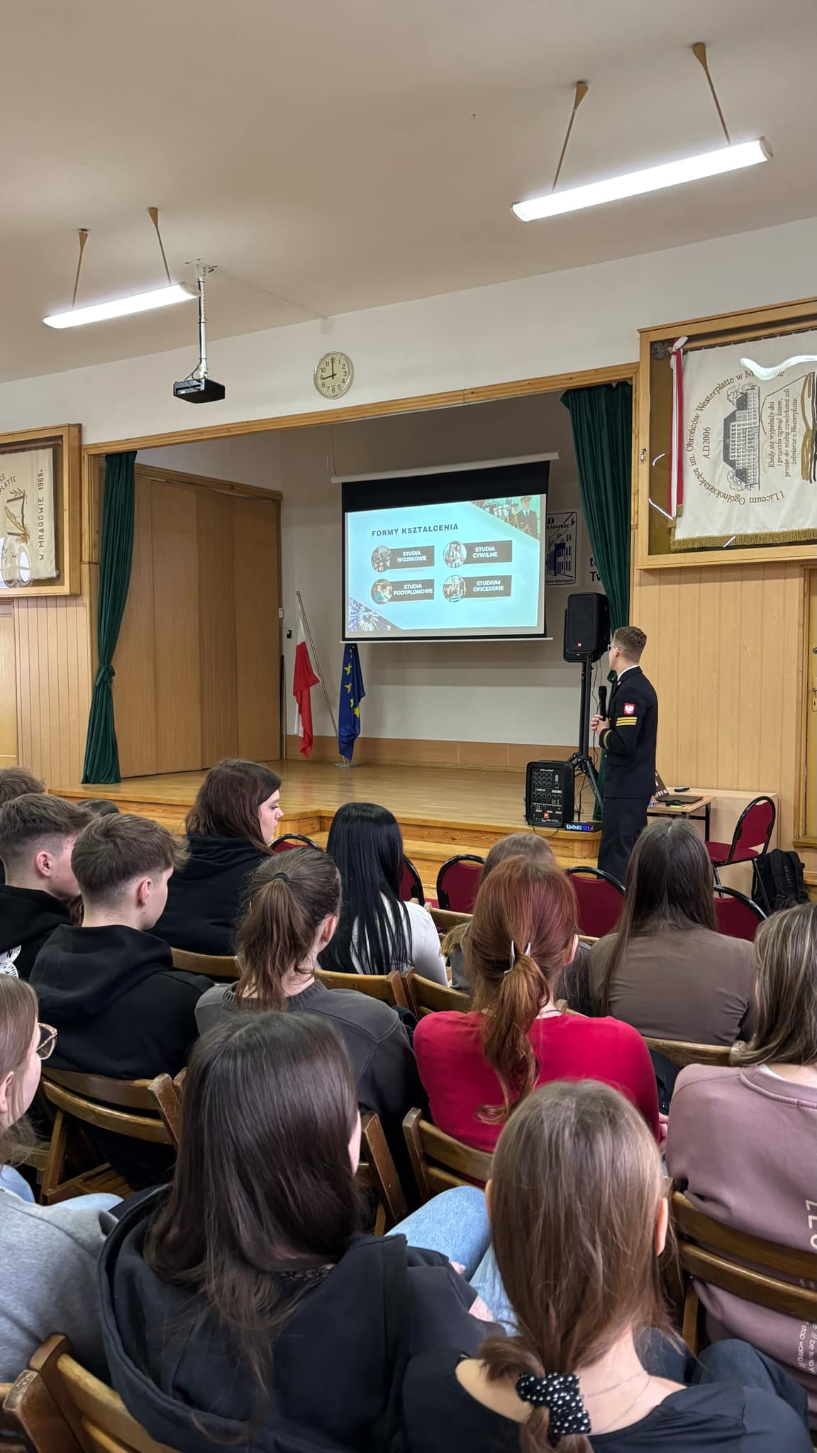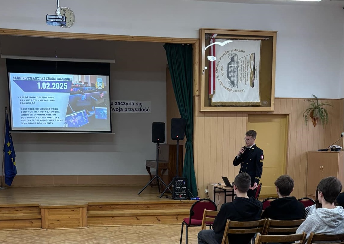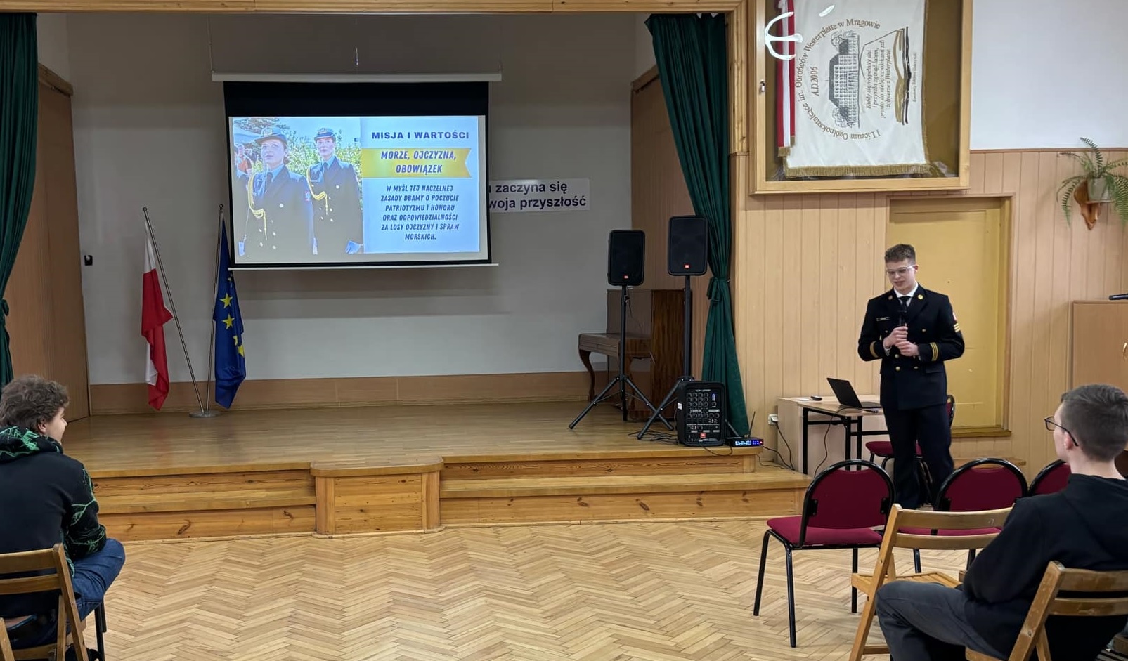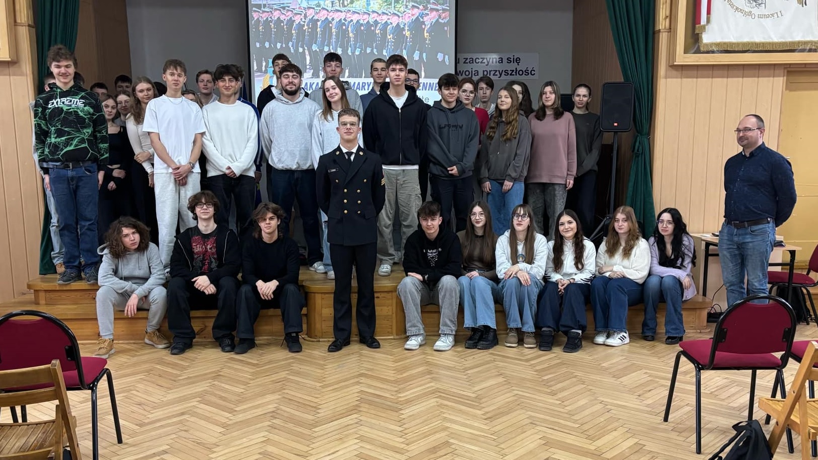 Starszy Mat Podchorąży Krzysztof Leński absolwent naszej szkoły, w poniedziałek 20 stycznia spotkał się z młodzieżą klas: 3d, 4a i 4d. Studiuje w Akademii Marynarki Wojennej w Gdyni i przedstawił naszym uczniom funkcjonowanie AWM,