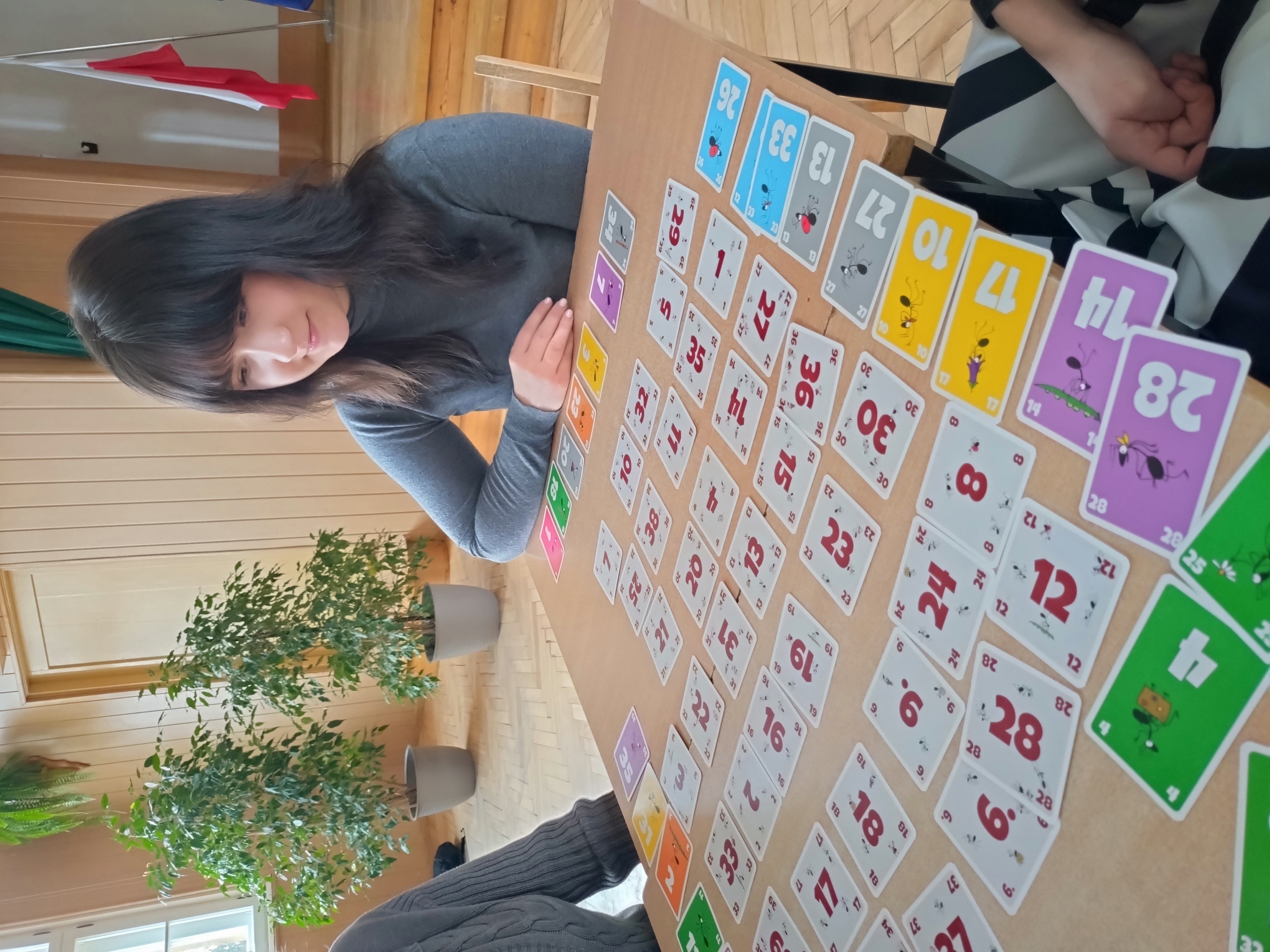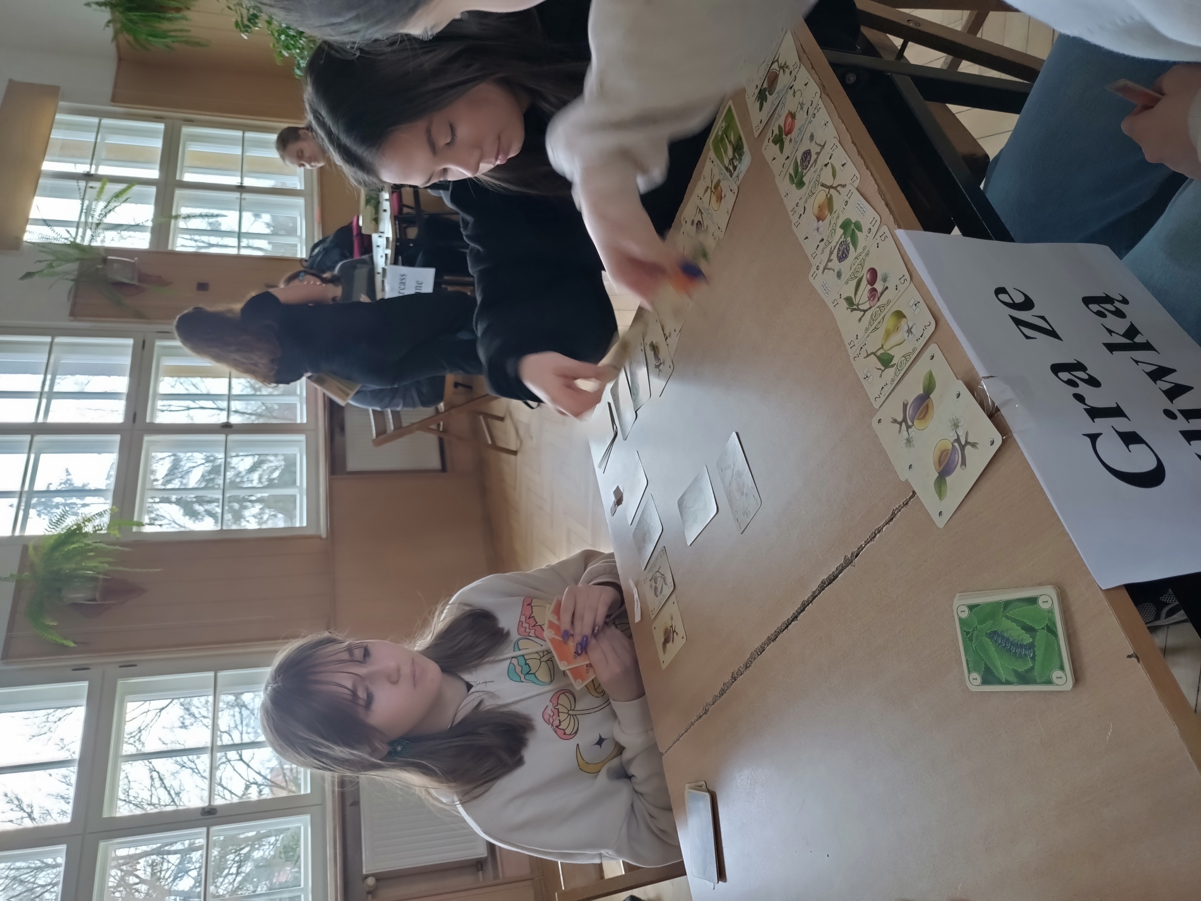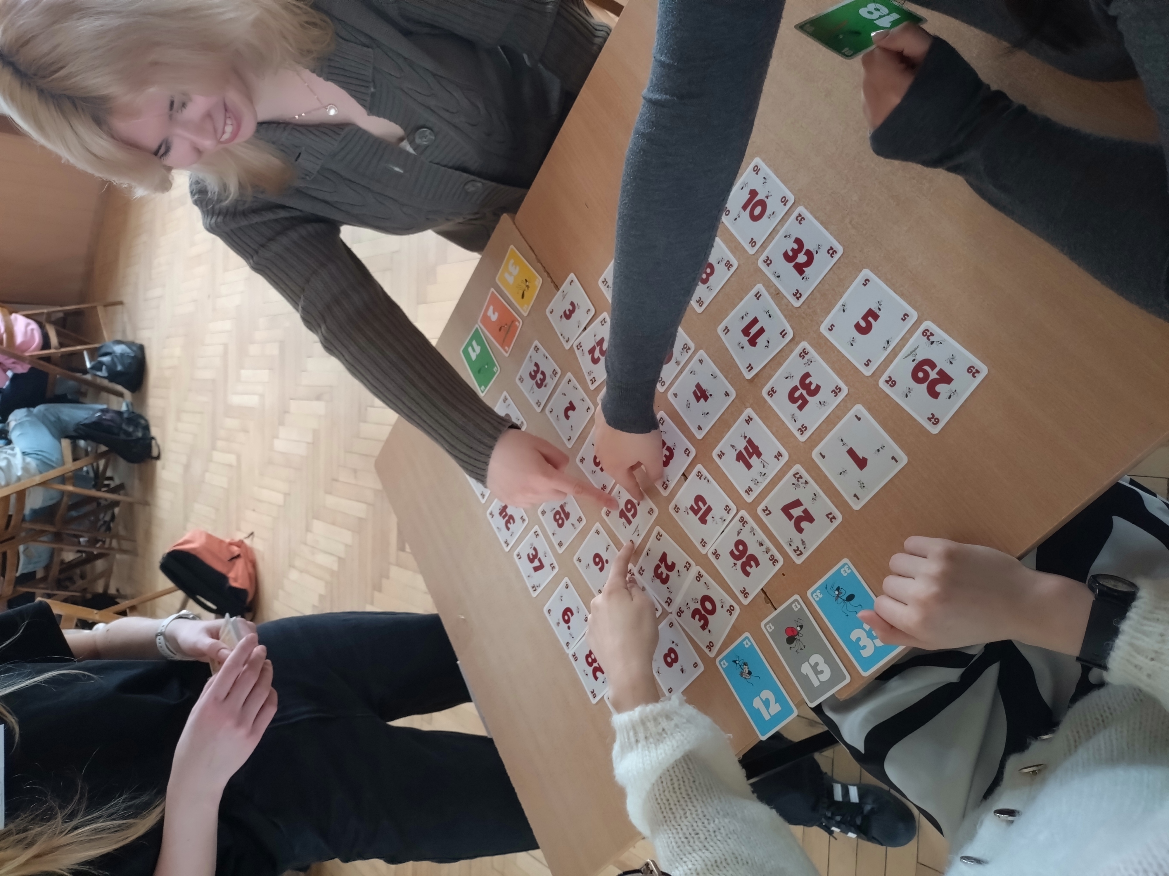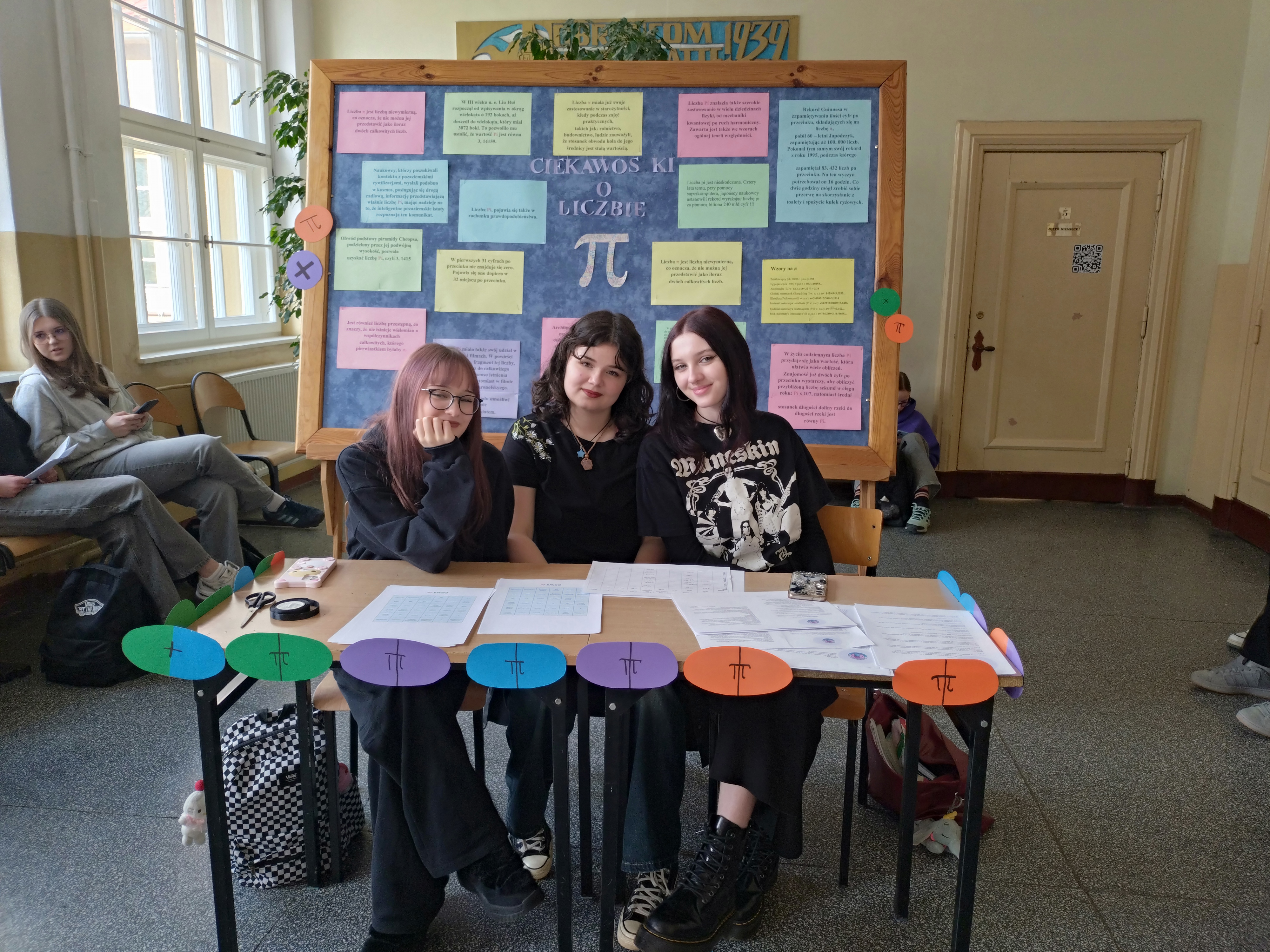 W czasie długiej przerwy zagraliśmy w Pi_bingo, a przez cały dzień przemierzaliśmy szkołę w poszukiwaniu Pi_stacji - kolejnych punktów gry terenowej, przygotowanej przez Julię Płocharczyk, uczennicę klasy 2A. Poza wysiłkiem intelektualnym znalazł się również czas na zabawę, którą zapewniła klasa 2A, organizując w auli turniej gier planszowych. Uczniowie mieli okazję zagrać w takie gry jak : ,,Gra ze śliwką’’, ,,Set”, ,,Pechowa krowa” lub ,,Mrówki”. Wiele klas chętnie wzięło udział we wszystkich konkurencjach, rywalizując o zdobycie pierwszego miejsca. Tegoroczną nagrodą była oczywiście Złota Statuetka Liczby Pi oraz ufundowane przez Pana Lecha Jarosława Szabelskiego, pączki z nadzieniem, jakżeby inaczej, pi_stacjowym. Zaszczytne pierwsze miejsce zajęła klasa 3A, która nie tylko świetnie poradziła sobie z rozwiązywaniem zadań, ale również zabłysnęła sprytem w turnieju gier planszowych.