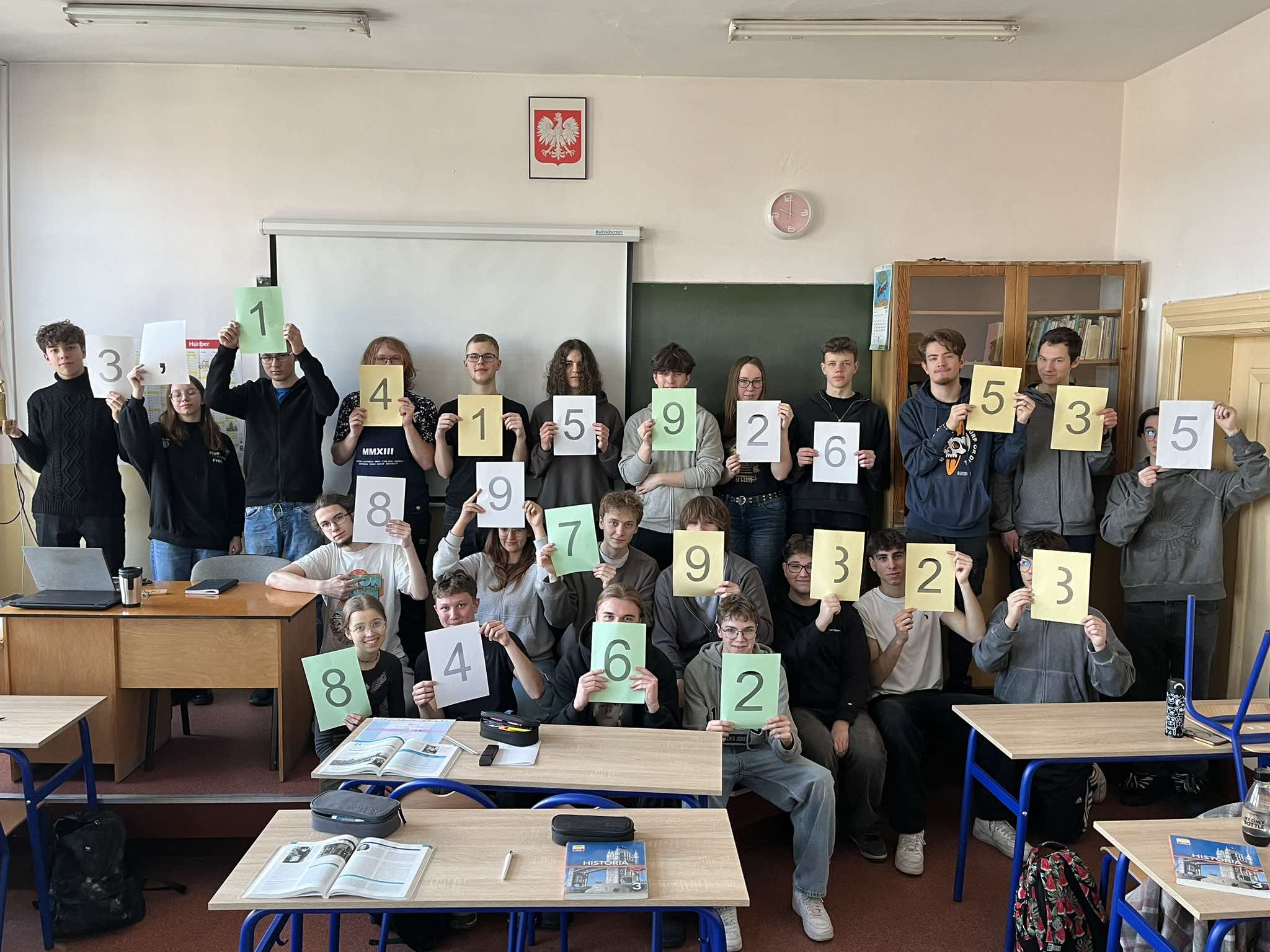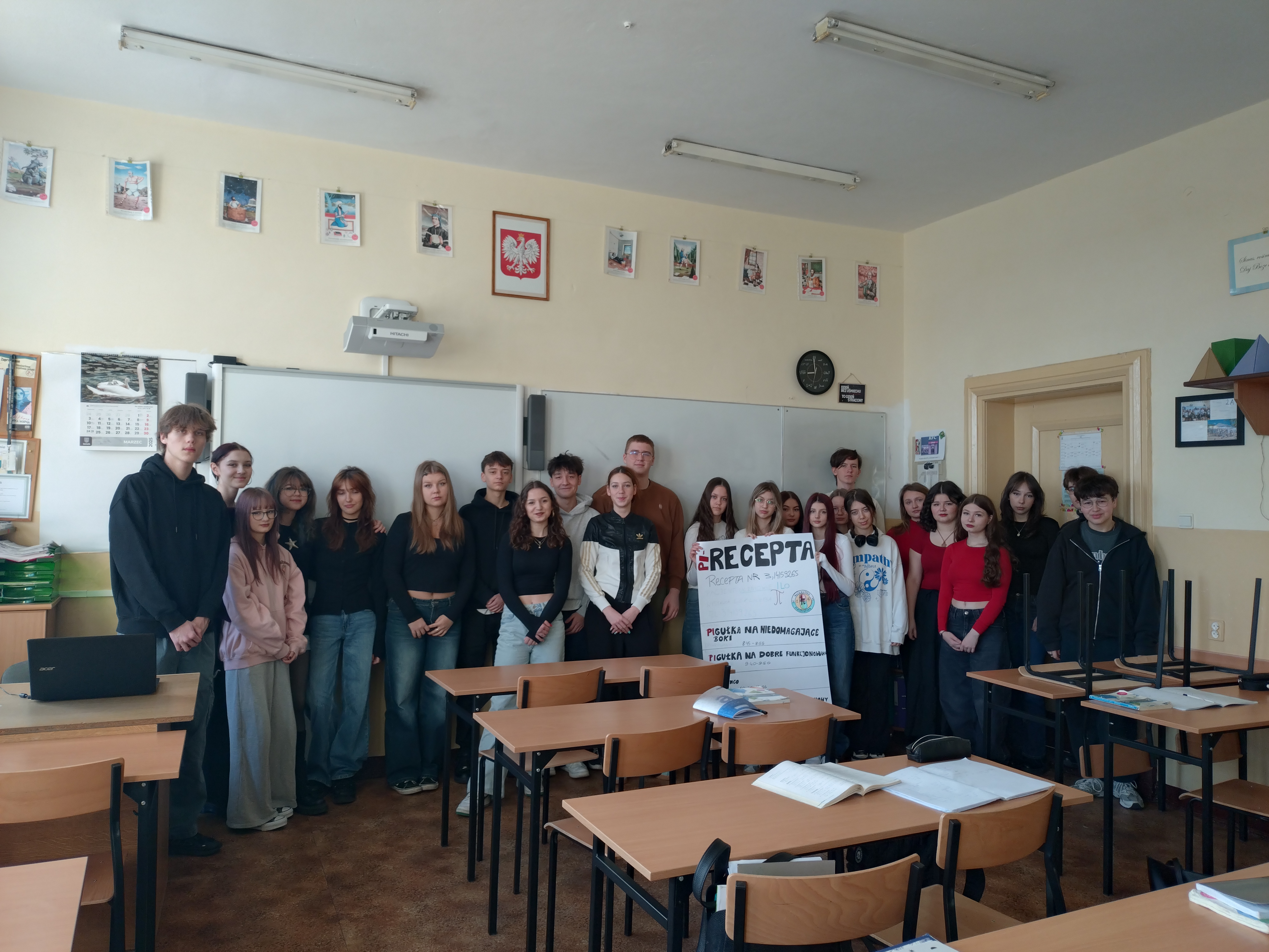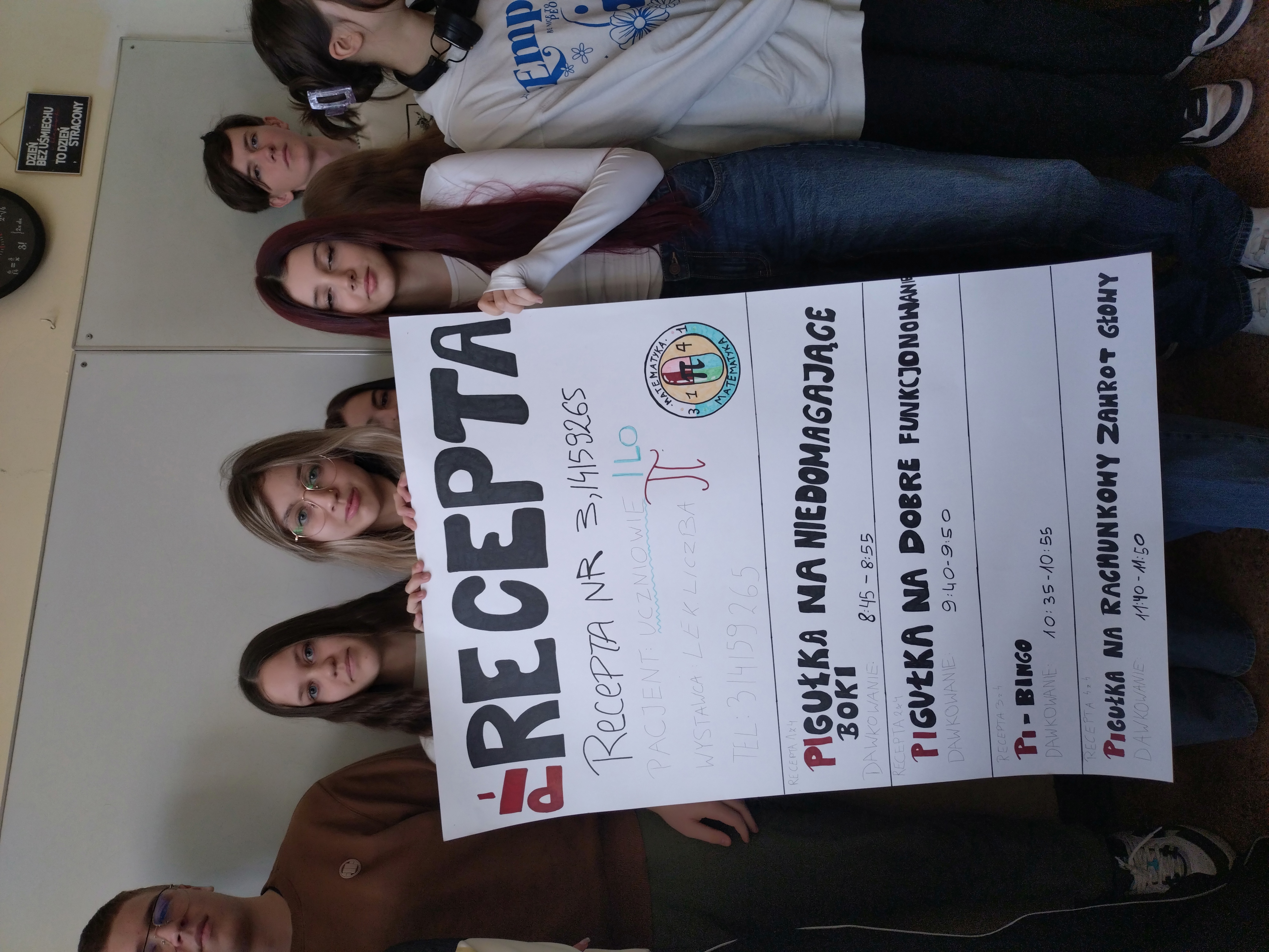 Dnia 14 marca, nasza szkoła świętowała dzień liczby Pi pod hasłem ,,Matematyka w pi_gułce”. Humaniści z klasy 2B przygotowali konkurencje związane z różnymi dziedzinami matematyki, gdzie uczniowie innych klas mogli sprawdzić swoje matematyczne zdolności. Pod każdą z nazw konkurencji kryła się odpowiedź, z jakim działem matematyki uczestnicy będą musieli się zmierzyć np. ,,Pi_gułka na dobre funkcjonowanie” czy ,, Pi_gułka na niedomagające boki”.