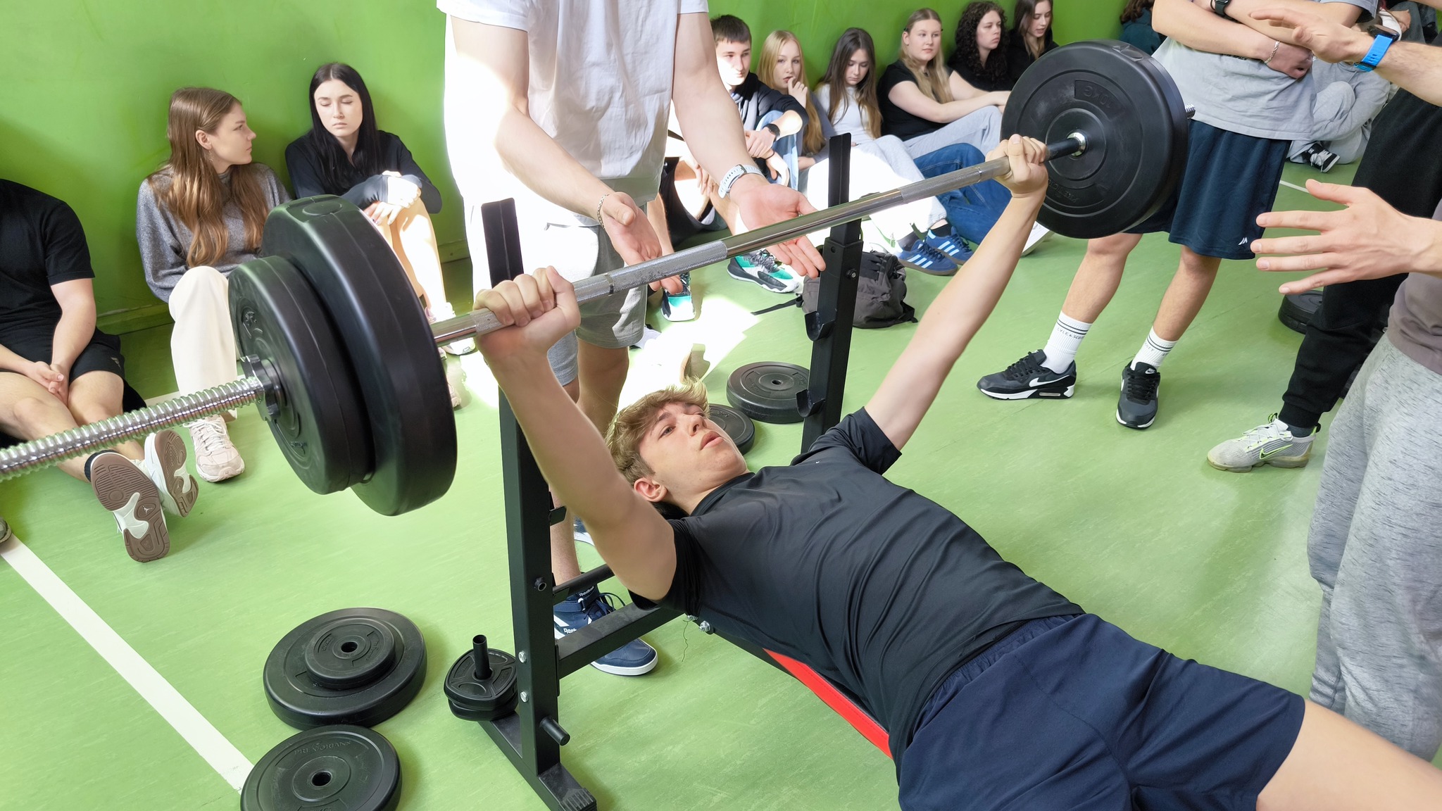 Dziś w naszej szkole w ramach obchodów Międzynarodowego Dnia Sportu dla Rozwoju i Pokoju po raz pierwszy odbyły się szkolne zawody w wyciskaniu wielokrotnym sztangi w kategorii kobiet i mężczyzn.