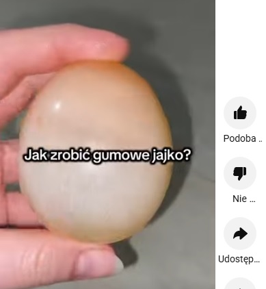 Doświadczenie "gumowe jajko" – to prosty, domowy eksperyment, który pokazuje działanie kwasu na wapń zawarty w skorupce jajka. Jajko zalewamy octem i już po kilku minutach zobaczysz pęcherzyki gazu (to dwutlenek węgla). Po 1–2 dniach skorupka się rozpuści – można delikatnie wypłukać pozostałości. Zostanie tylko cienka błona, która trzyma jajko w całości.