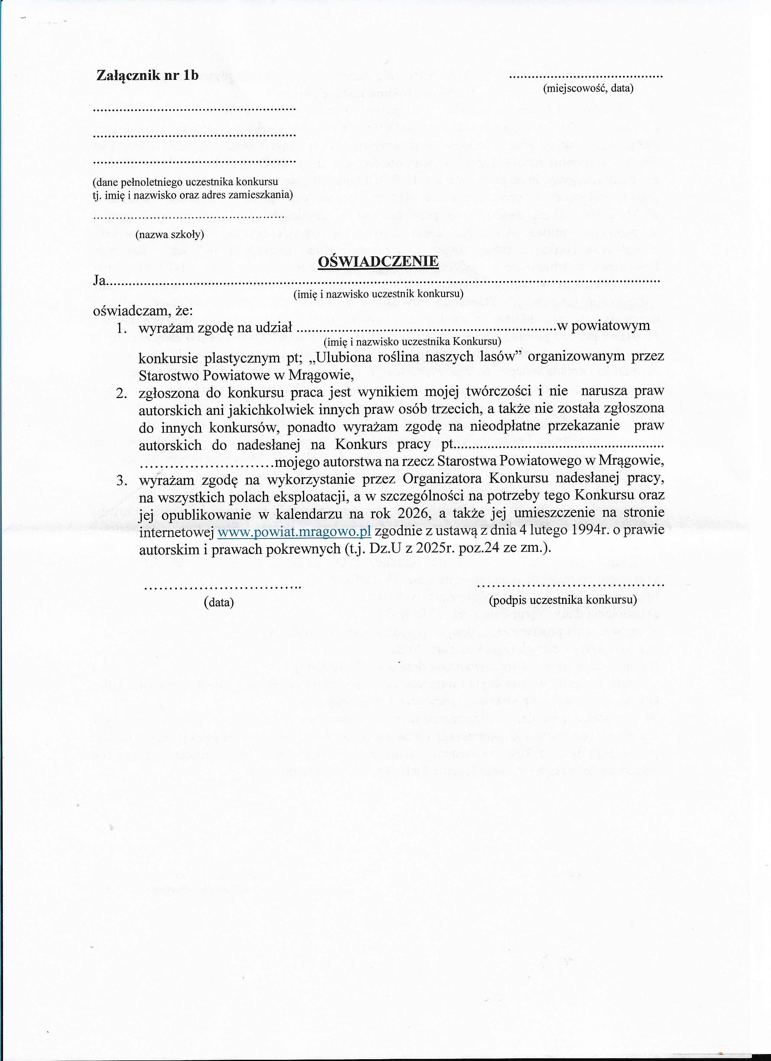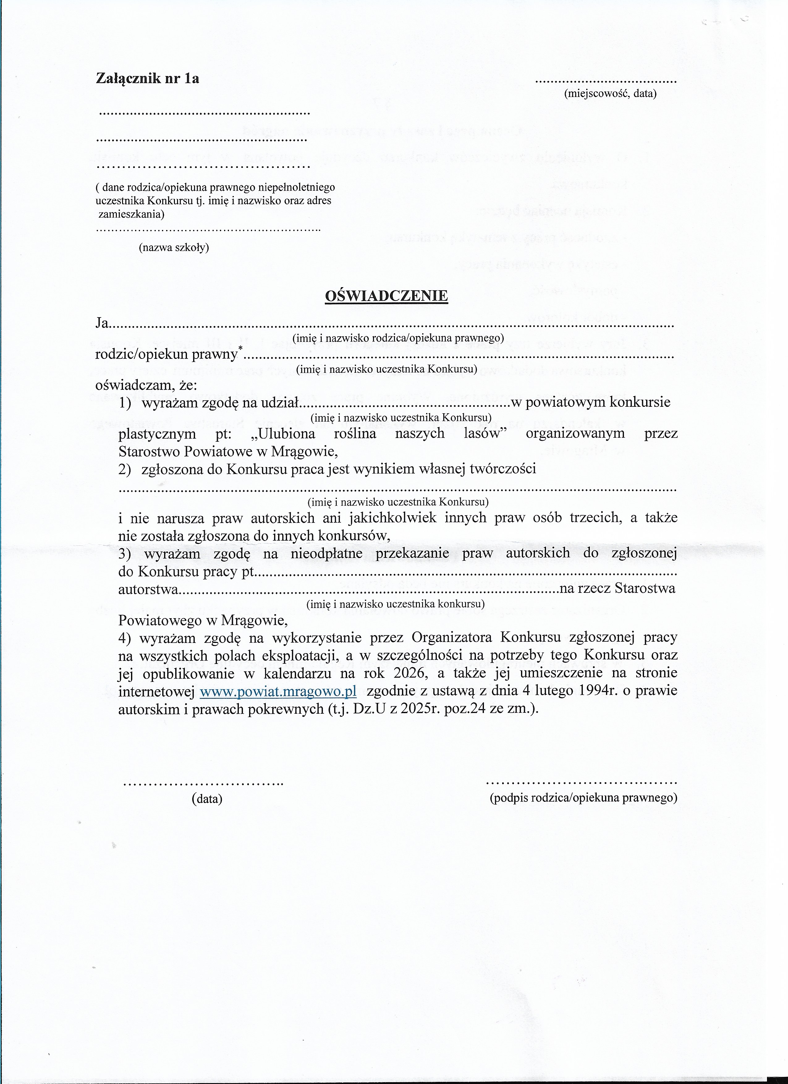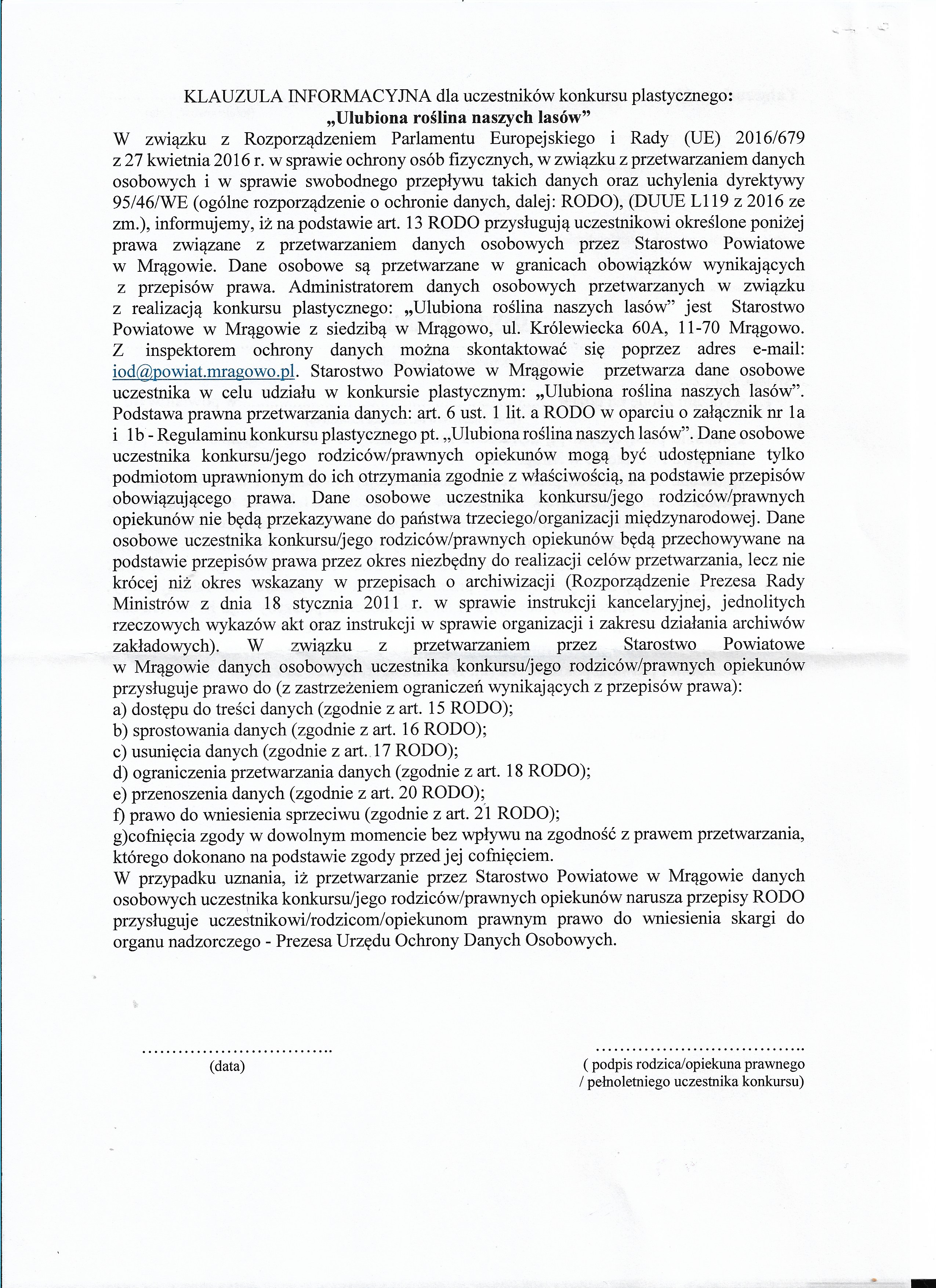 Starostwo Powiatowe w Mrągowie, Wydział Środowiska, Rolnictwa i Leśnictwa ogłasza konkurs plastyczny pt. " Ulubiona roślina naszych lasów".